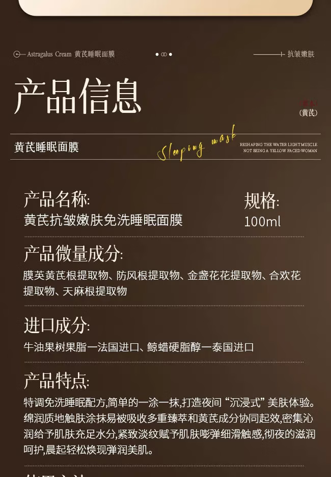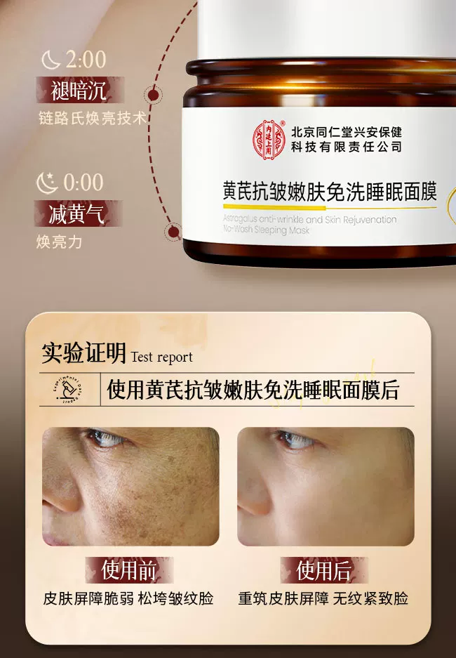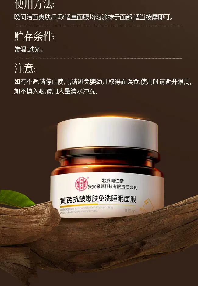 内廷上用北京同仁堂黄芪免洗睡眠面膜涂抹补水去黄气暗沉提亮紧致抗皱抗老 【2盒分享装】100ml/盒
