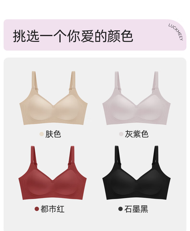 幸棉【断码特惠】贴贴杯内衣女收副乳内衣小胸聚拢无钢圈无痕文胸舒适 墨黑色 M 适合70A 70B