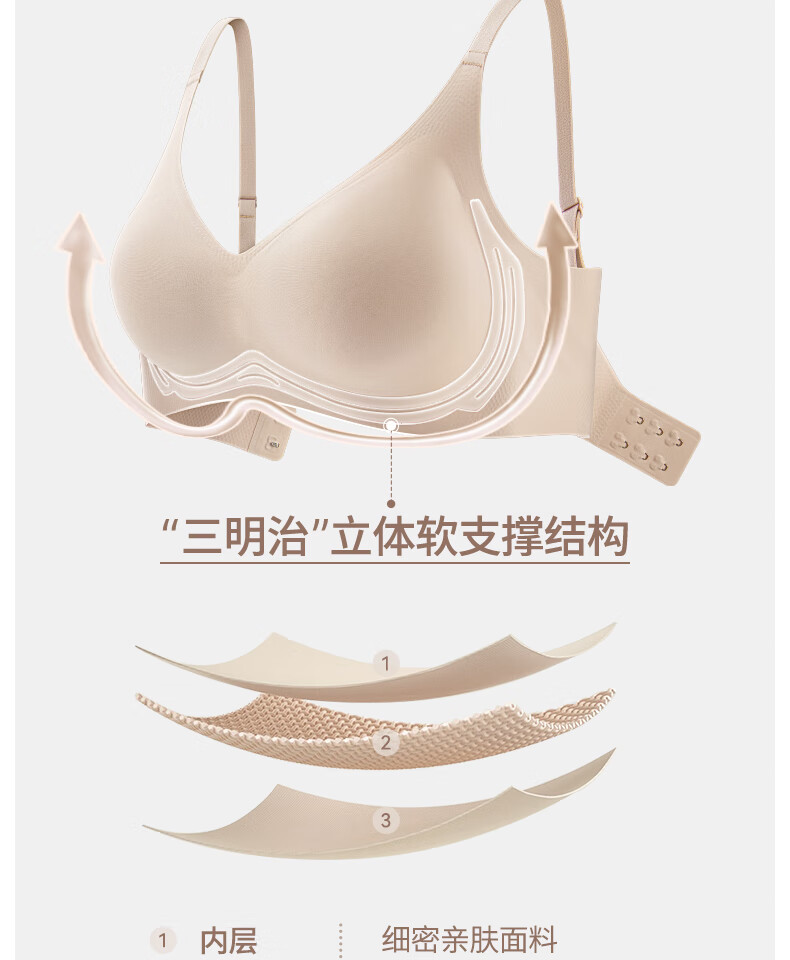 都市丽人小胸显大聚拢上托文胸女士软支撑无痕内衣薄款防下垂胸 粉底肤+香槟白 M 【建议体重95-110斤】
