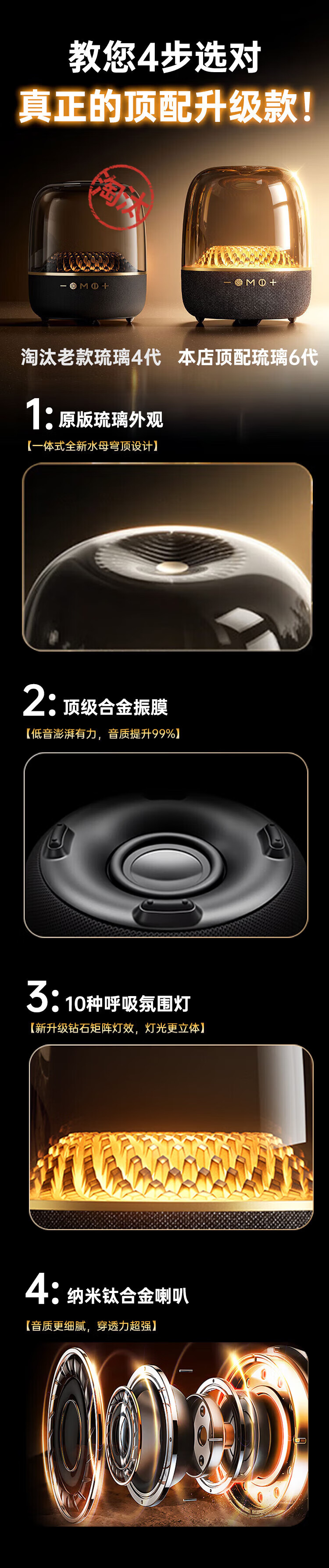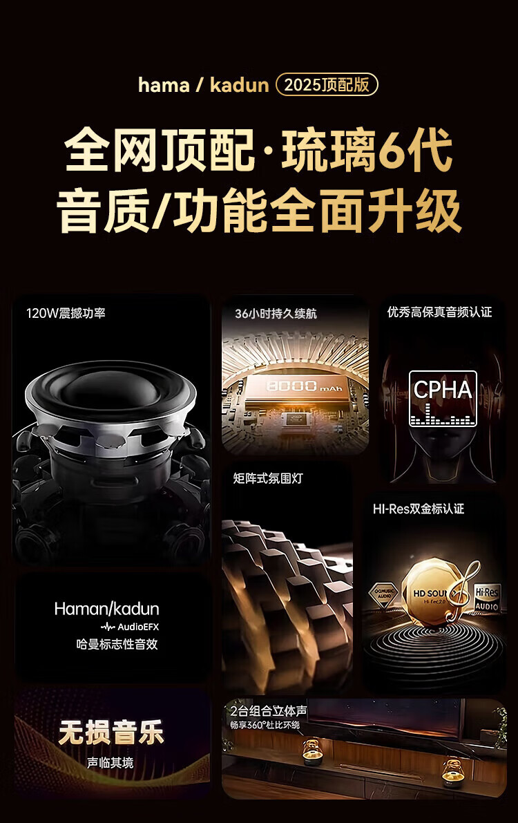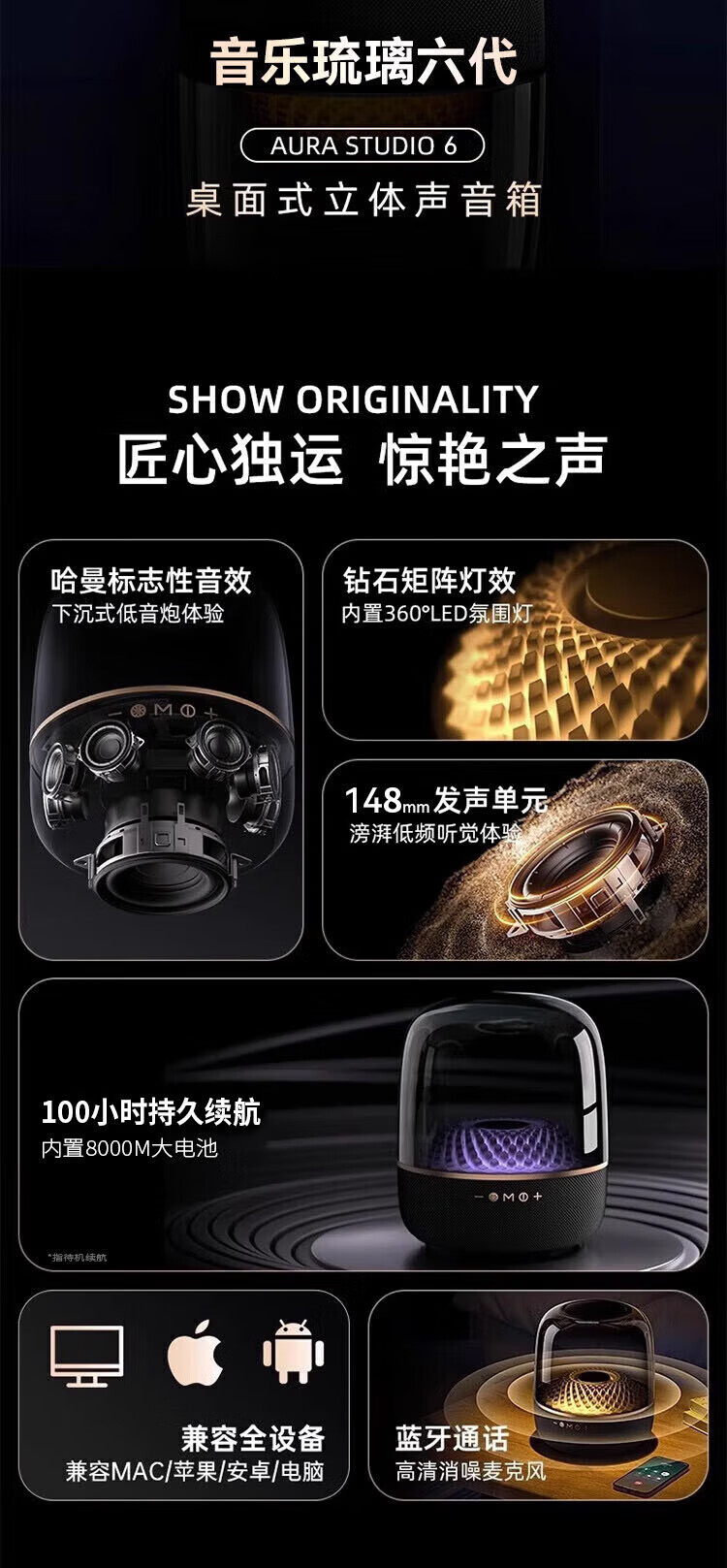 AEU【全网热销100W+|新款琉璃6代】大哈曼蓝牙音响琉璃5代音箱4代华强北低音炮家用桌面台式电脑 【铂金琉璃|经典5代】Pro Max版 超长续航+免费试听+全国联保