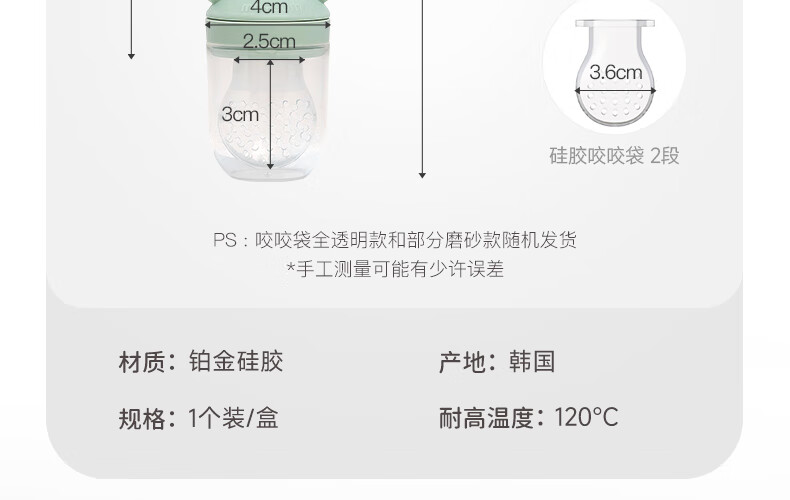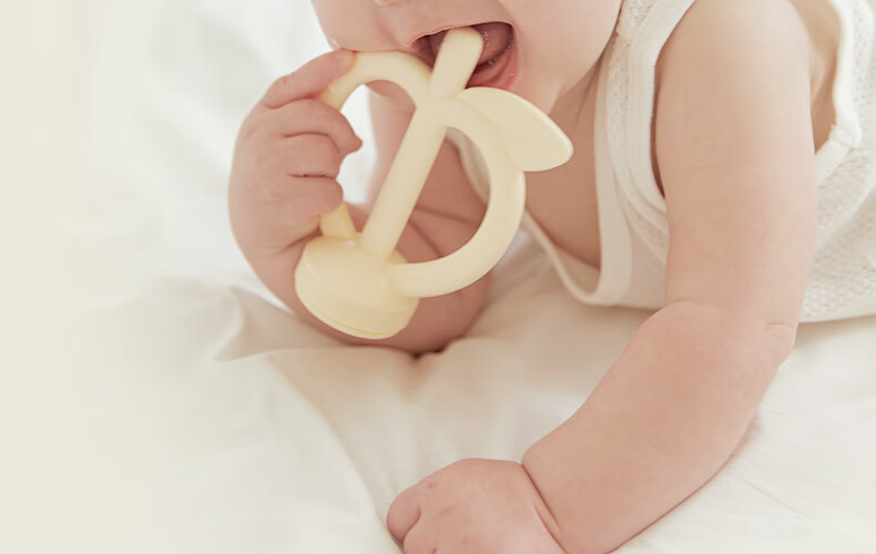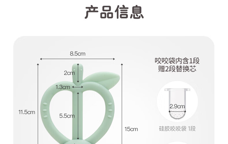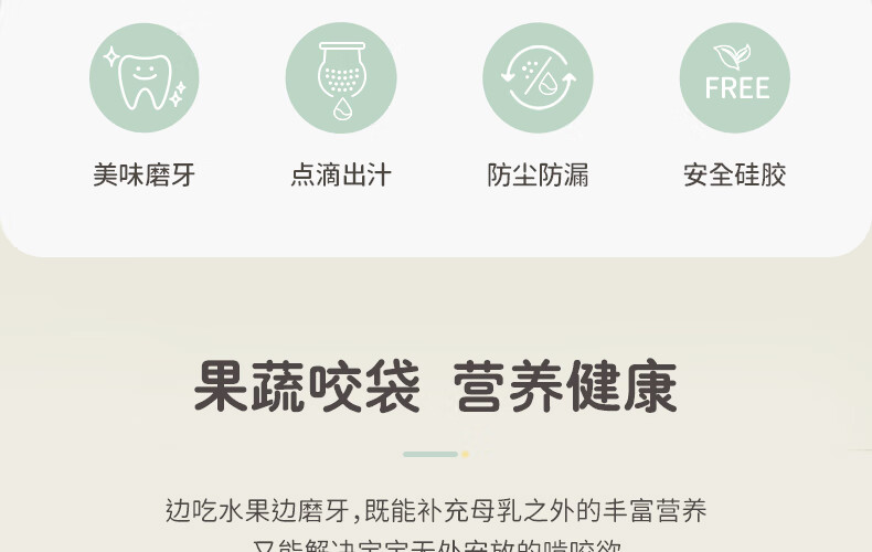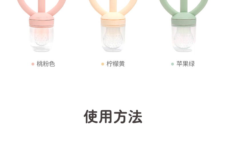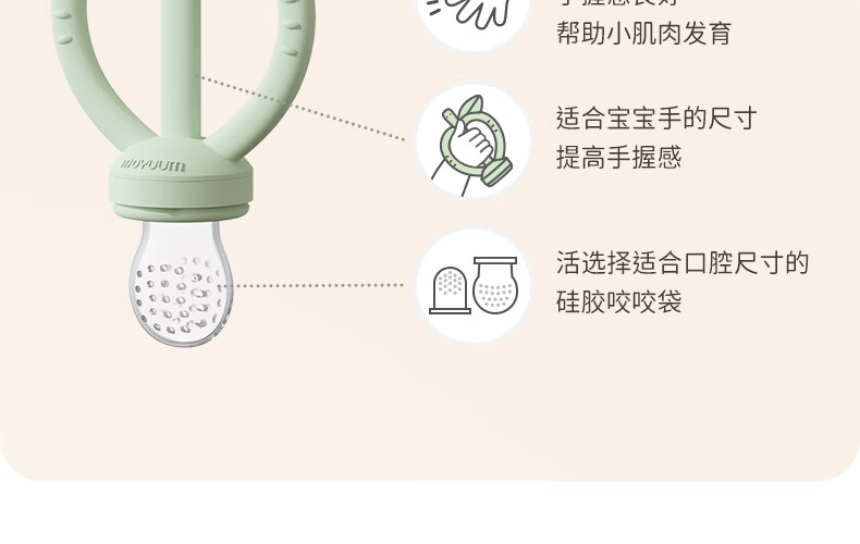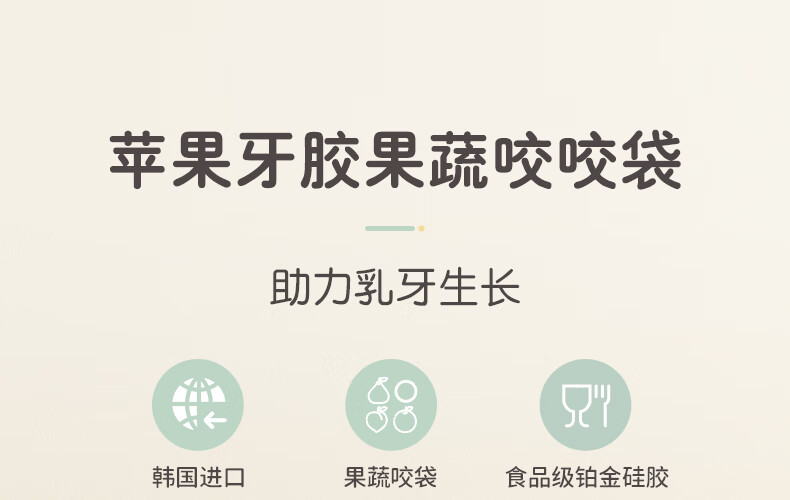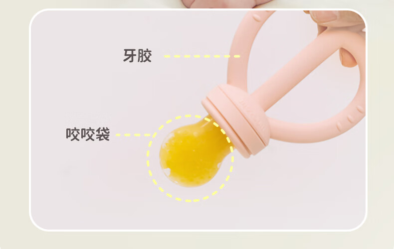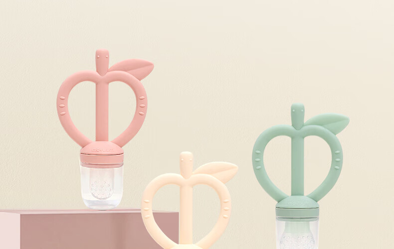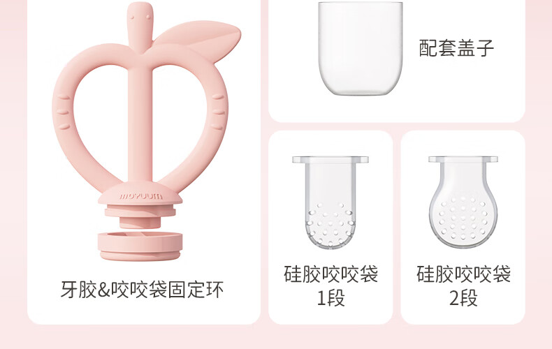 MOYUUM苹果咬咬乐袋婴儿吃水果辅食器宝宝果蔬咬玩乐磨牙工具硅胶咬牙胶 桃粉色 1个装