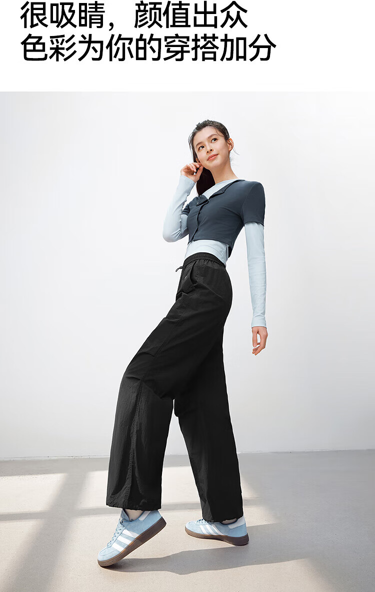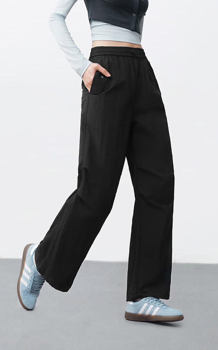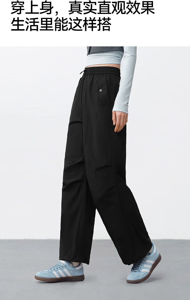 浪莎雪尼尔阔腿裤女秋季高腰垂感直筒秋冬加绒休闲裤宽松百搭运动长裤 黑色 -秋款 M 码(101-110斤)