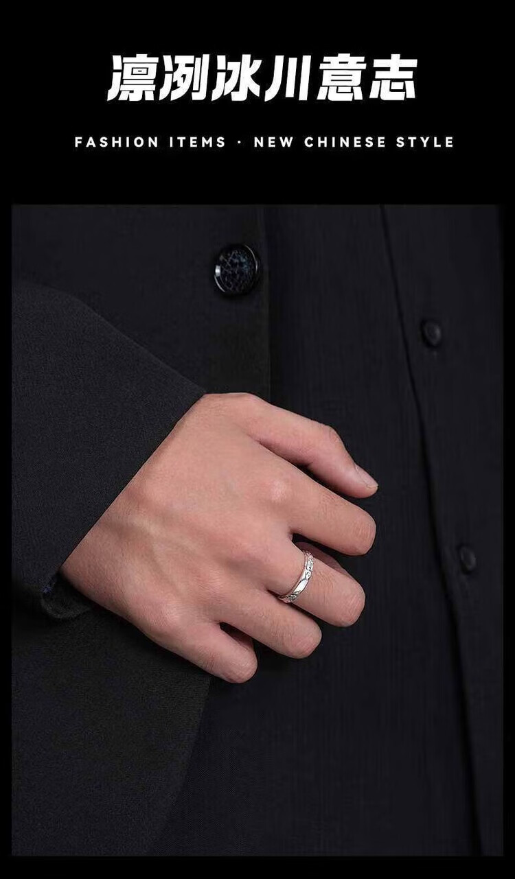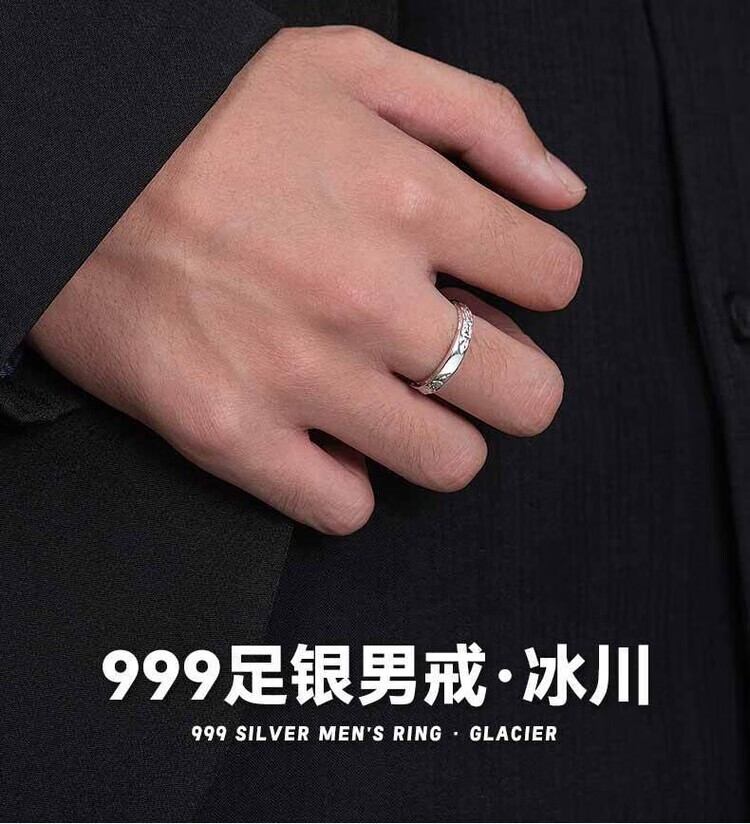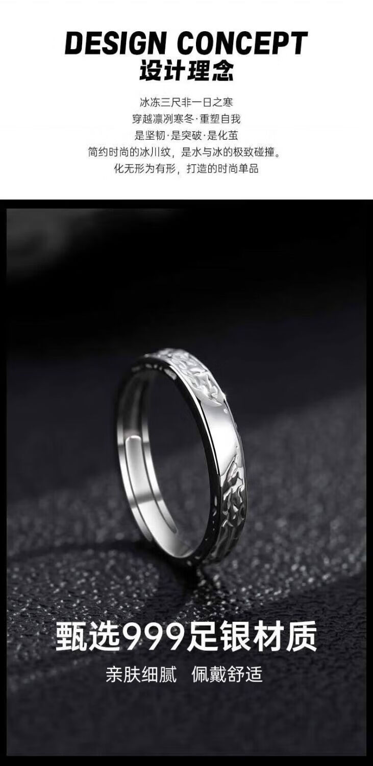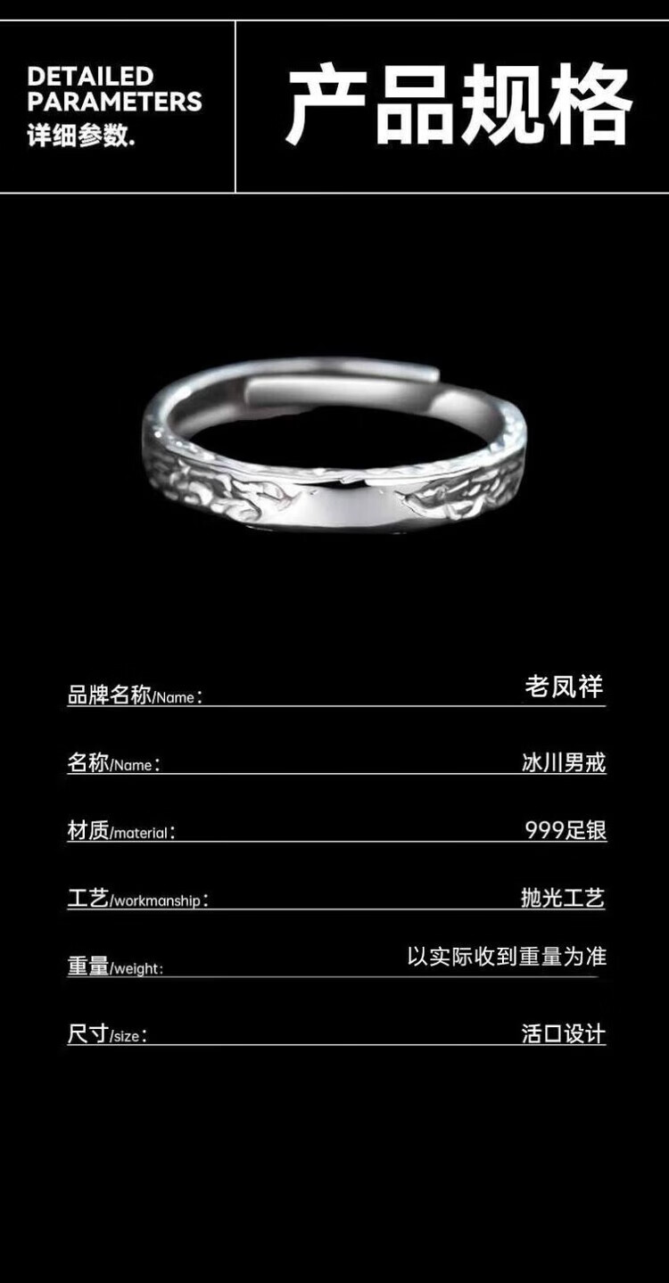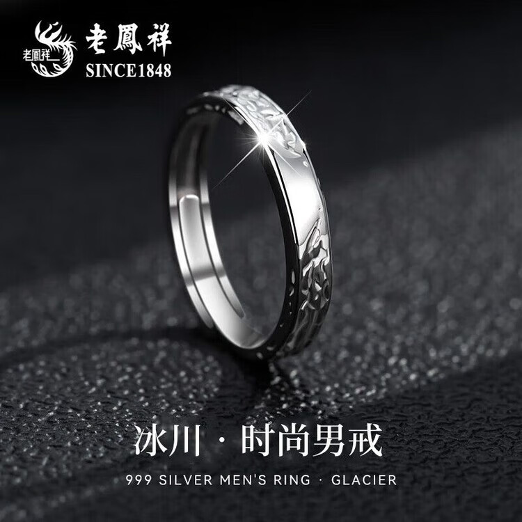 老凤祥足银冰川戒指男款简约时尚高级感单身戒生日七夕礼物送男友 【凛冽冰川意志】时尚情侣对戒+证书礼盒