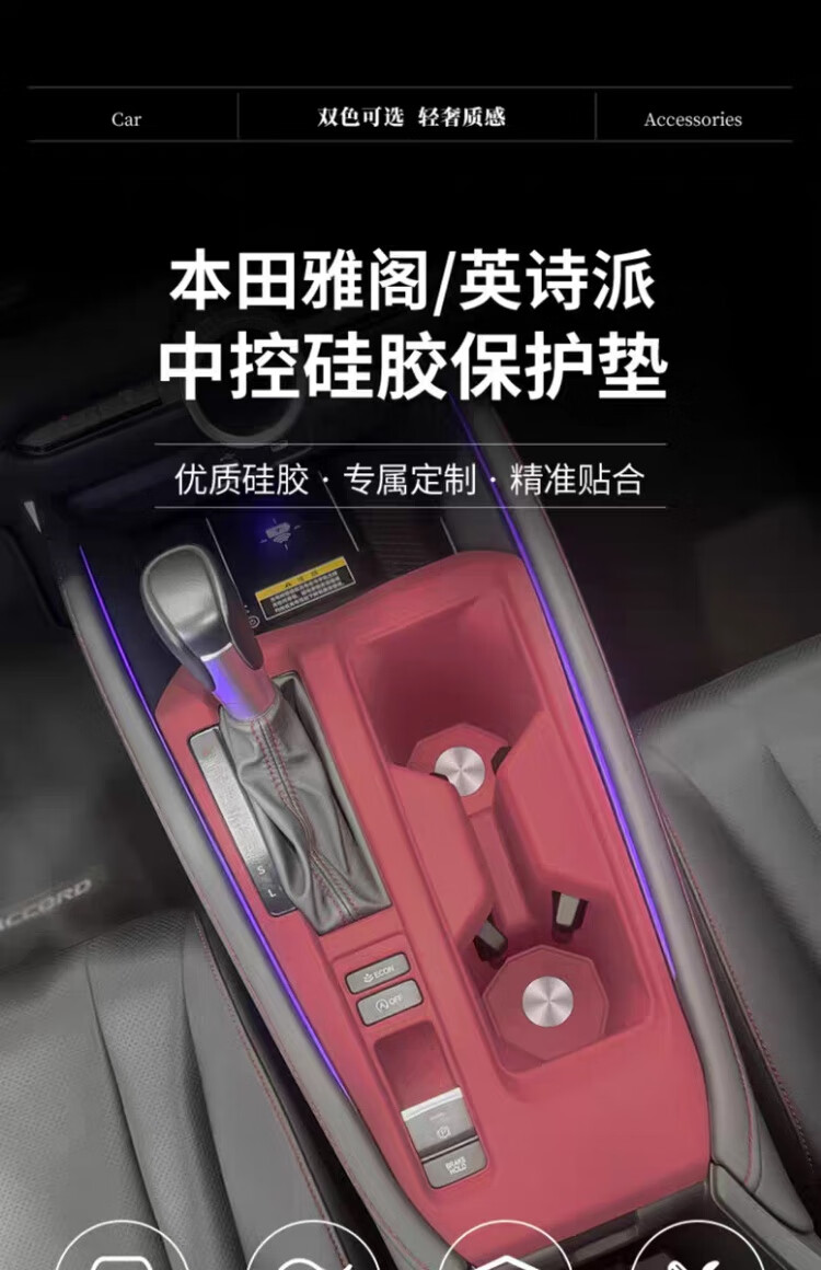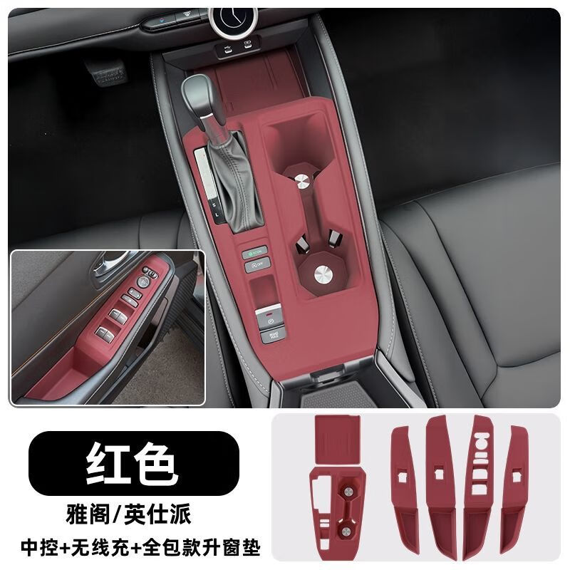 18-25款本田雅阁仕诗派中控硅胶垫排挡升降面板保护垫改装用品配 雅阁中控+无线充+全包升窗红色款