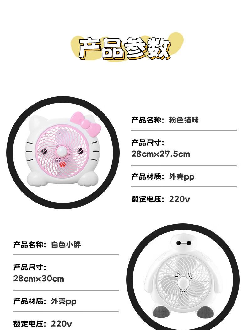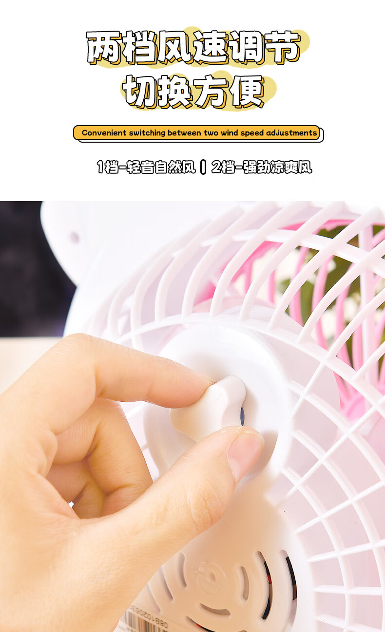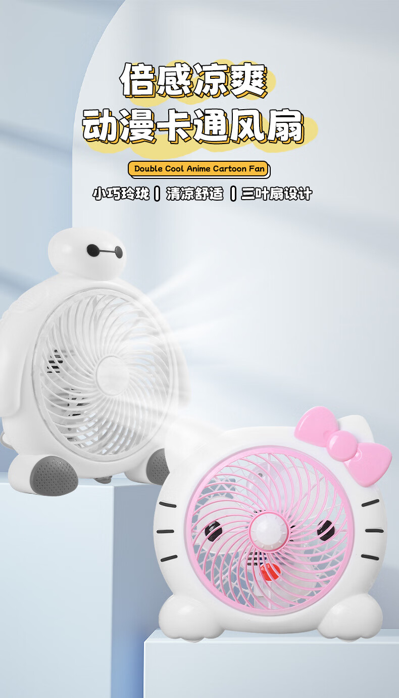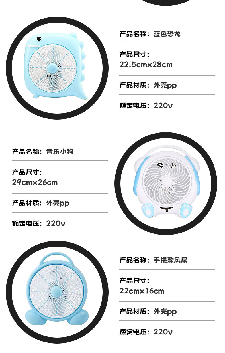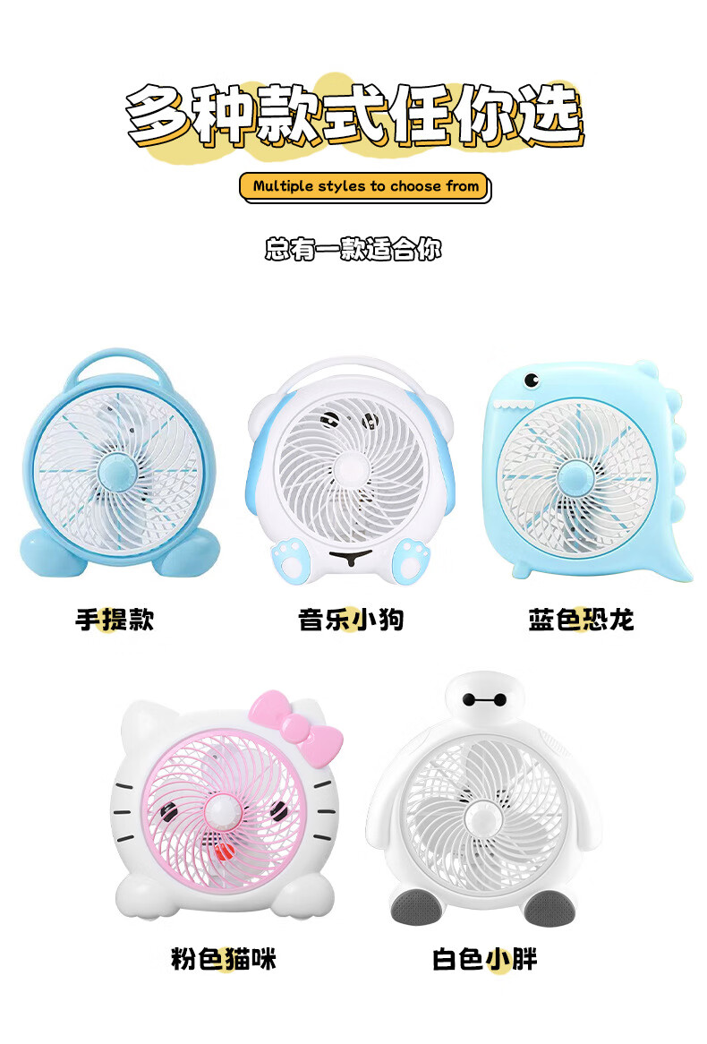 【甄选百货】卡通桌面台式风扇办公室宿舍摆台电风扇家用可爱学生 8寸蓝色手提 标配(自带电线1.3米