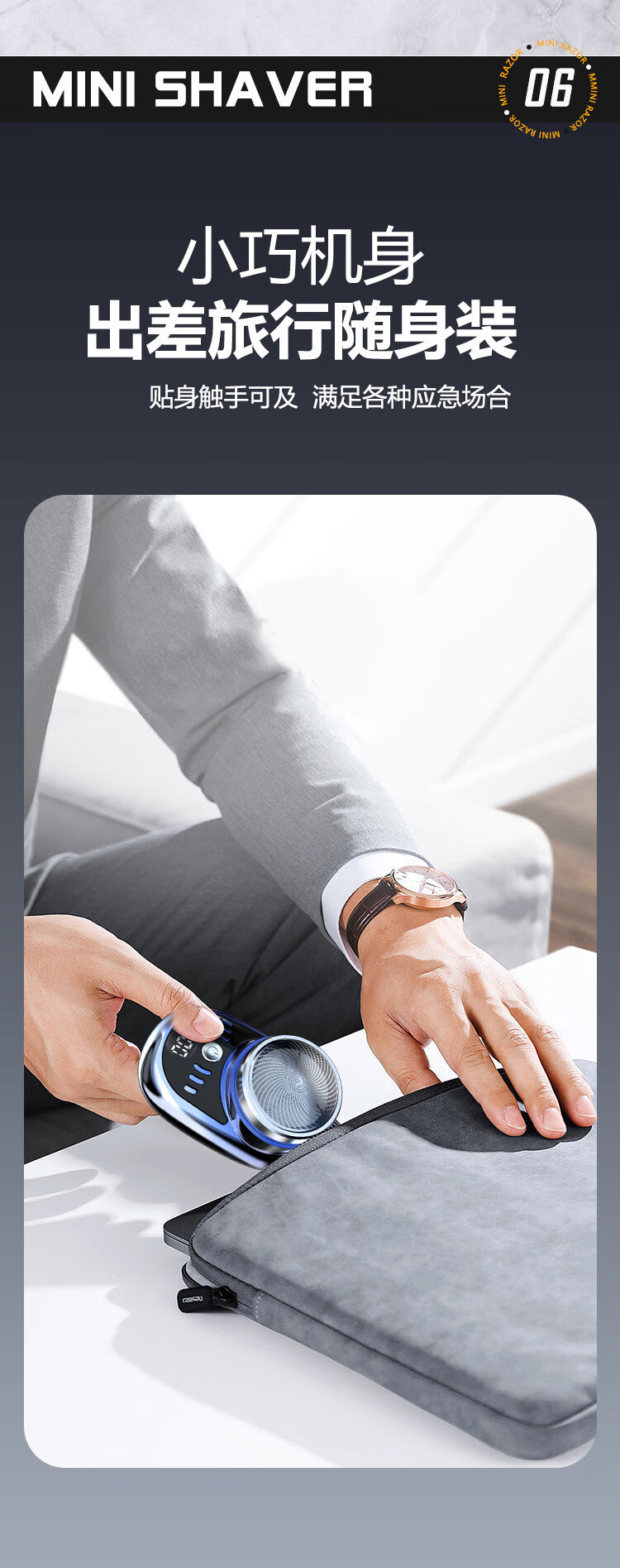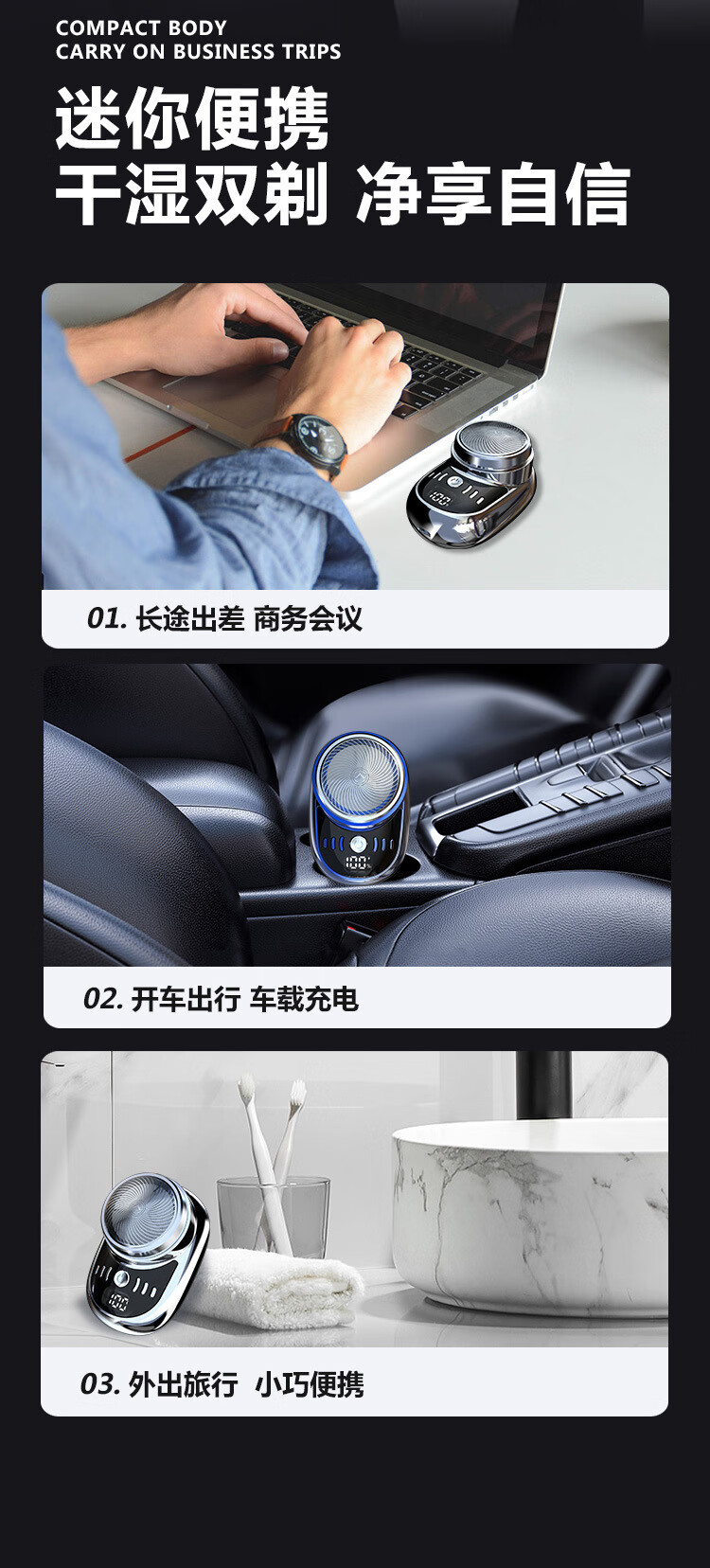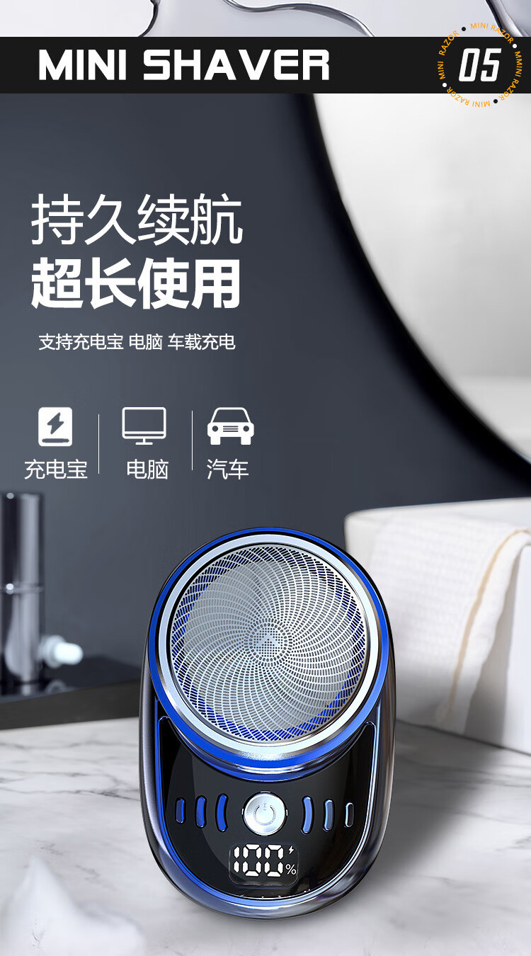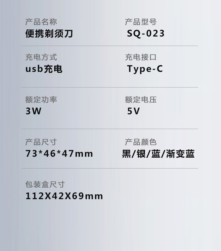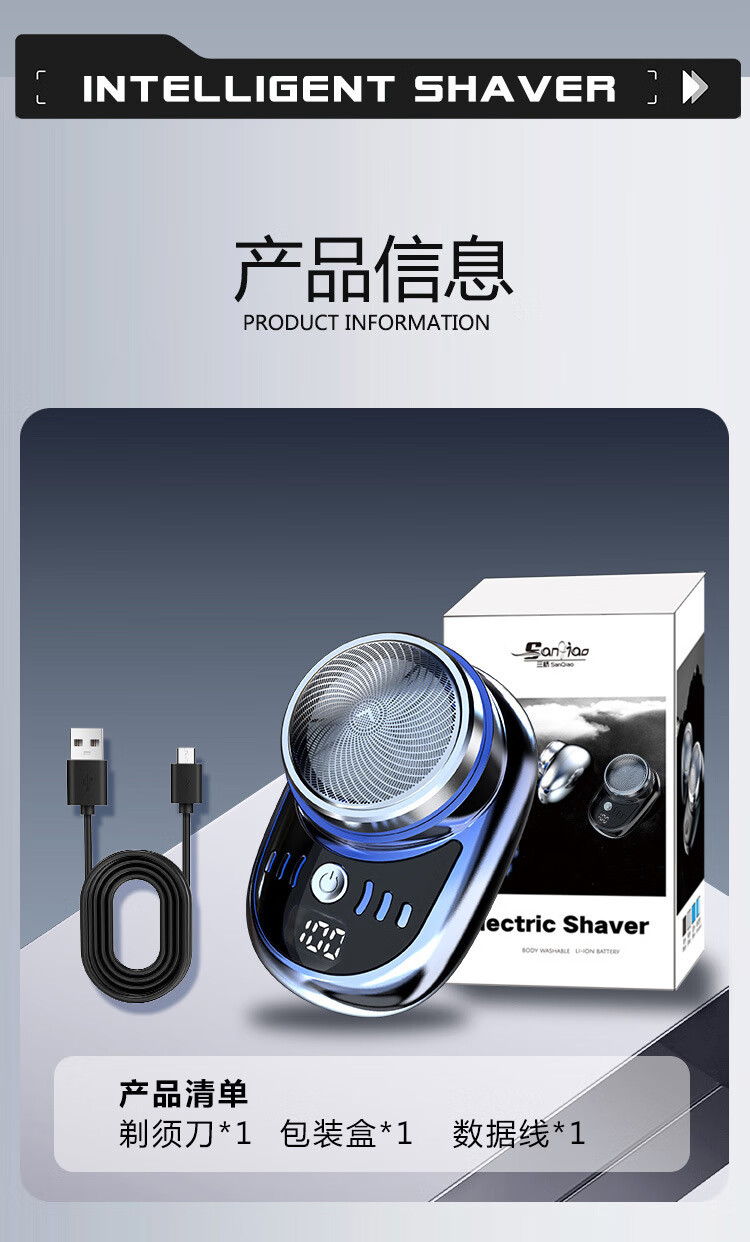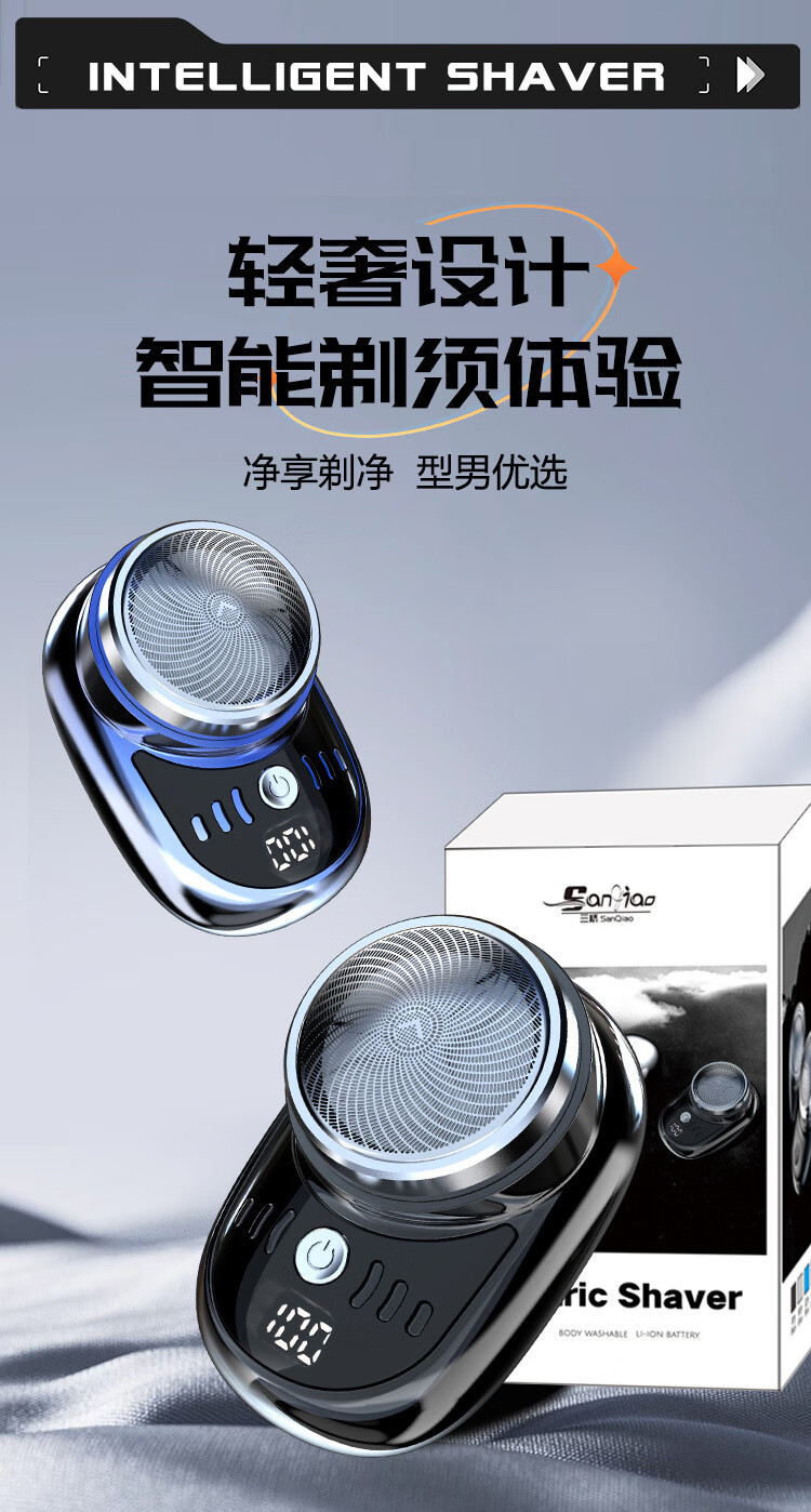 【严选直发】数量电量显示迷你电动剃须刀数显水洗刮胡刀 SQ-023黑色 中文包装