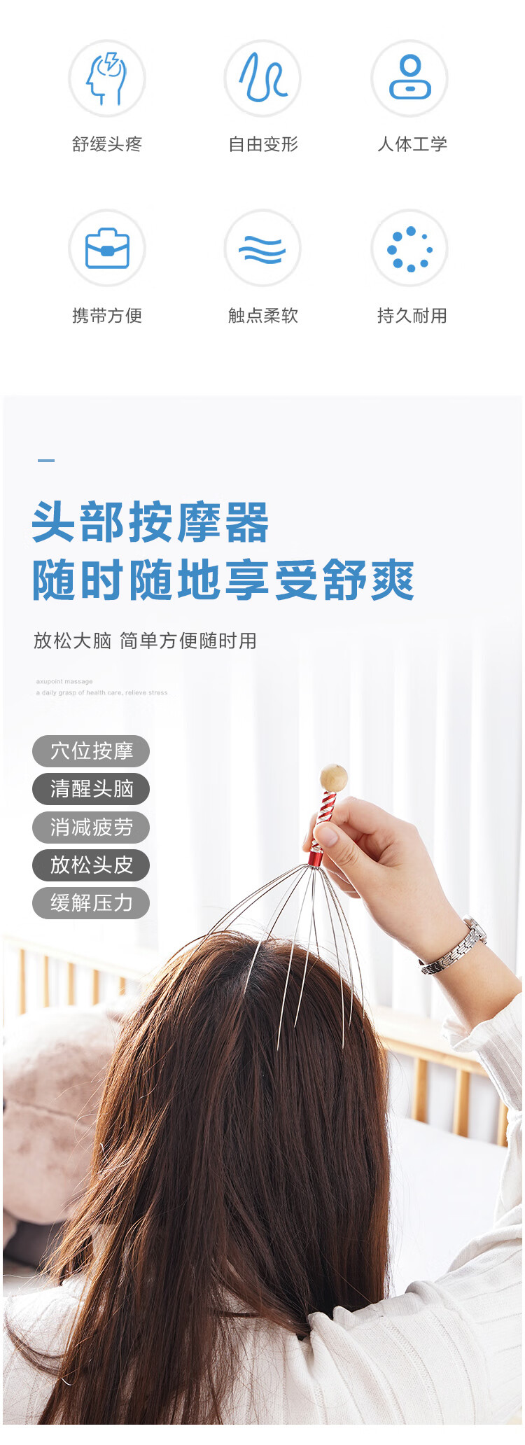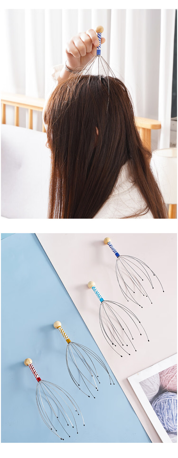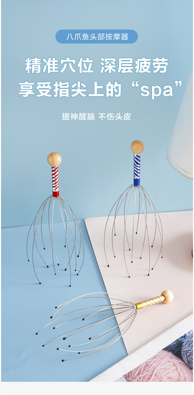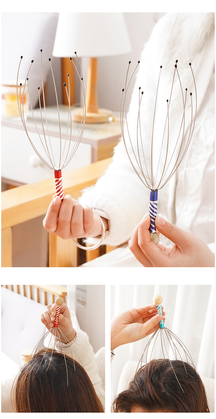 霞栖棠灵魂提取器八爪鱼头部按摩器 挠头皮按摩爪 抓头神器痒放松摄取器 升级版-长短12爪-全方位头部按摩 2把装