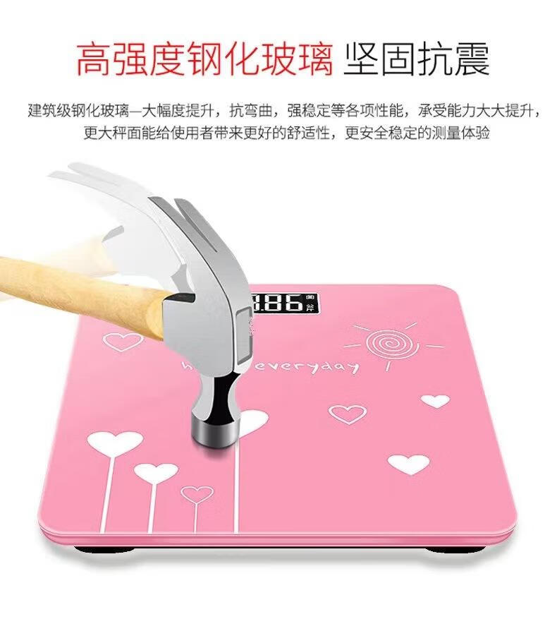 安诺心【厂家直供】秤体重秤家用可充电人体秤成人精准称健康称重体重计 玫瑰金(1个装) 26cm*26cm电池款