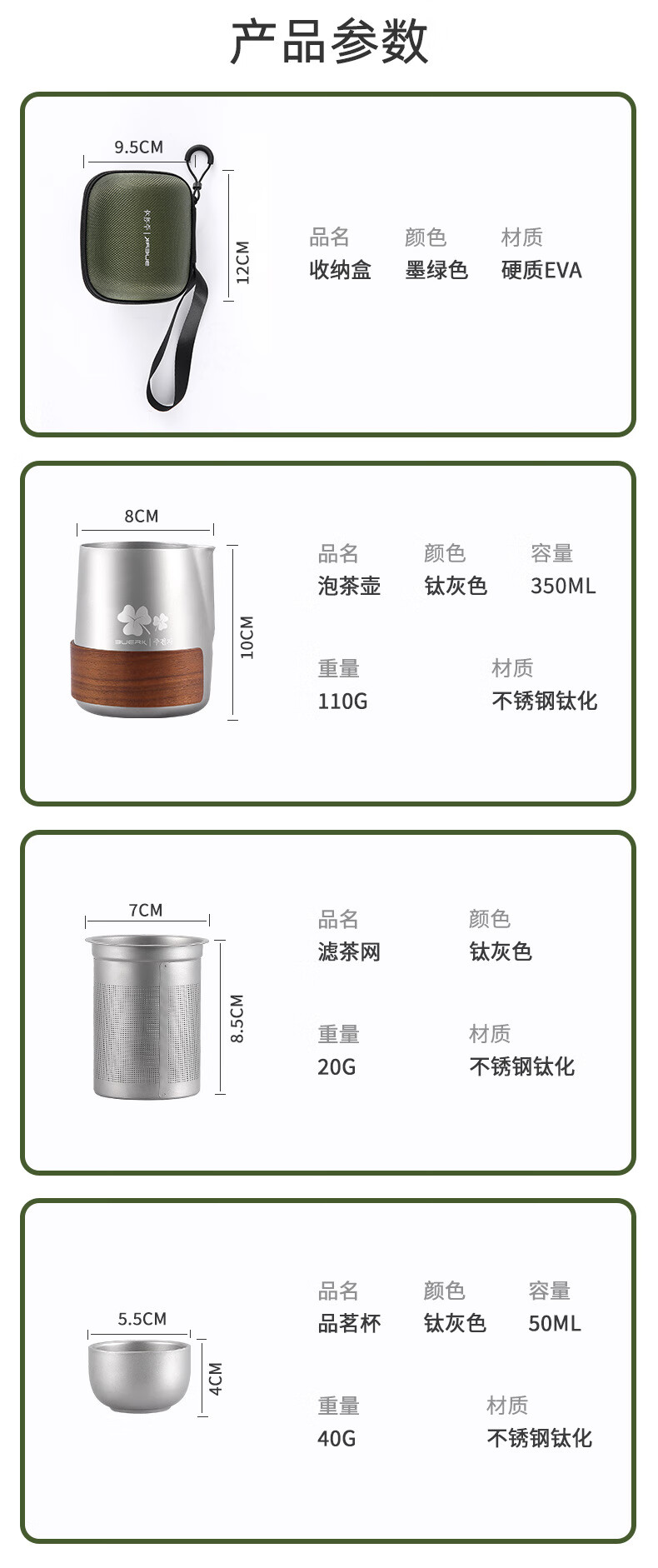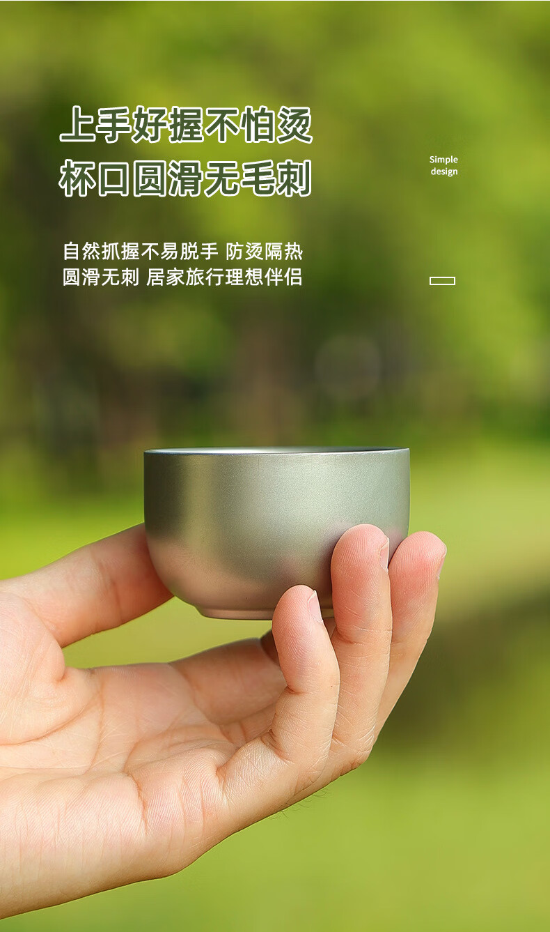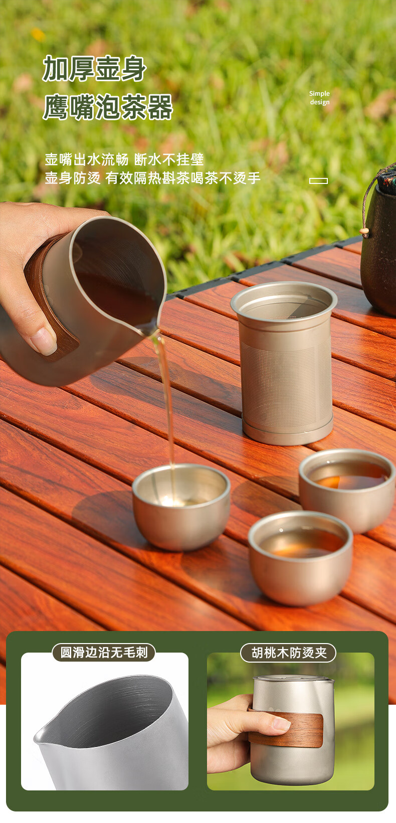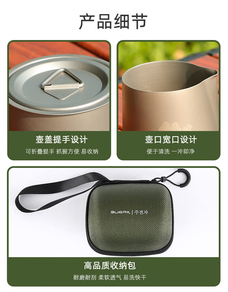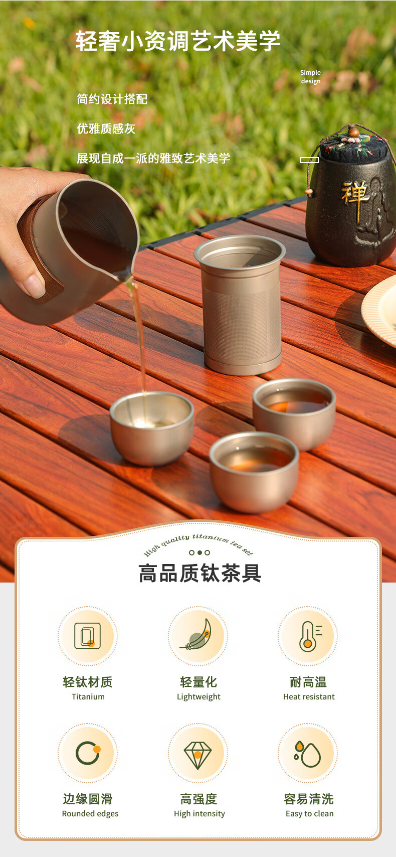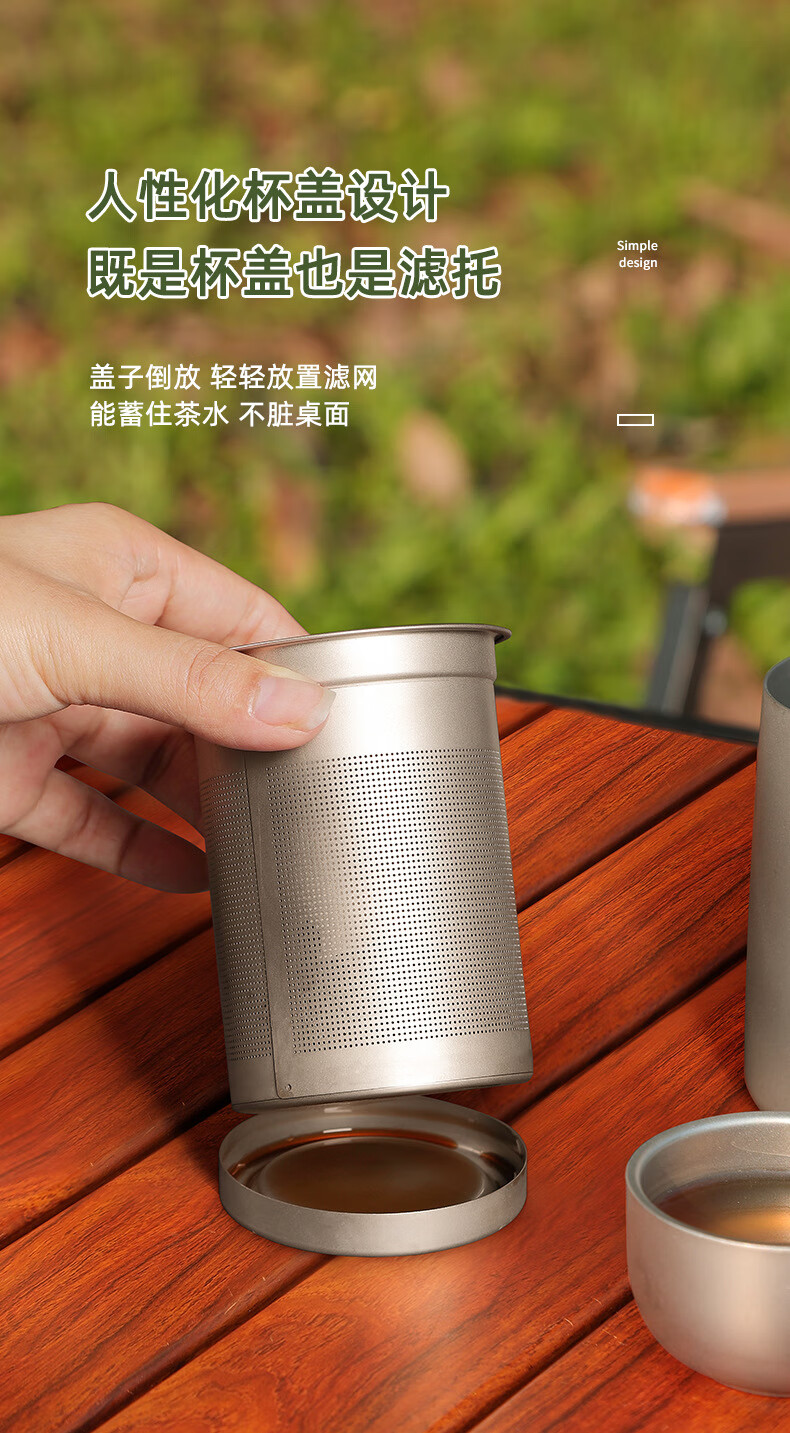 布比克轻钛钛合金便携式旅行茶具套装茶壶双层茶杯户外露营泡茶装备 钛化茶具【1壶(带茶滤)3杯】