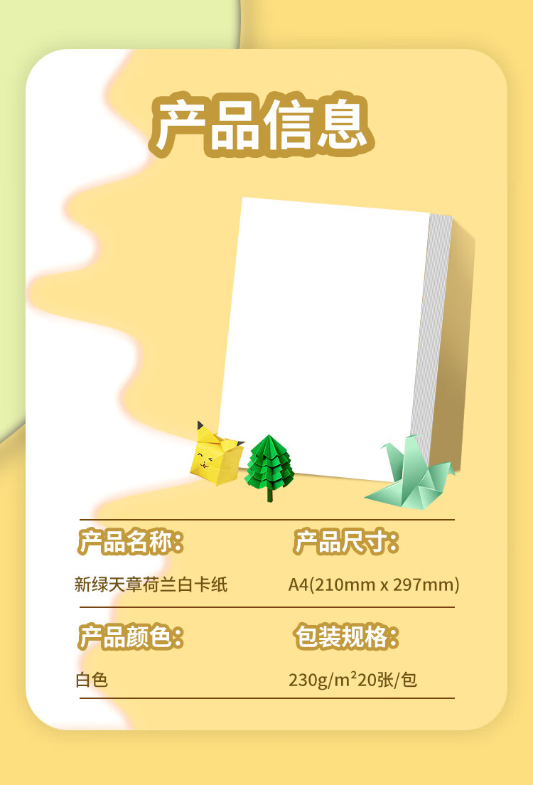 天章 (TANGO)【开学必备】A4荷兰白卡纸230g加厚硬卡纸 学生手工折剪纸美术画画盖章马克纸手抄报专用纸20张/包