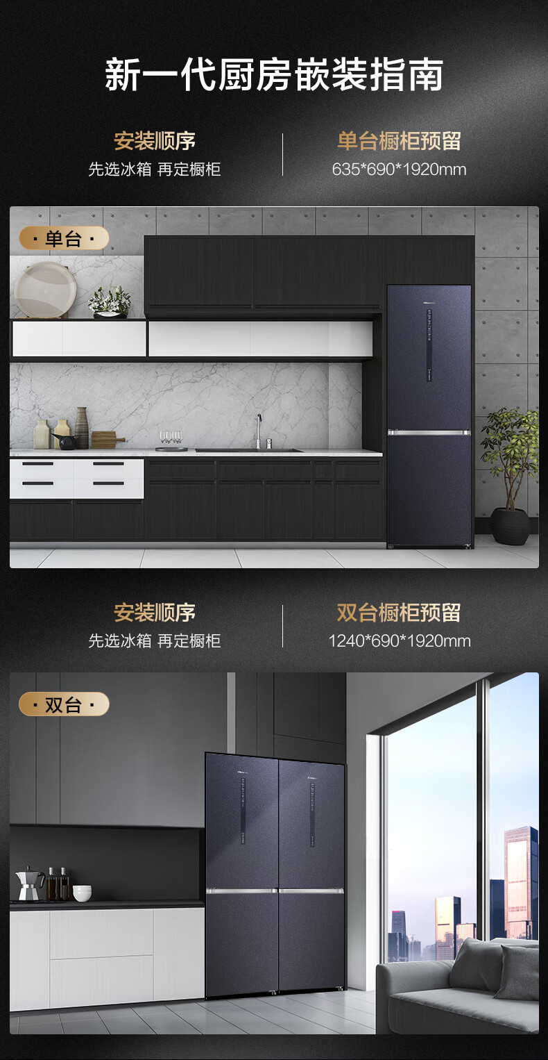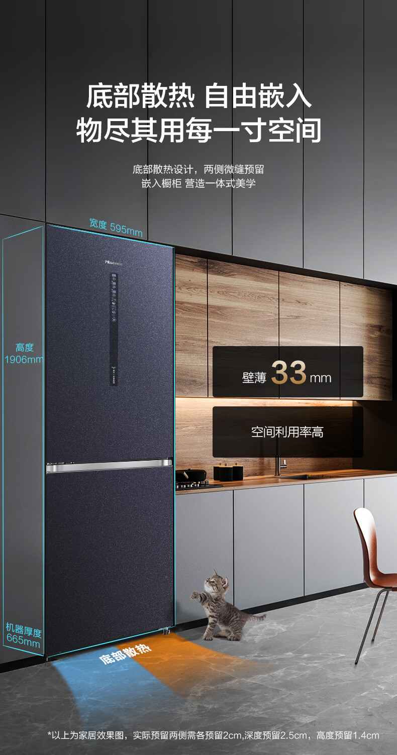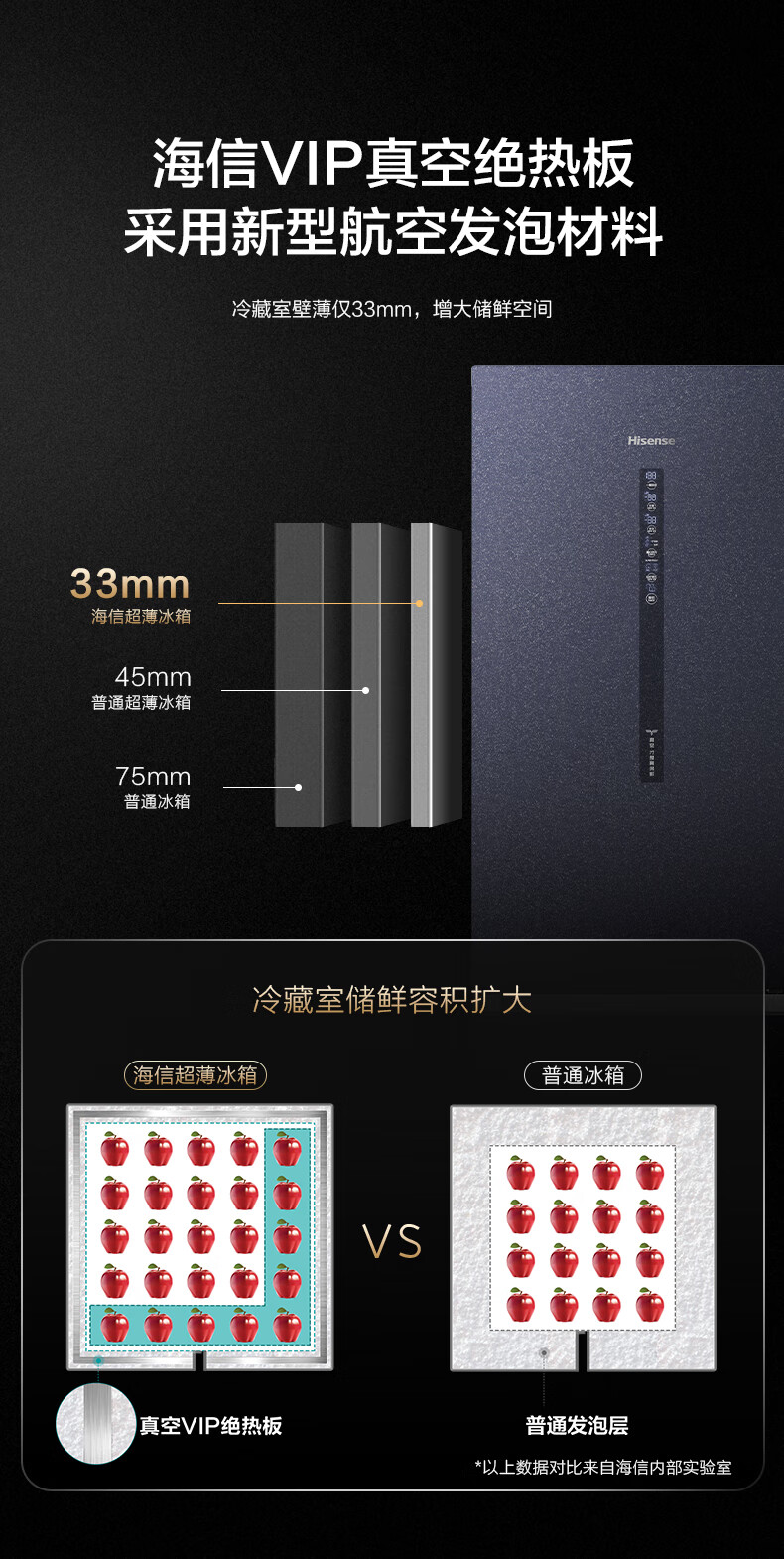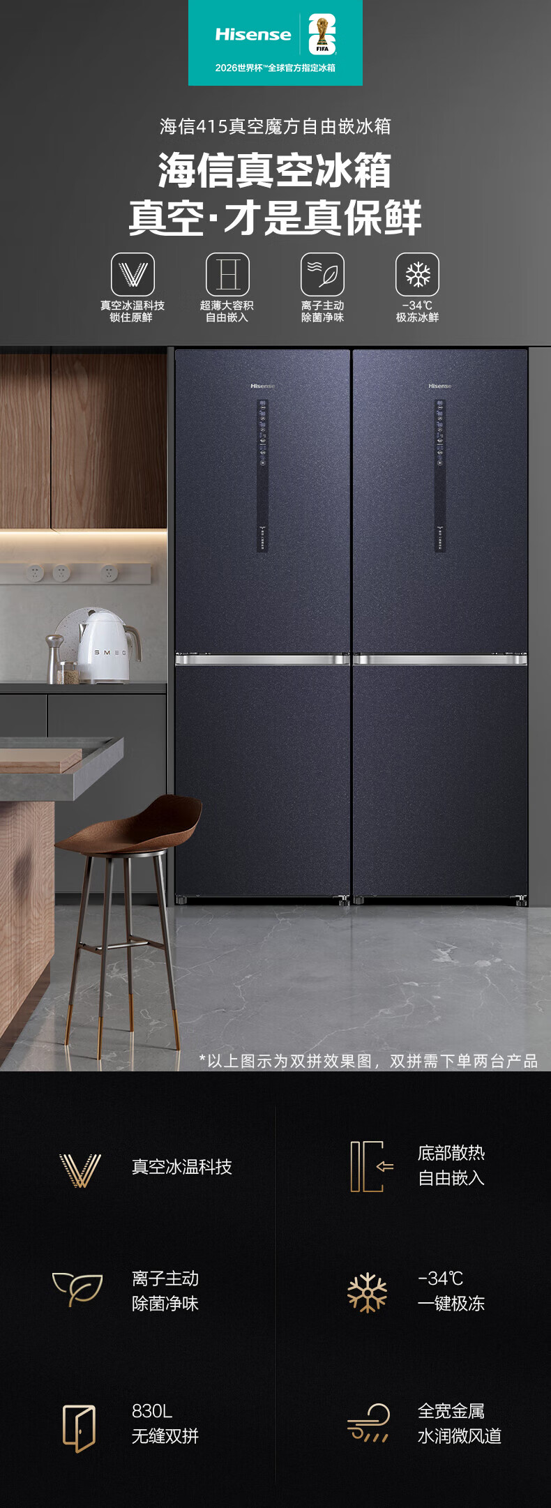 海信冰箱415真空魔方冰箱超薄嵌入式冰箱双开门二门一级能效家电国家补贴20%以旧换新BCD-415WTDGVBPIV