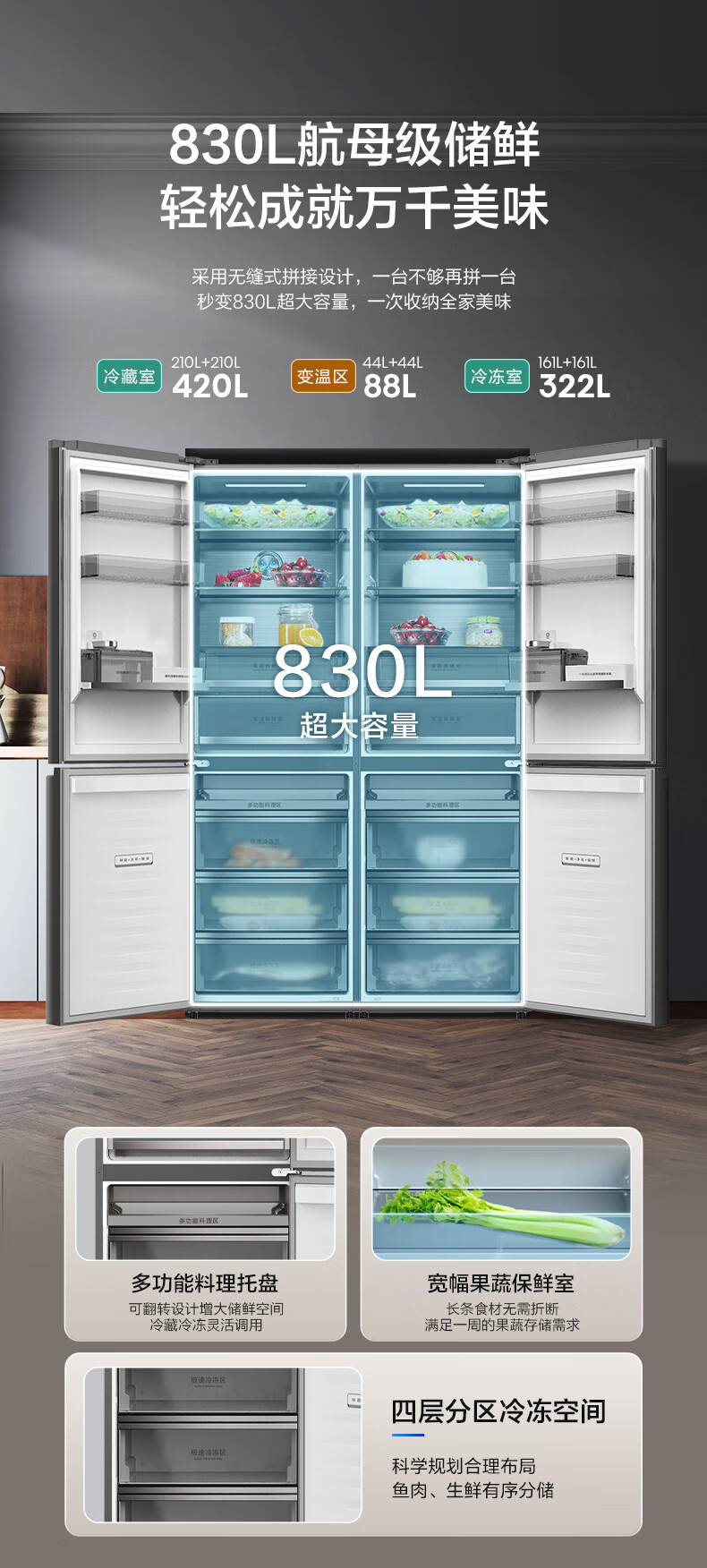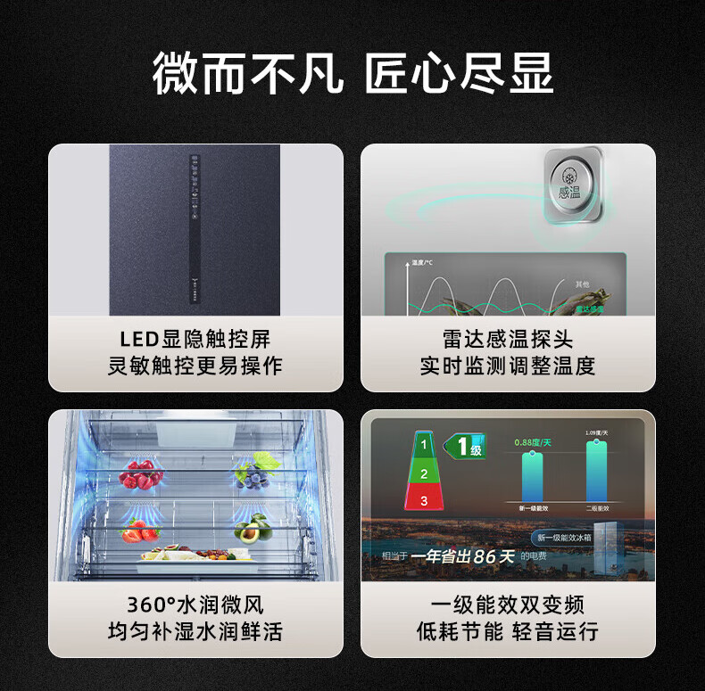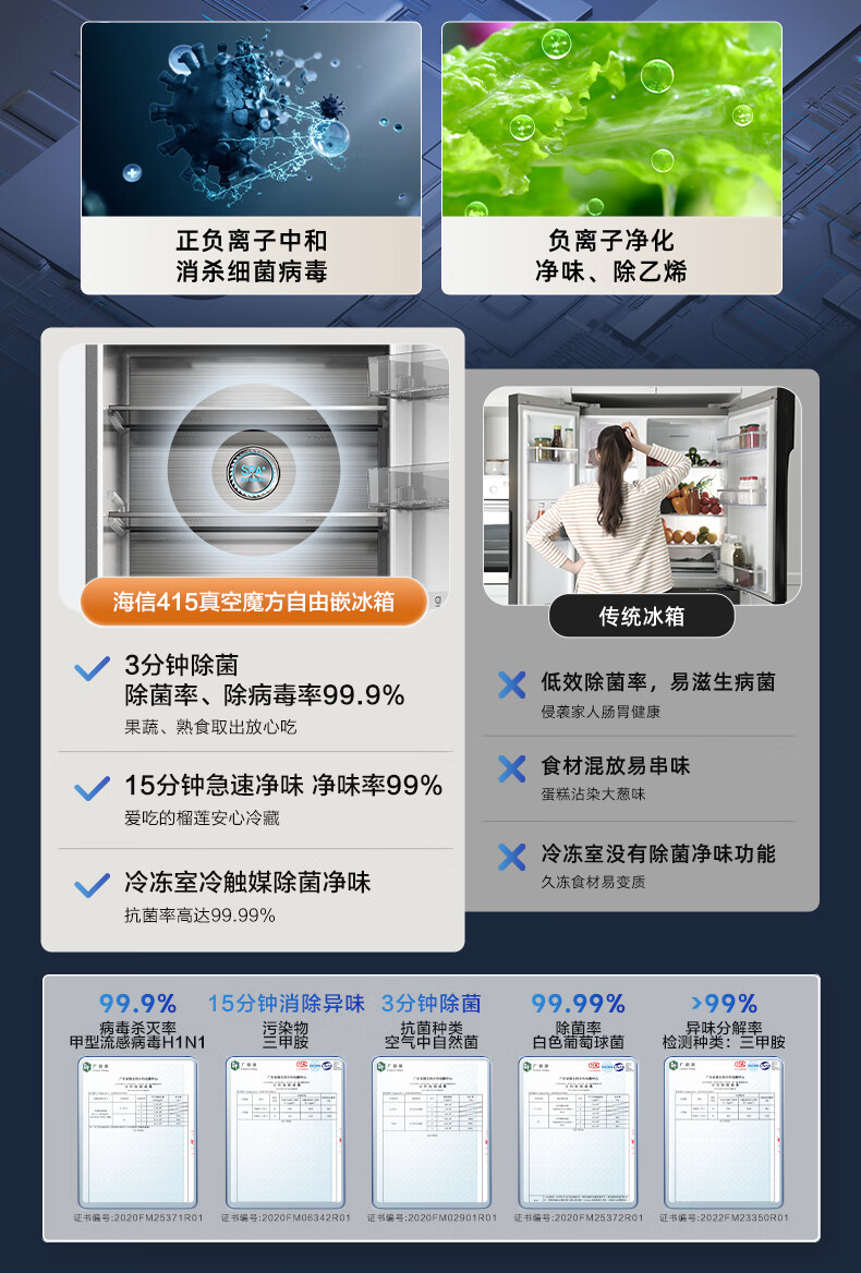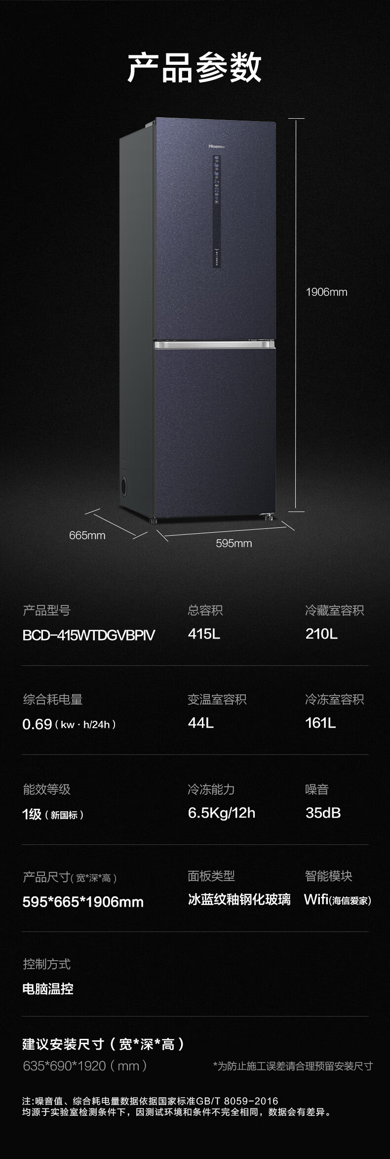 海信冰箱415真空魔方冰箱超薄嵌入式冰箱双开门二门一级能效家电国家补贴20%以旧换新BCD-415WTDGVBPIV
