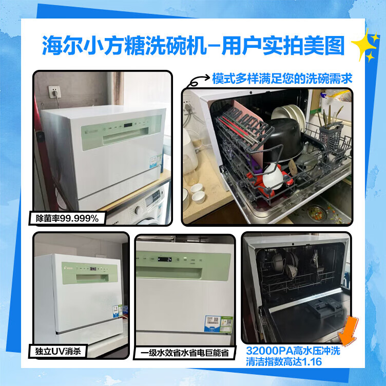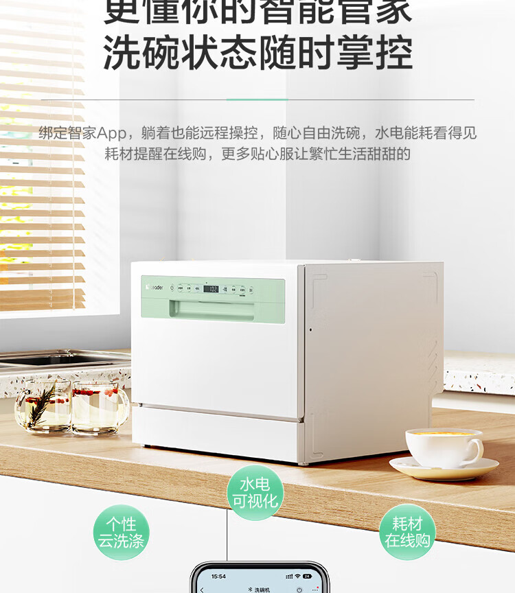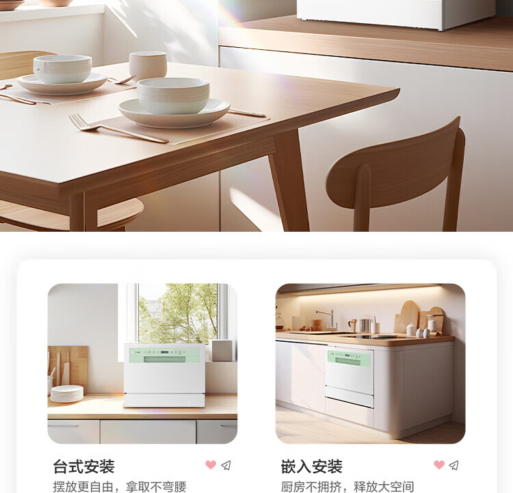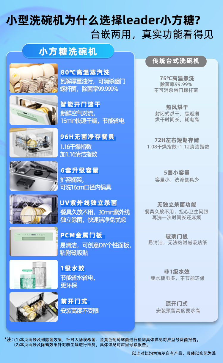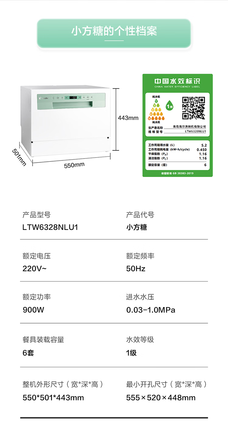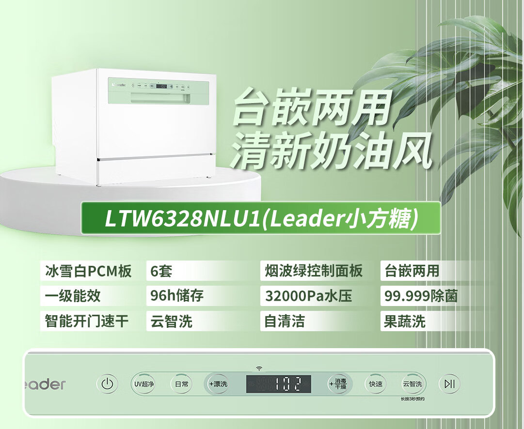 海尔智家洗碗机出品家用台式嵌入式6套小型Leader小方糖一键自清洁智能开门烘干一级水效+UV紫外线除菌 【就近仓】台嵌两用小方糖洗碗机