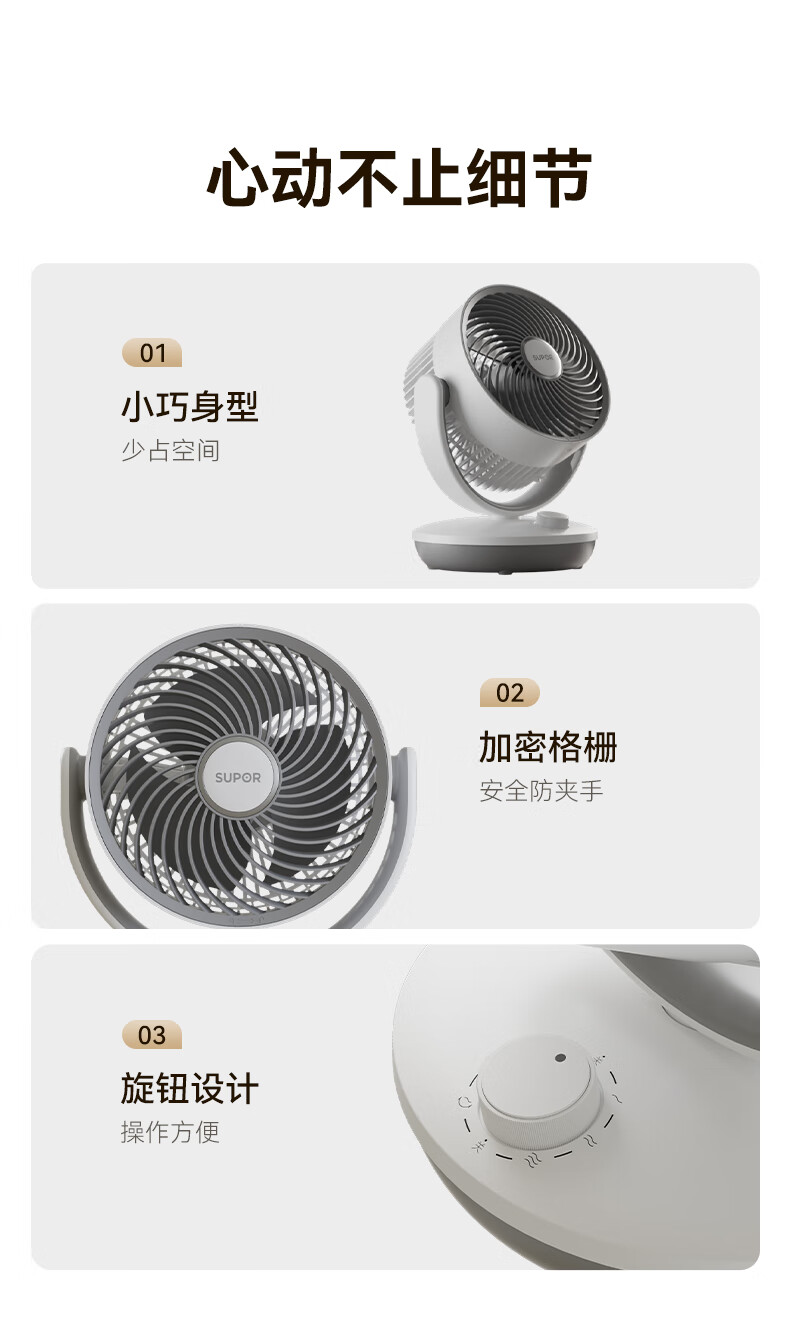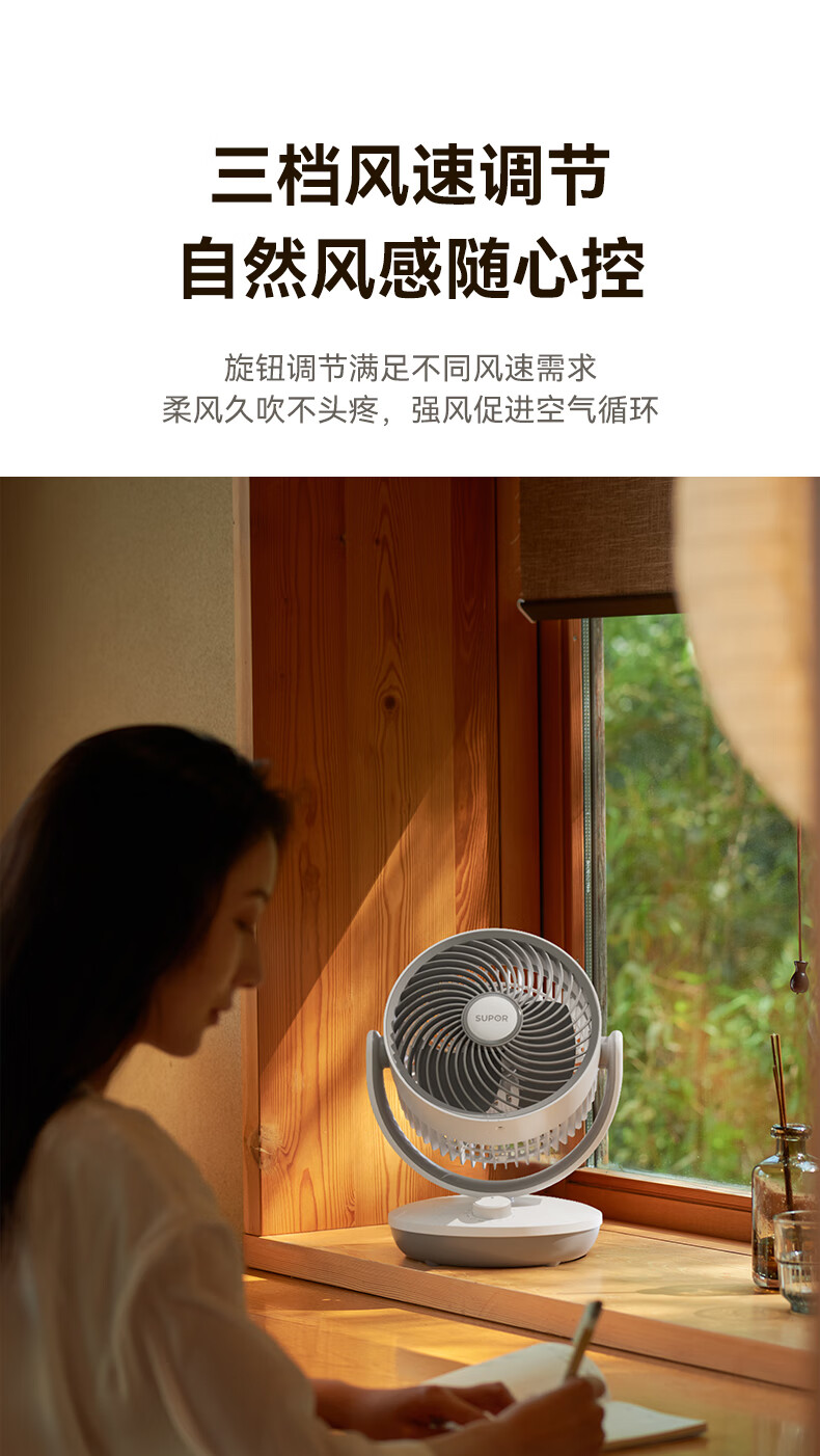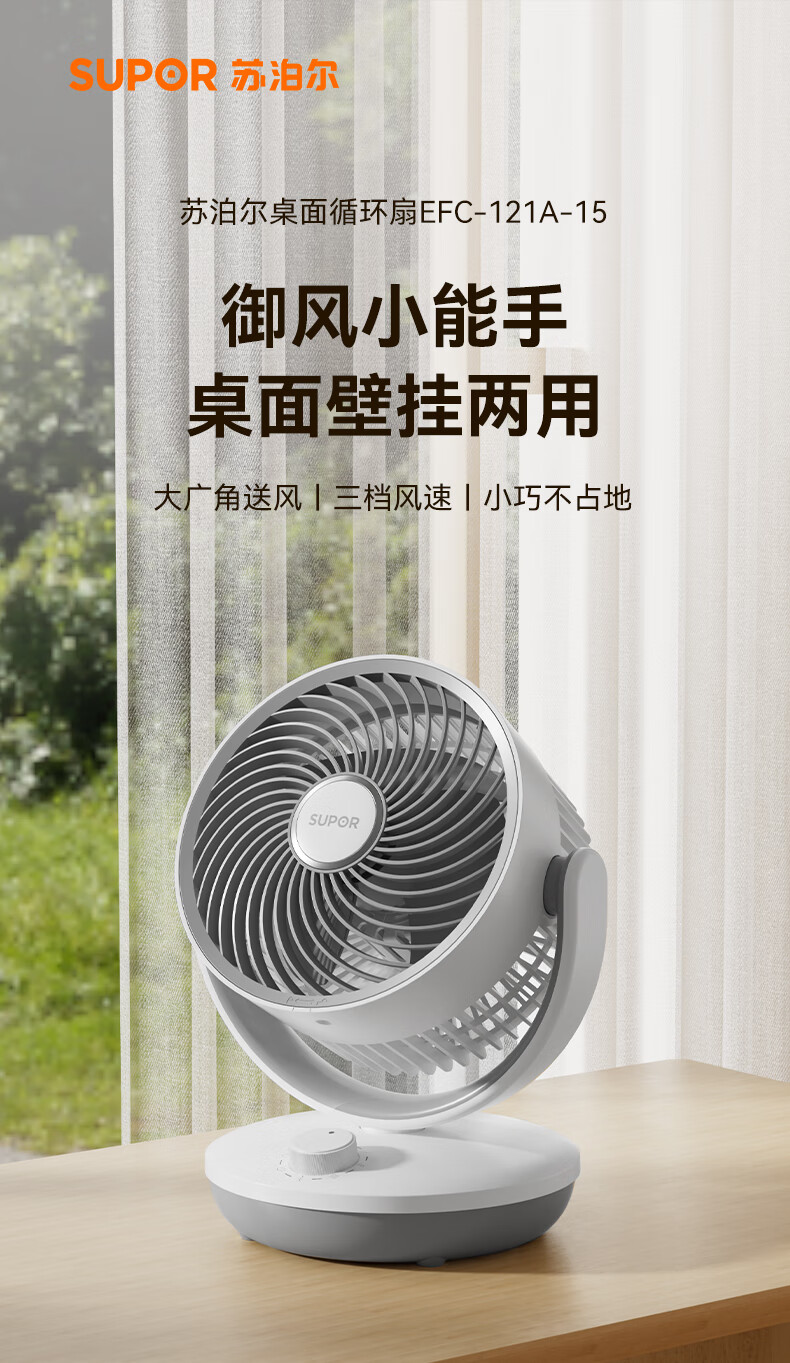 苏泊尔空气循环扇家用风扇台式电风扇小型轻音节能对流换气扇桌面风扇办公室学生小型电扇EFC-121A-15