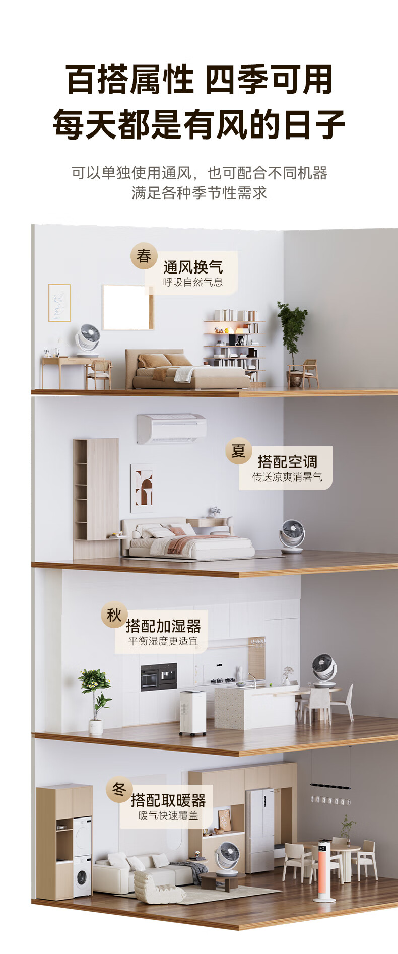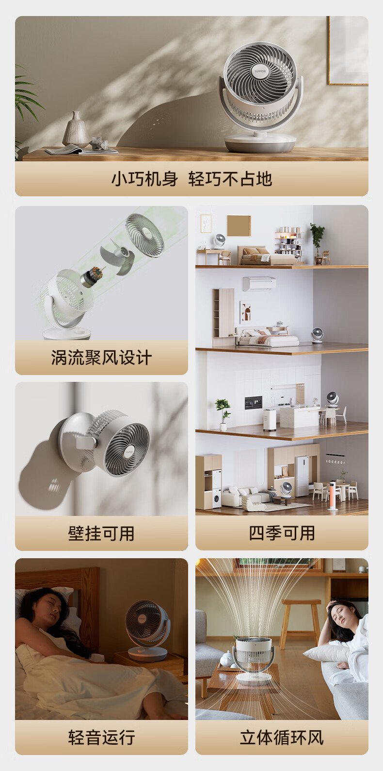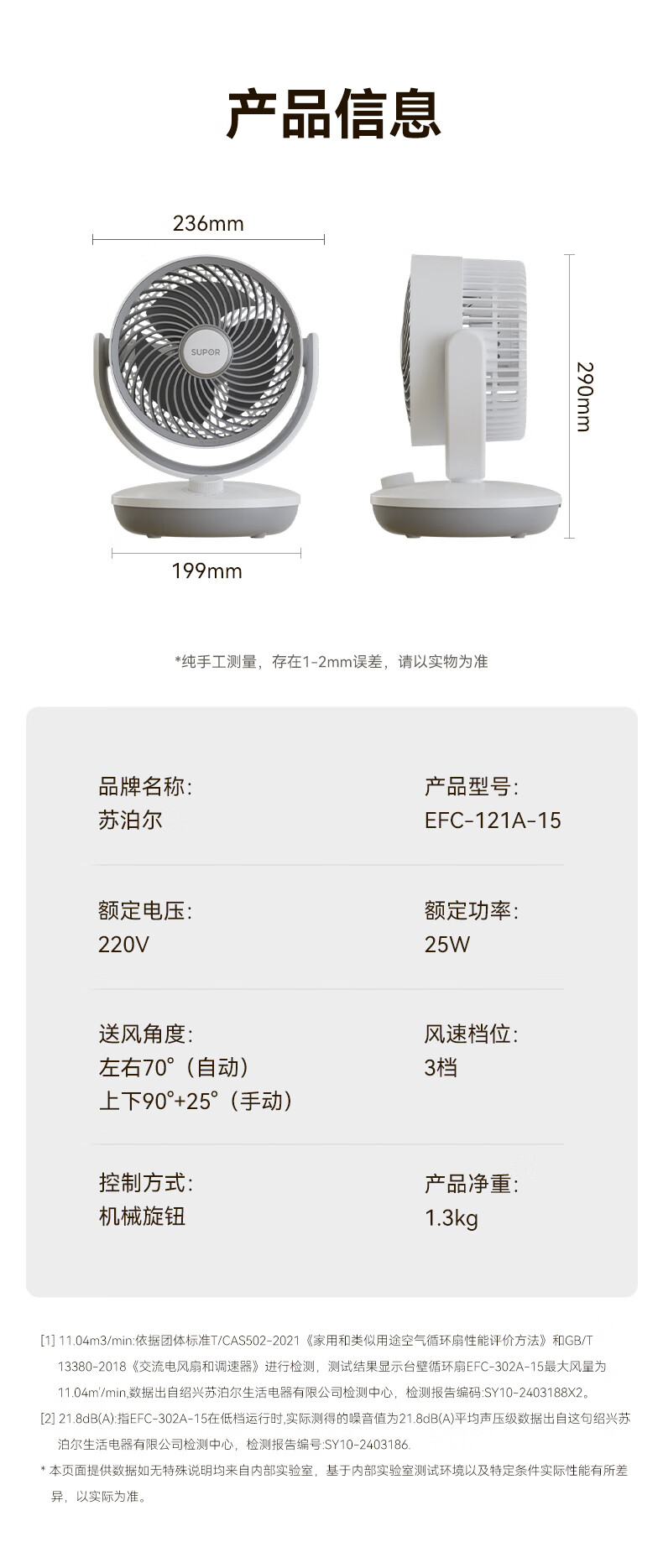 苏泊尔空气循环扇家用风扇台式电风扇小型轻音节能对流换气扇桌面风扇办公室学生小型电扇EFC-121A-15