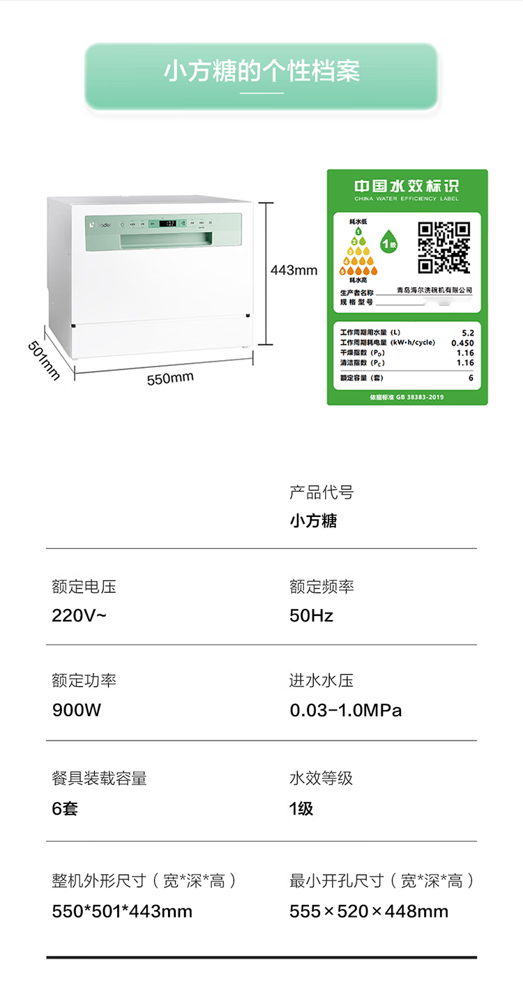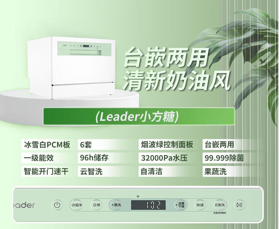 海尔智家洗碗机出品家用台式嵌入式6套小型Leader小方糖一键自清洁智能开门烘干一级水效+UV紫外线除菌 【就近仓】台嵌两用小方糖洗碗机