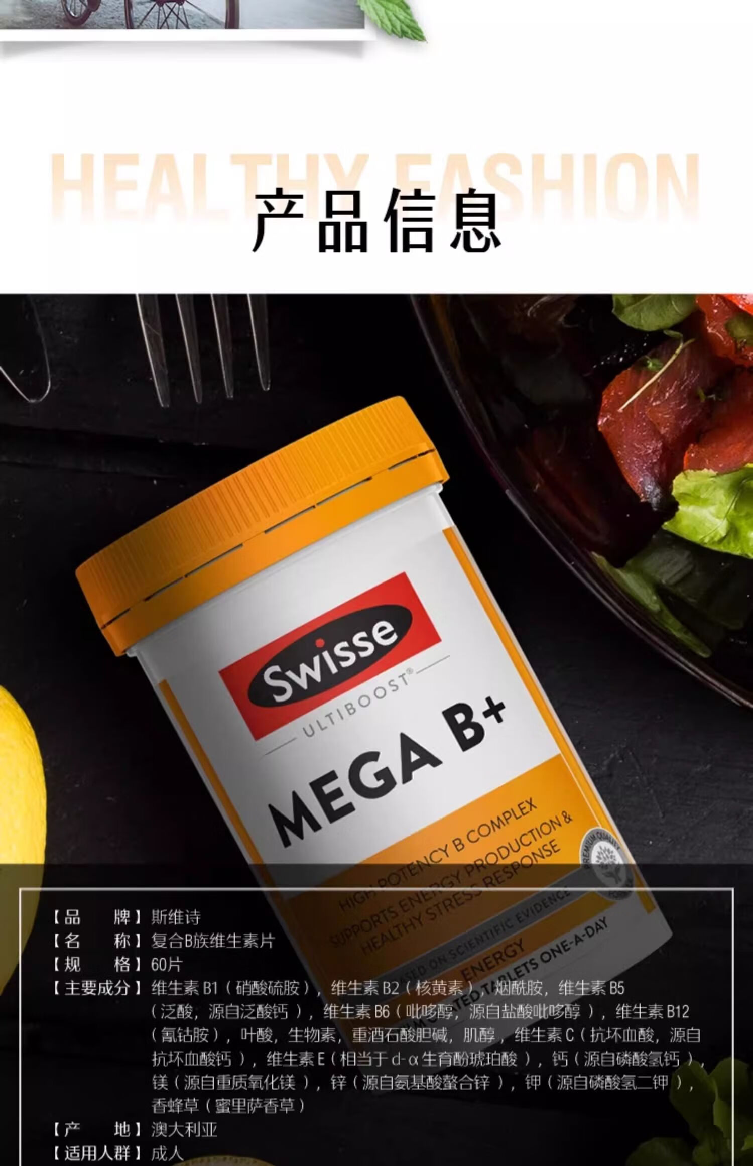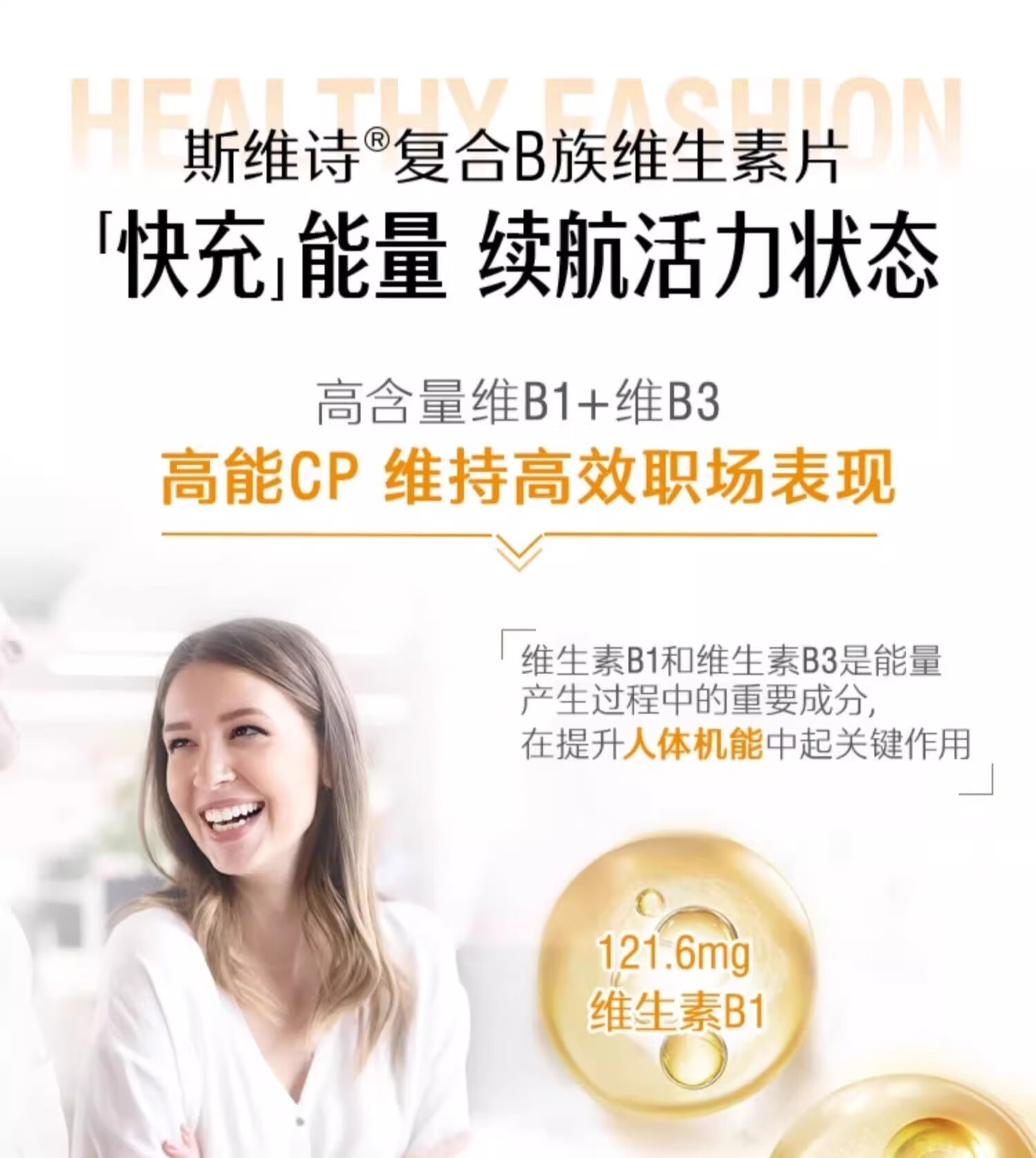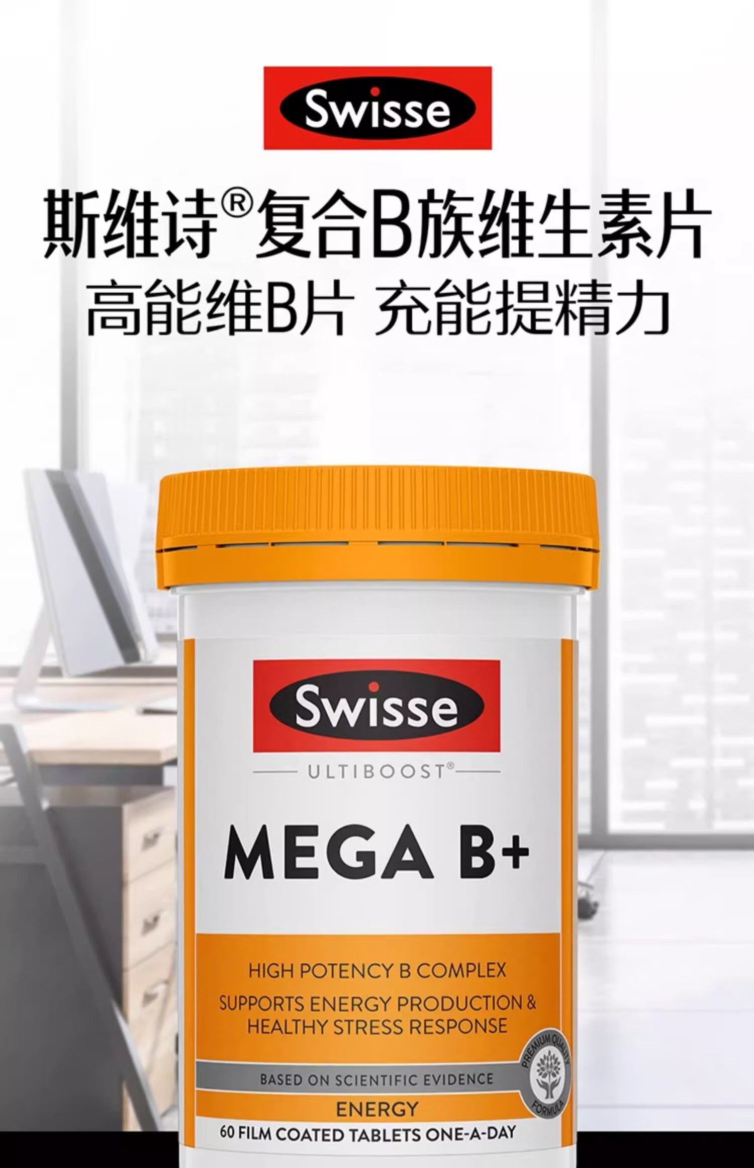 Swisse斯维诗复合维生素B族VB维他命B提高新陈代谢补充能量60粒 驼色