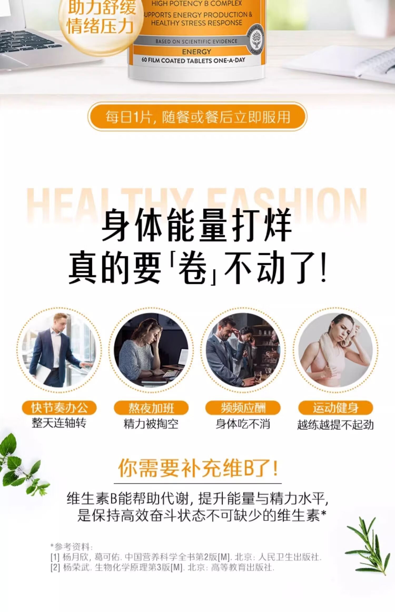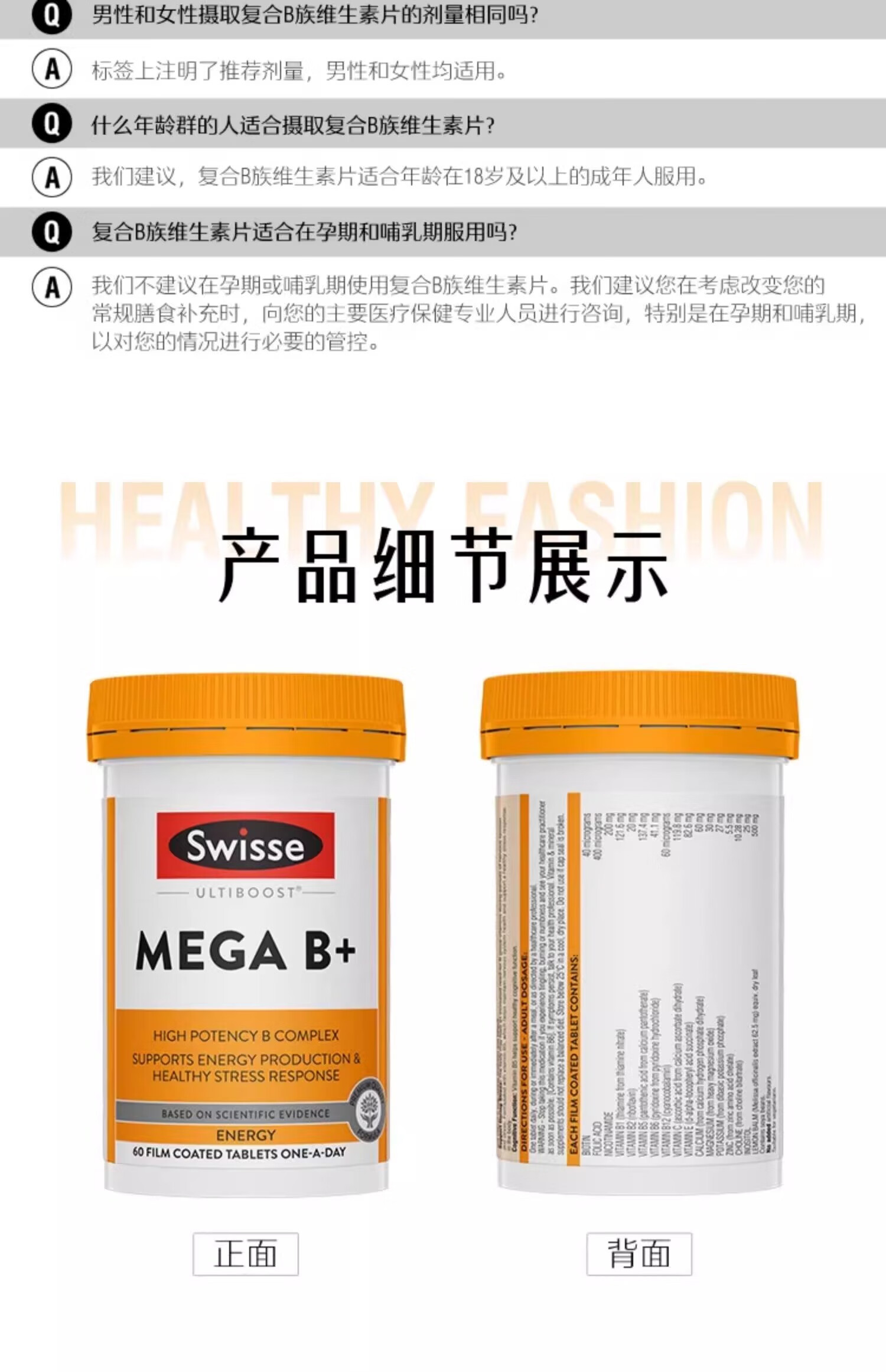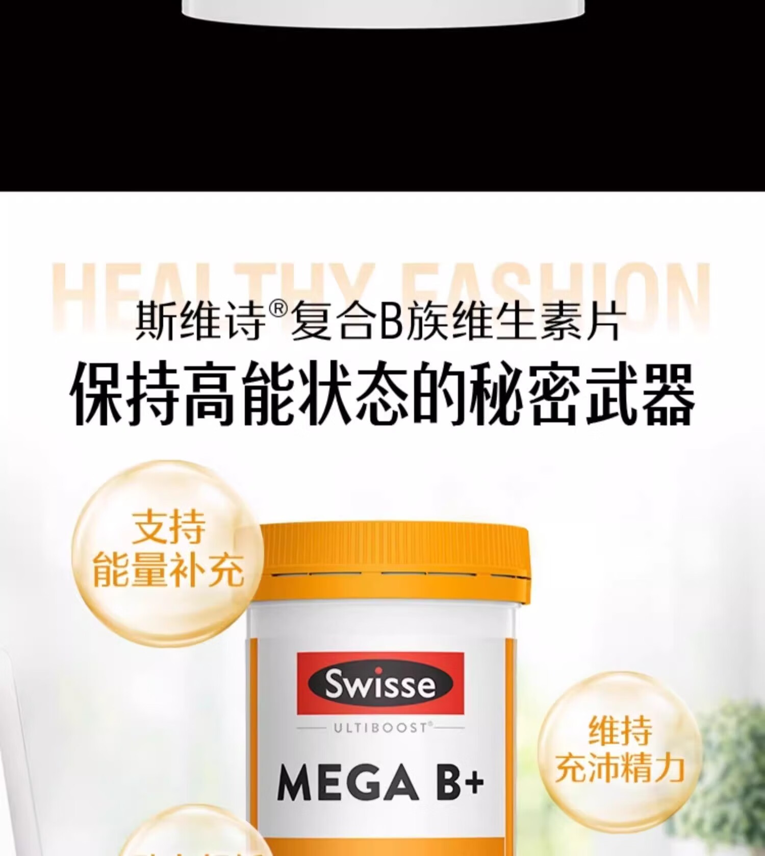 Swisse斯维诗复合维生素B族VB维他命B提高新陈代谢补充能量60粒 驼色