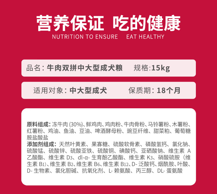 麦富迪狗粮 无谷牛肉双拼狗粮成犬中大型犬专用强健骨骼15kg/30斤
