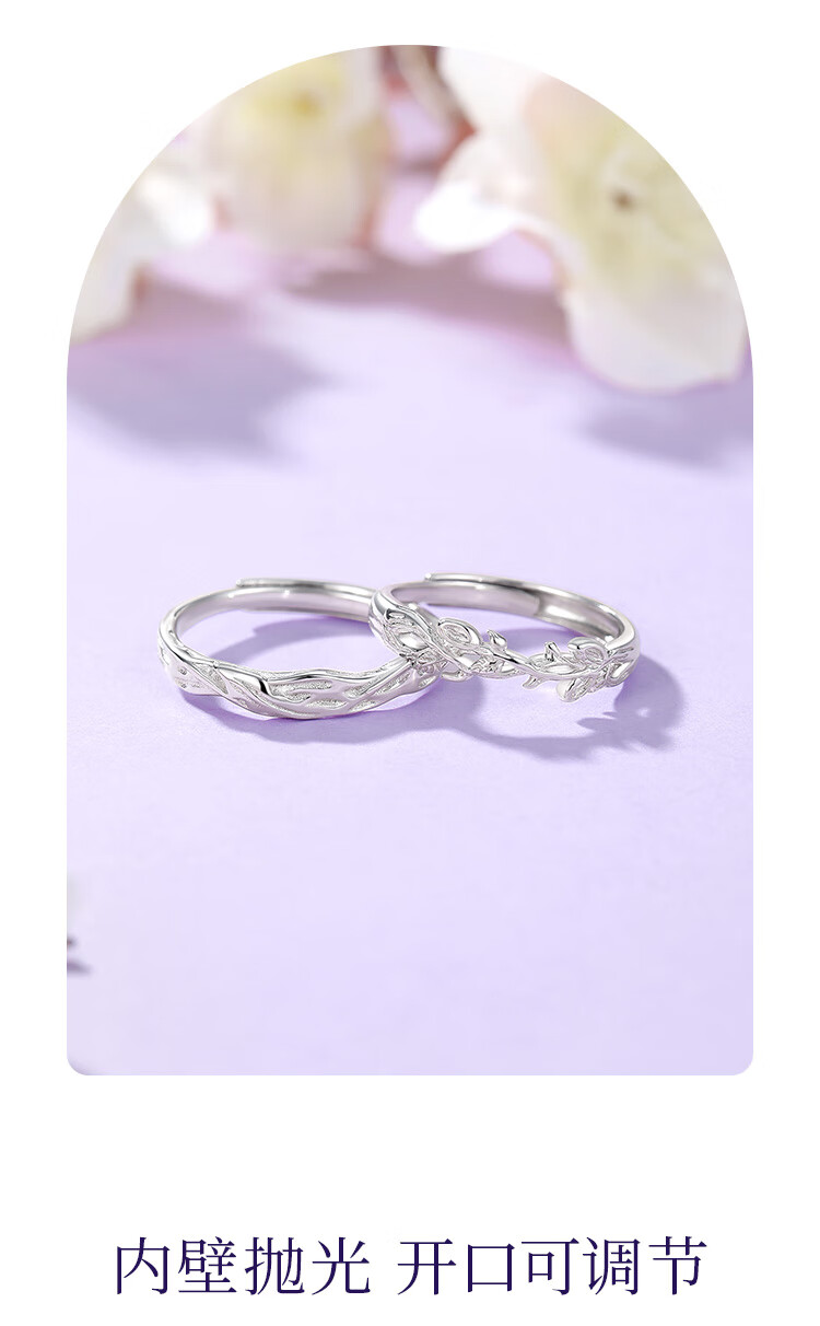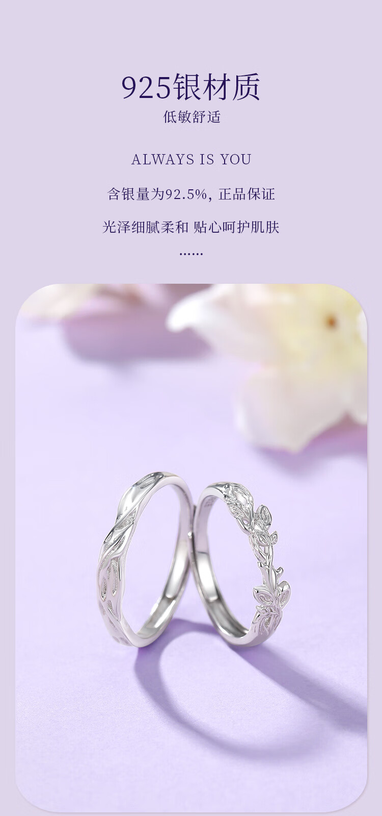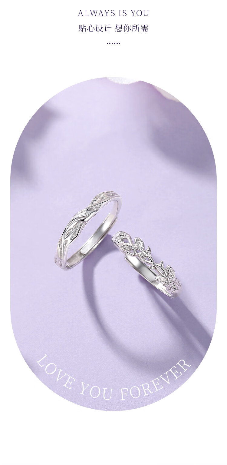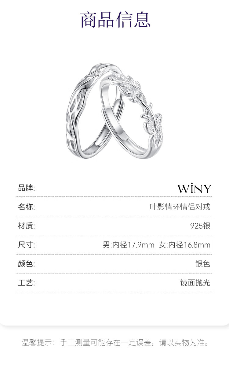 唯一(Winy)叶影情环戒指s925银情侣对戒送女友生日礼物纪念意义