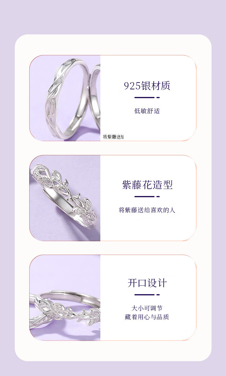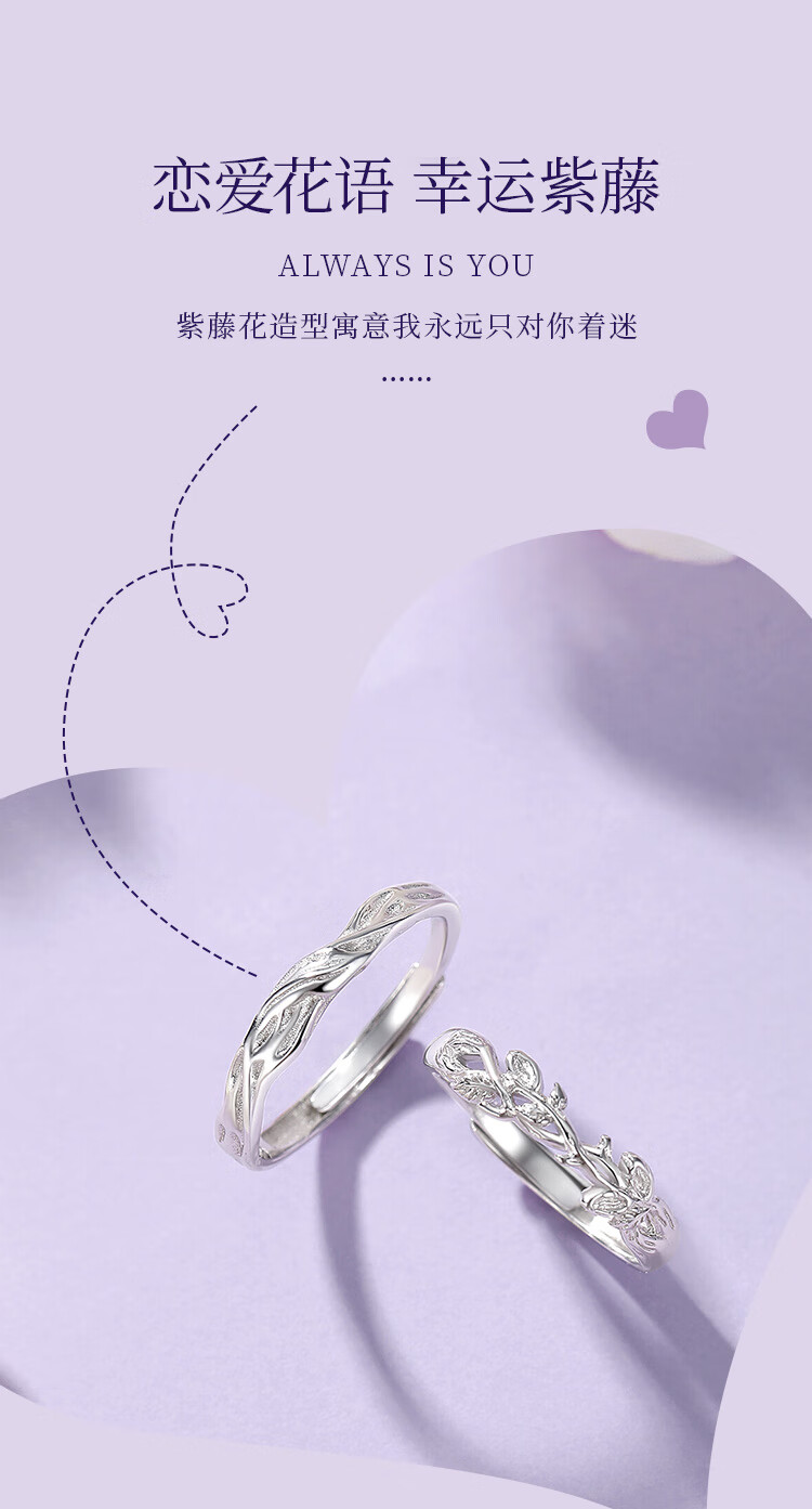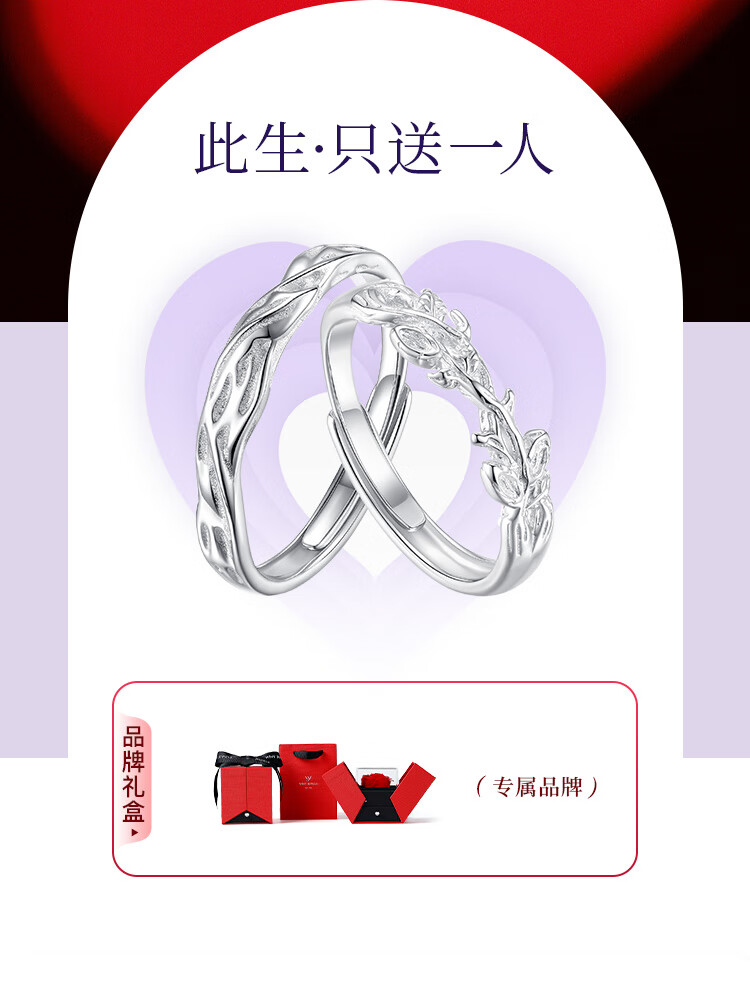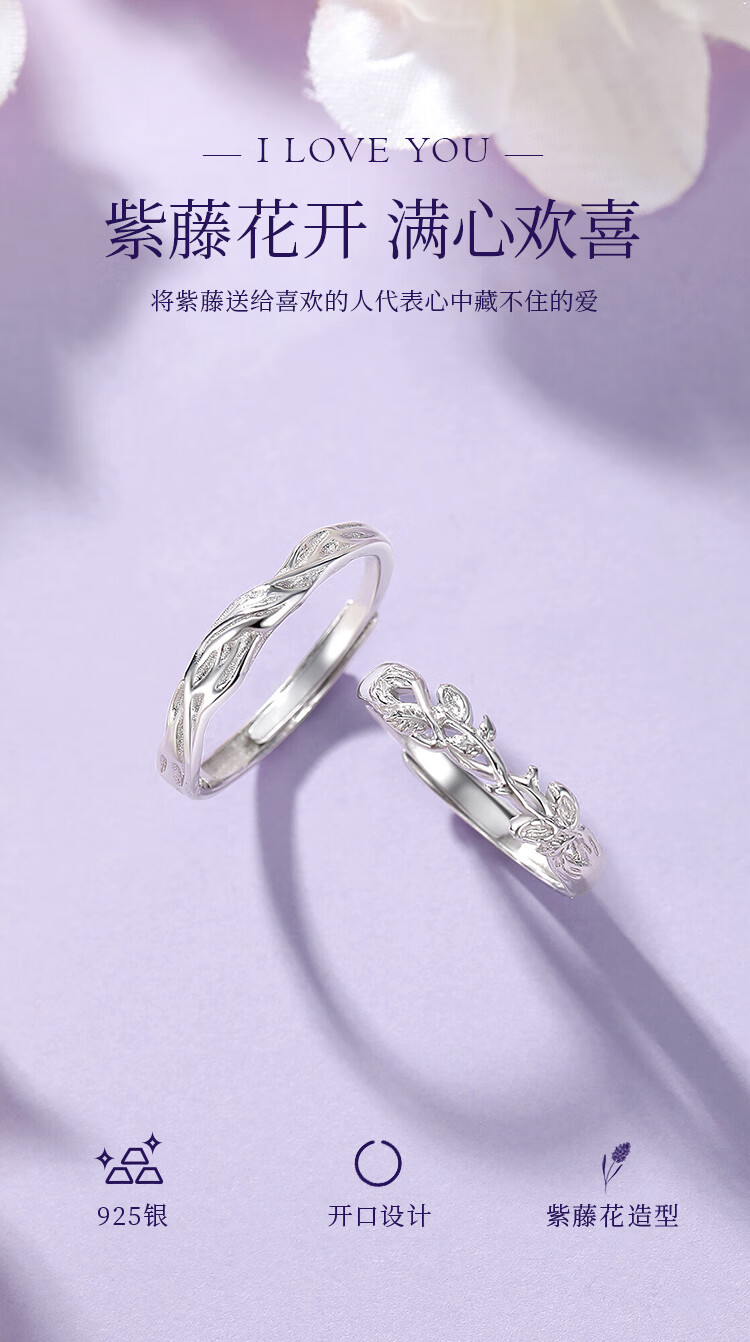唯一(Winy)叶影情环戒指s925银情侣对戒送女友生日礼物纪念意义