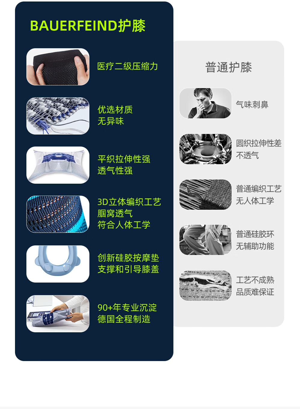保而防(BAUERFEIND) 护膝轻薄透气篮球跑步专业德国进口运动护具 新色上市 纯黑 XL
