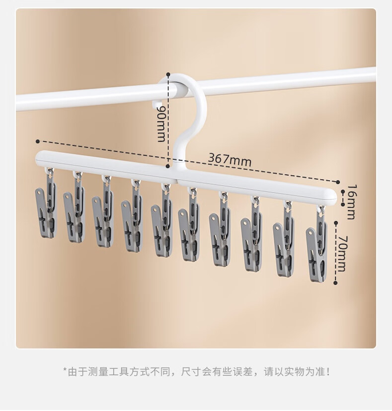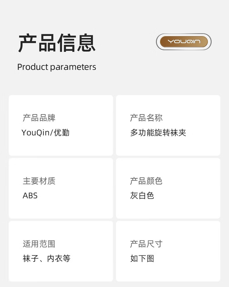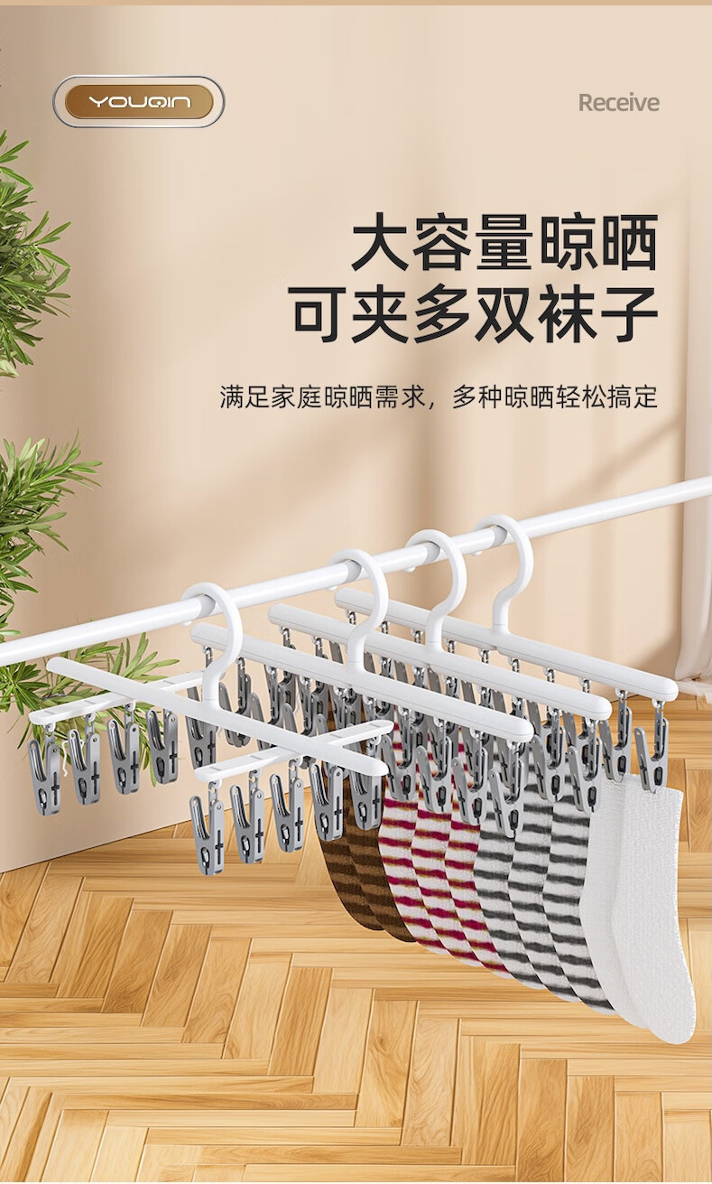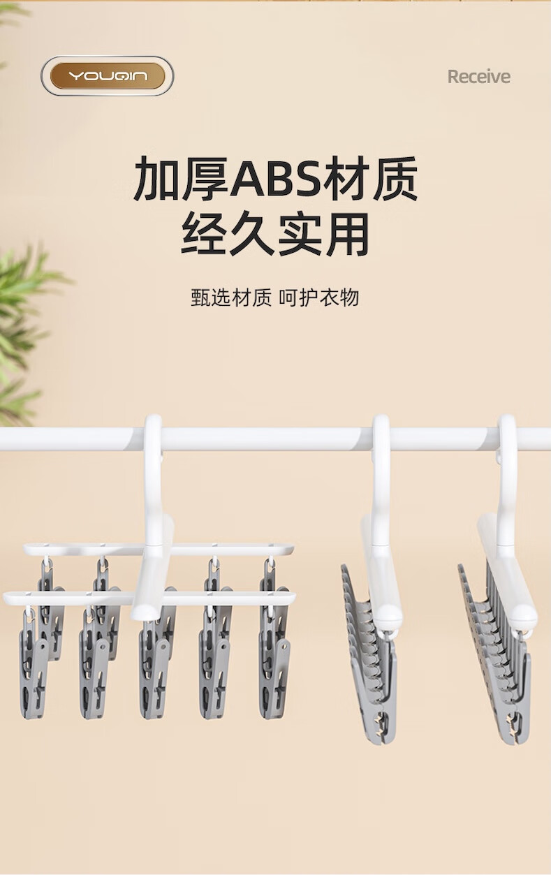 优勤(YOUQIN)多功能旋转袜夹家用阳台袜子晾衣架多夹子袜子夹便携内裤内衣夹子 灰白色多功能旋转袜夹【含10夹】 1个装