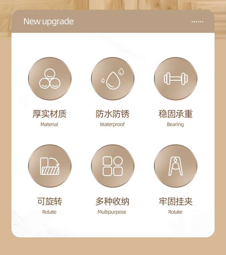 妃驰高颜值浴室吸盘旋转挂钩卫生间门后厨房免打孔真空无痕毛巾衣服钩 胡桃木色-吸盘挂钩【可旋转】