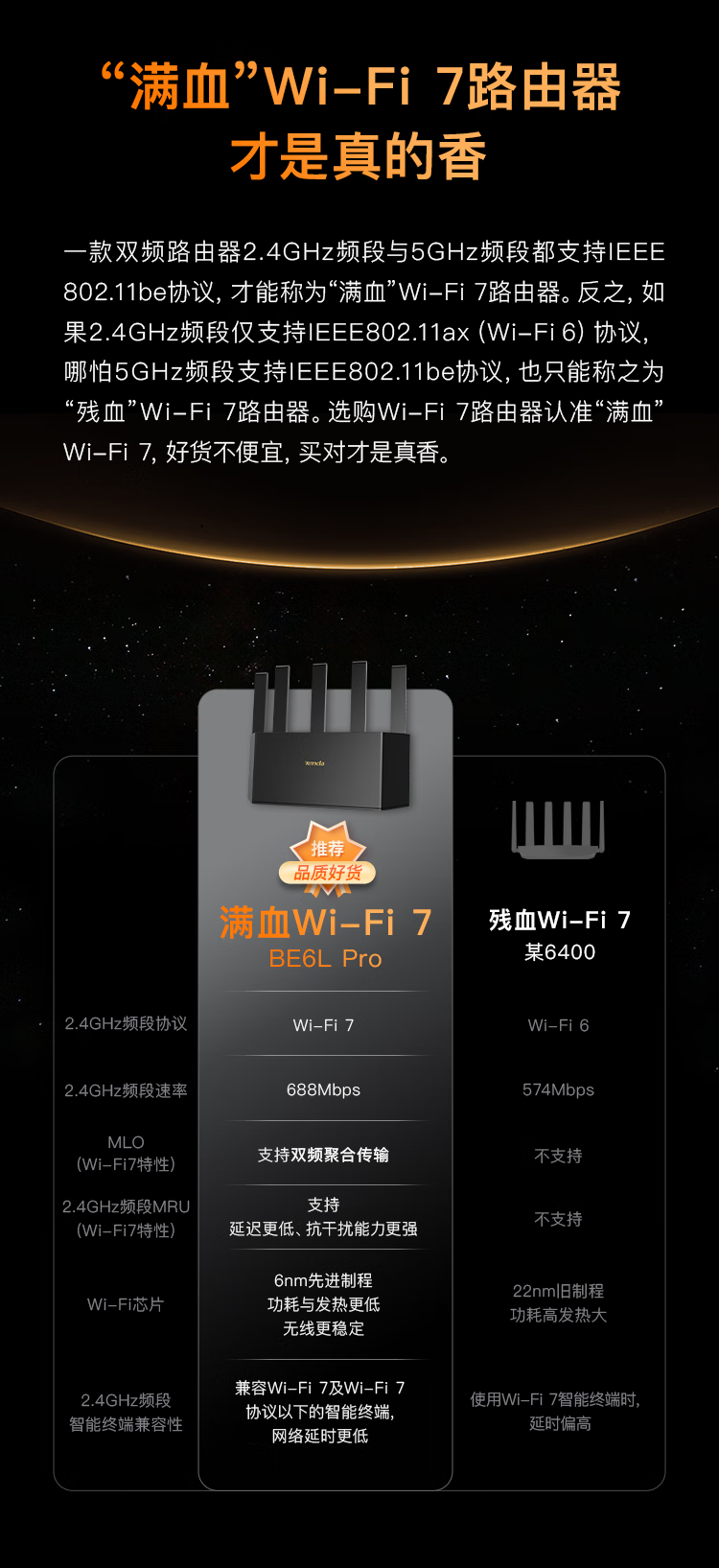 Tenda腾达路由器WiFi7【云霄BE5100】千兆穿墙王信号增强无线超强2.5g网口家用电竞放大器立式BE6L Pro