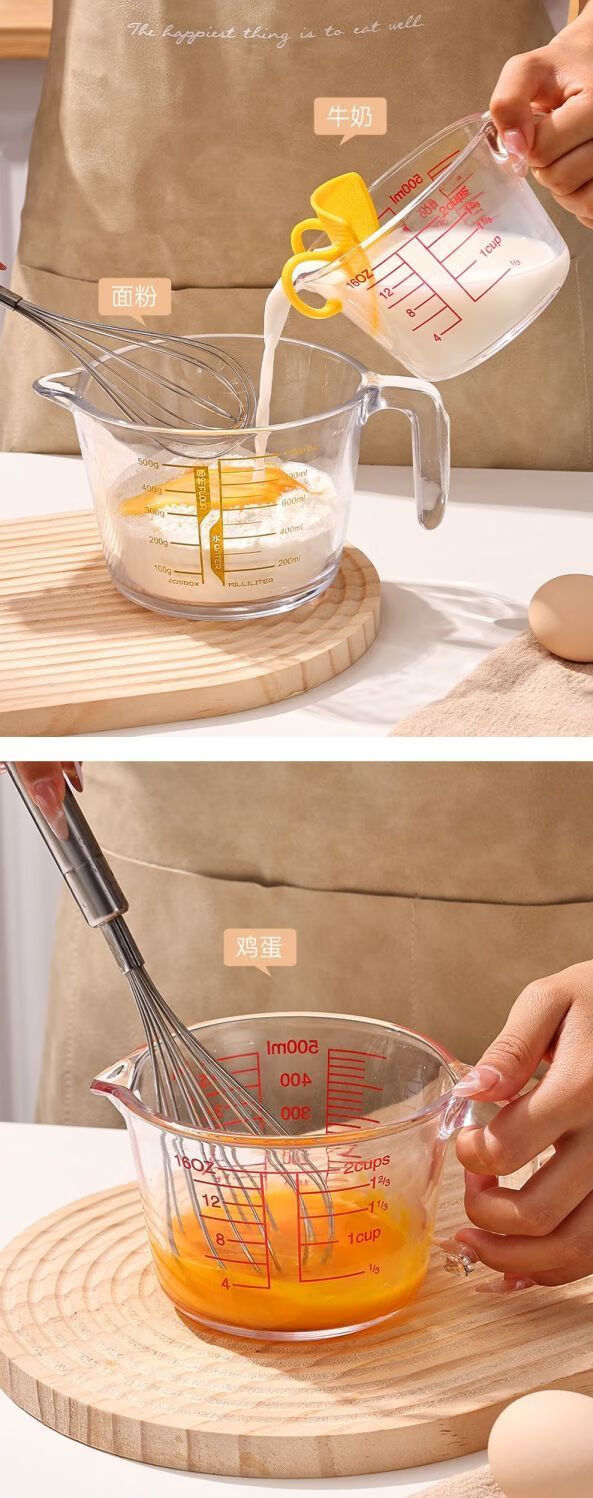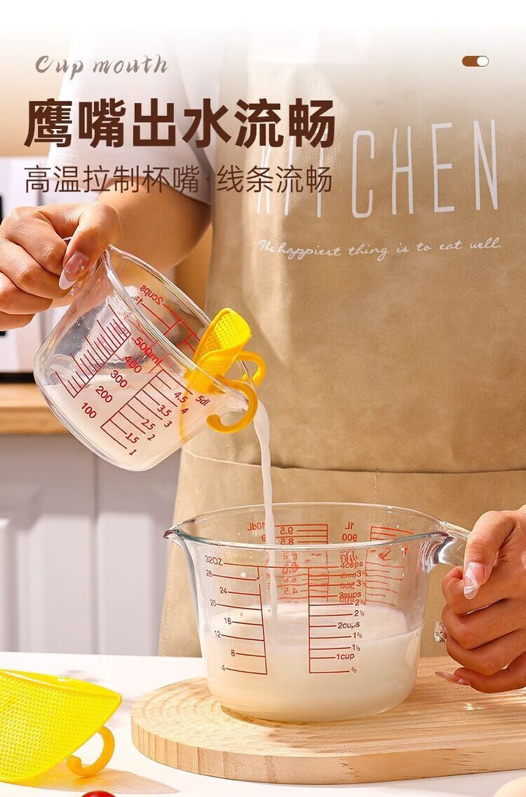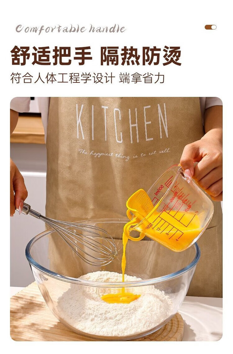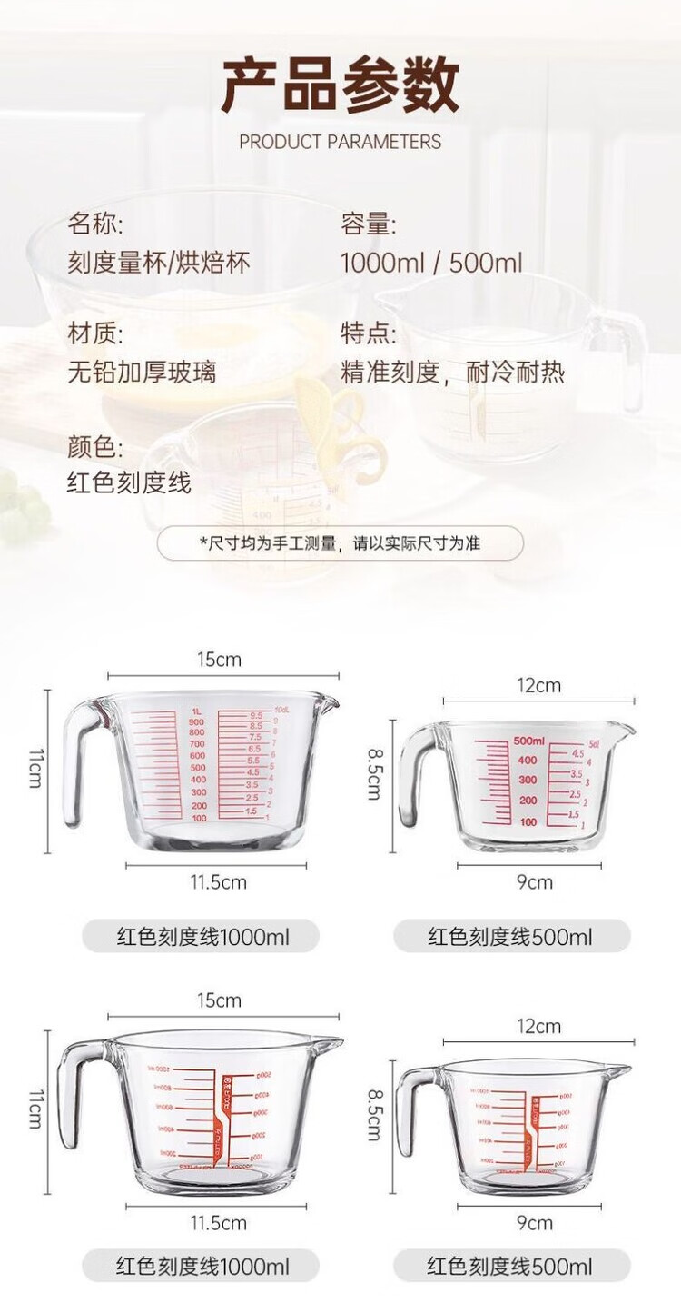 花沐禧大容量玻璃量杯带刻度把手毫升计量器家用耐温厨房牛奶烘焙打蛋碗 500毫升 刻度量杯+泡沫盒