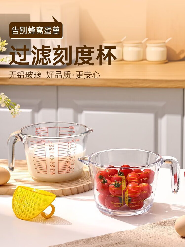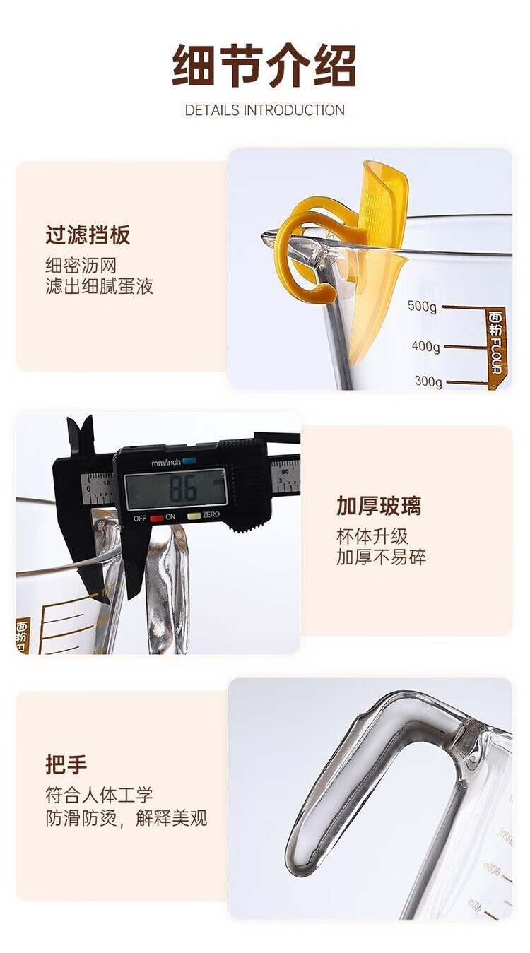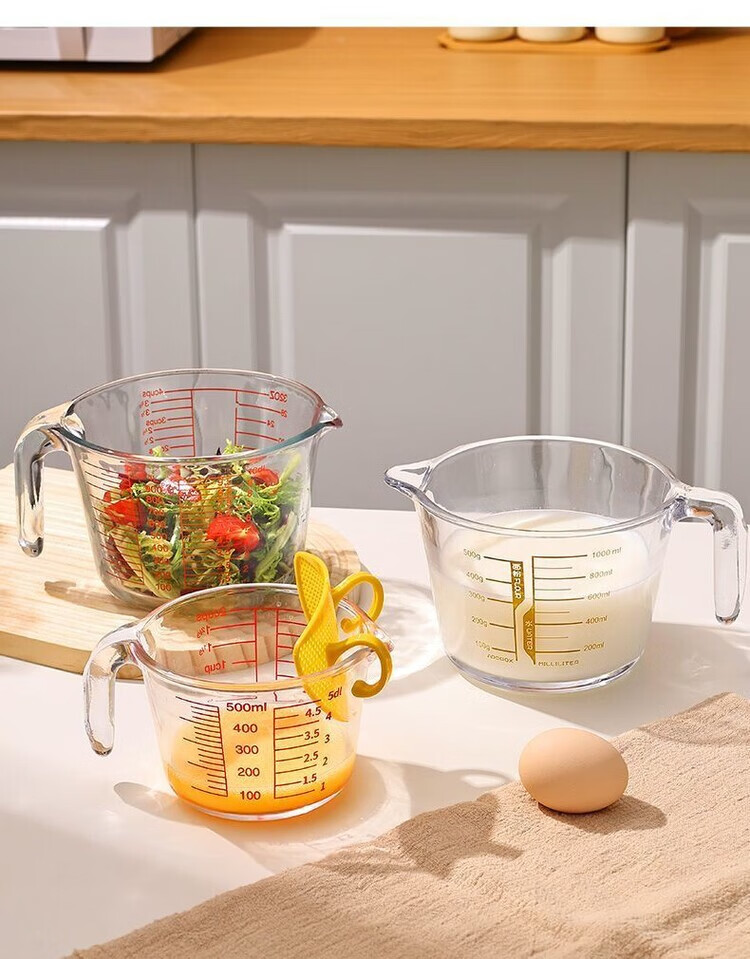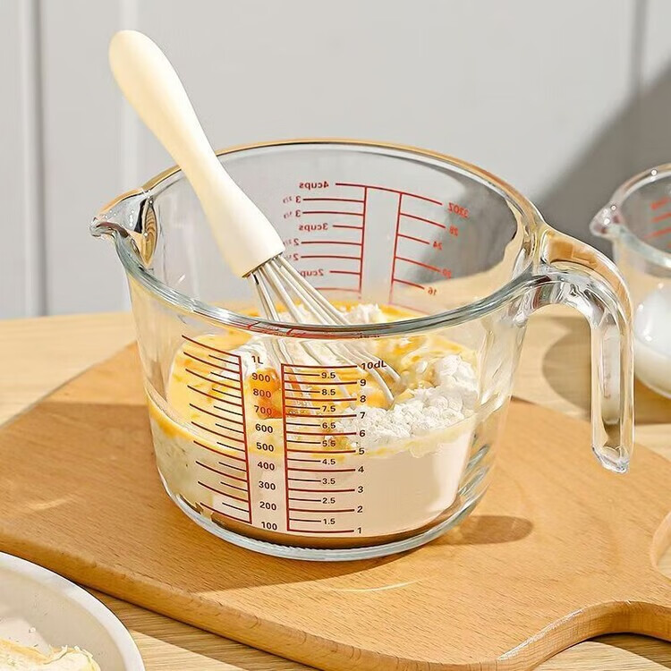 花沐禧大容量玻璃量杯带刻度把手毫升计量器家用耐温厨房牛奶烘焙打蛋碗 500毫升 刻度量杯+泡沫盒