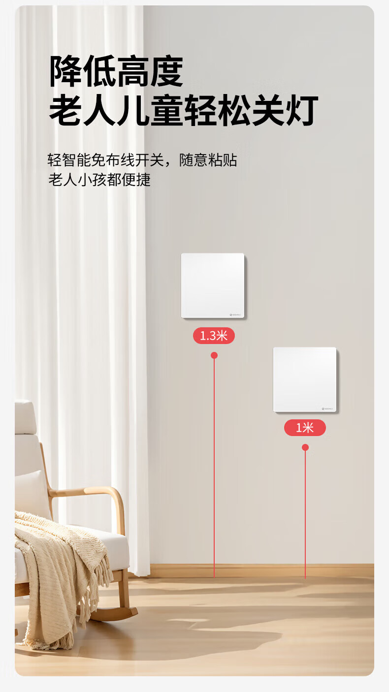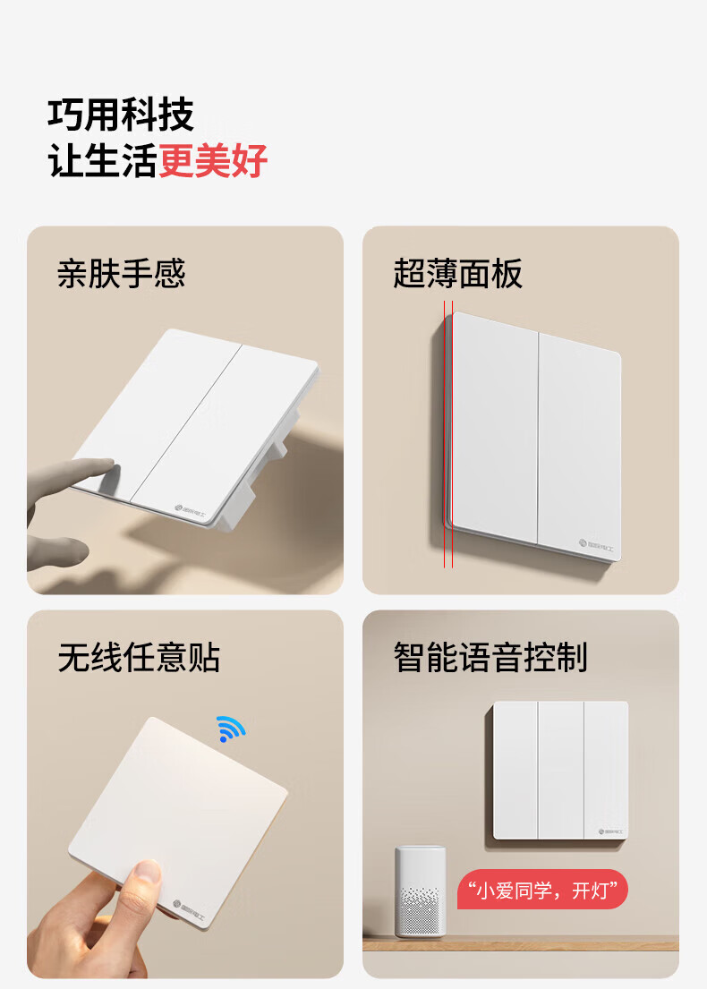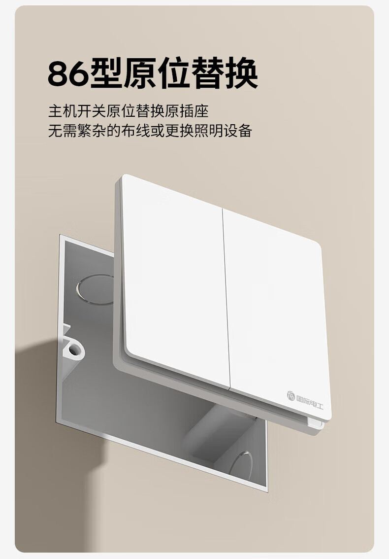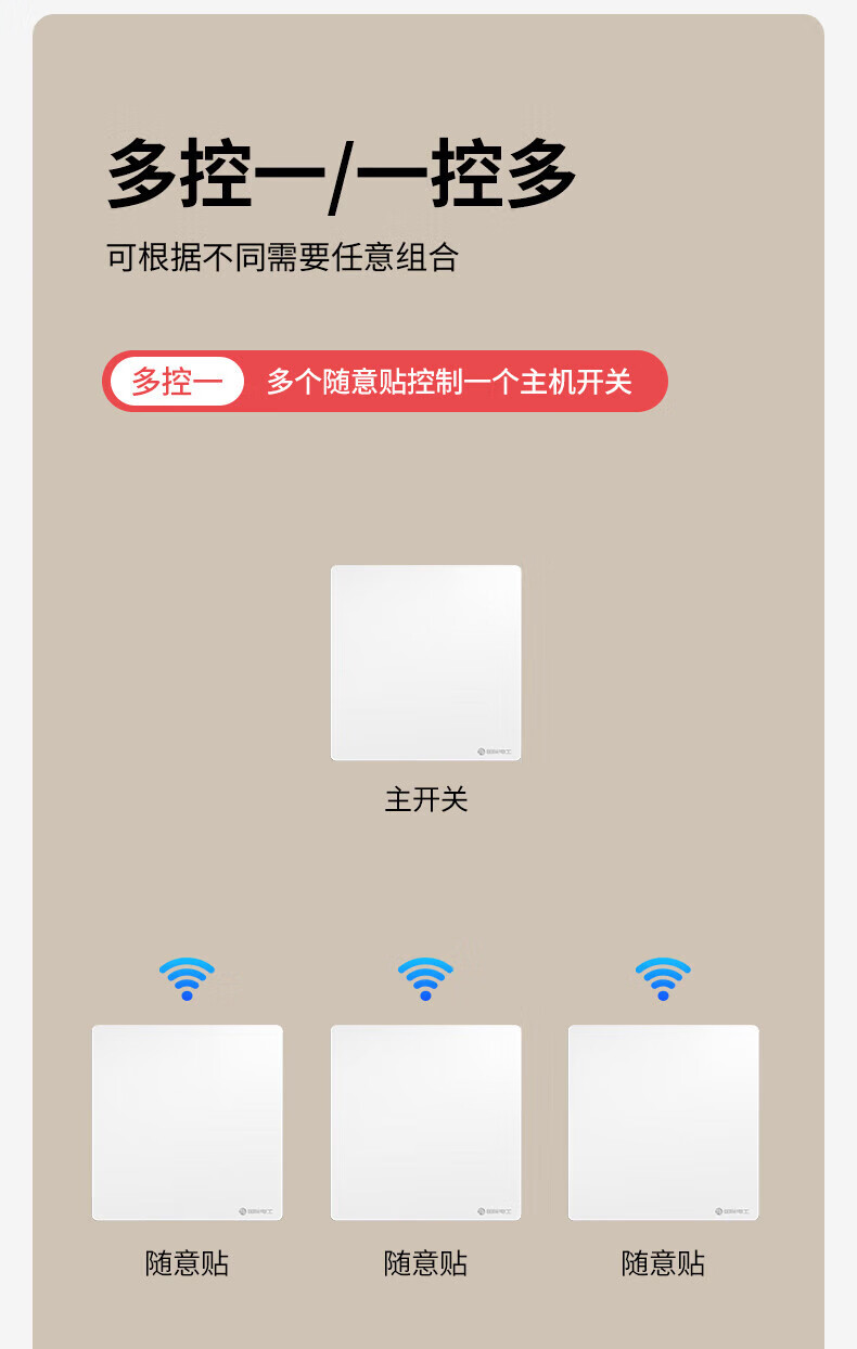 国际电工(FDD)无线智能遥控开关已接入米家app支持小爱同学远程全屋语音控制 奶油白-随意贴一开【需搭配主机】