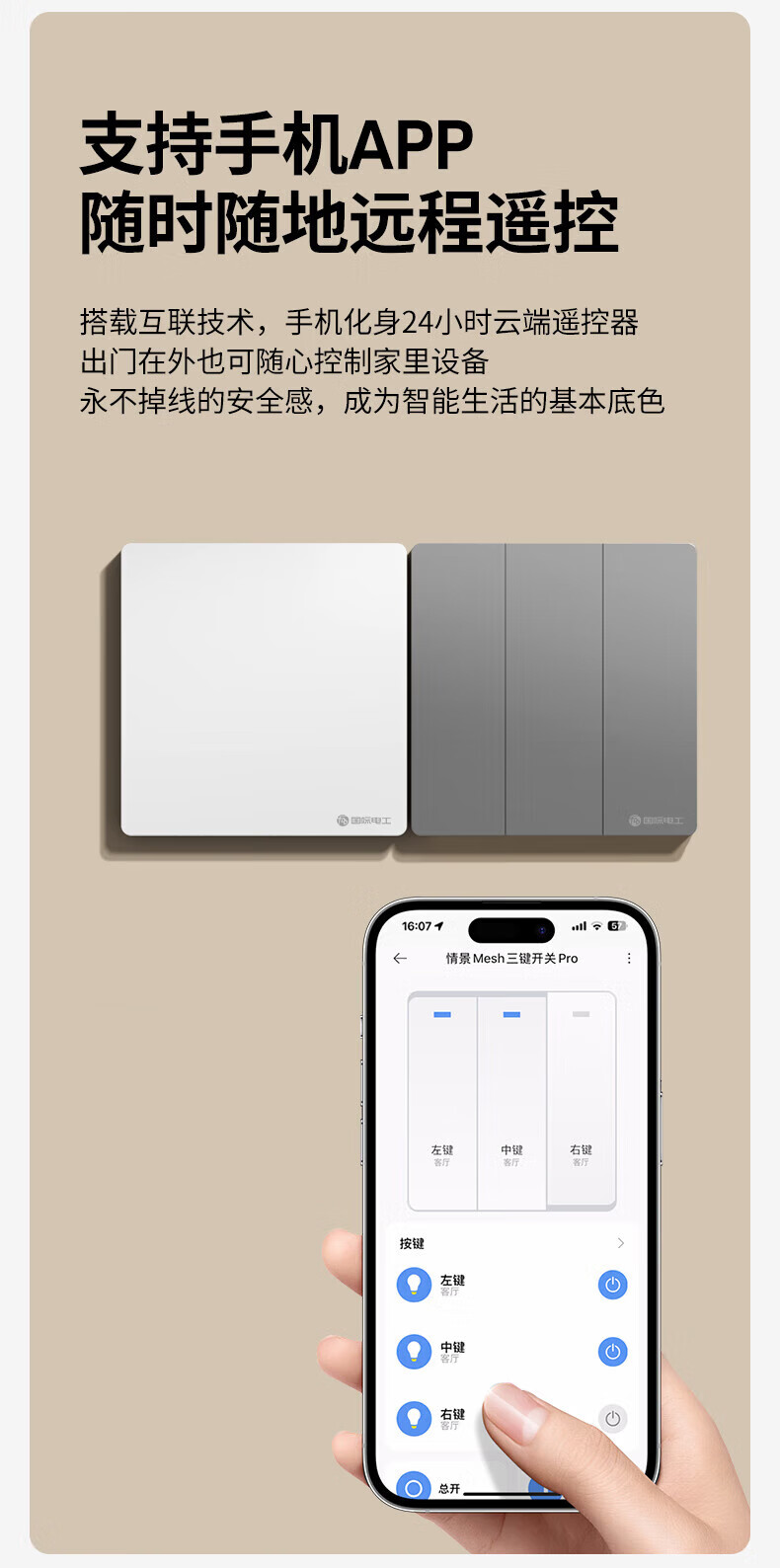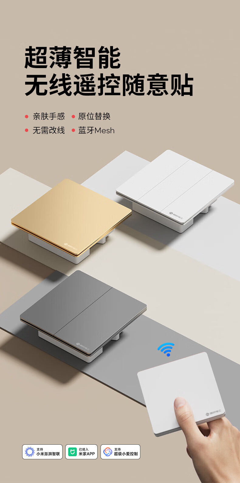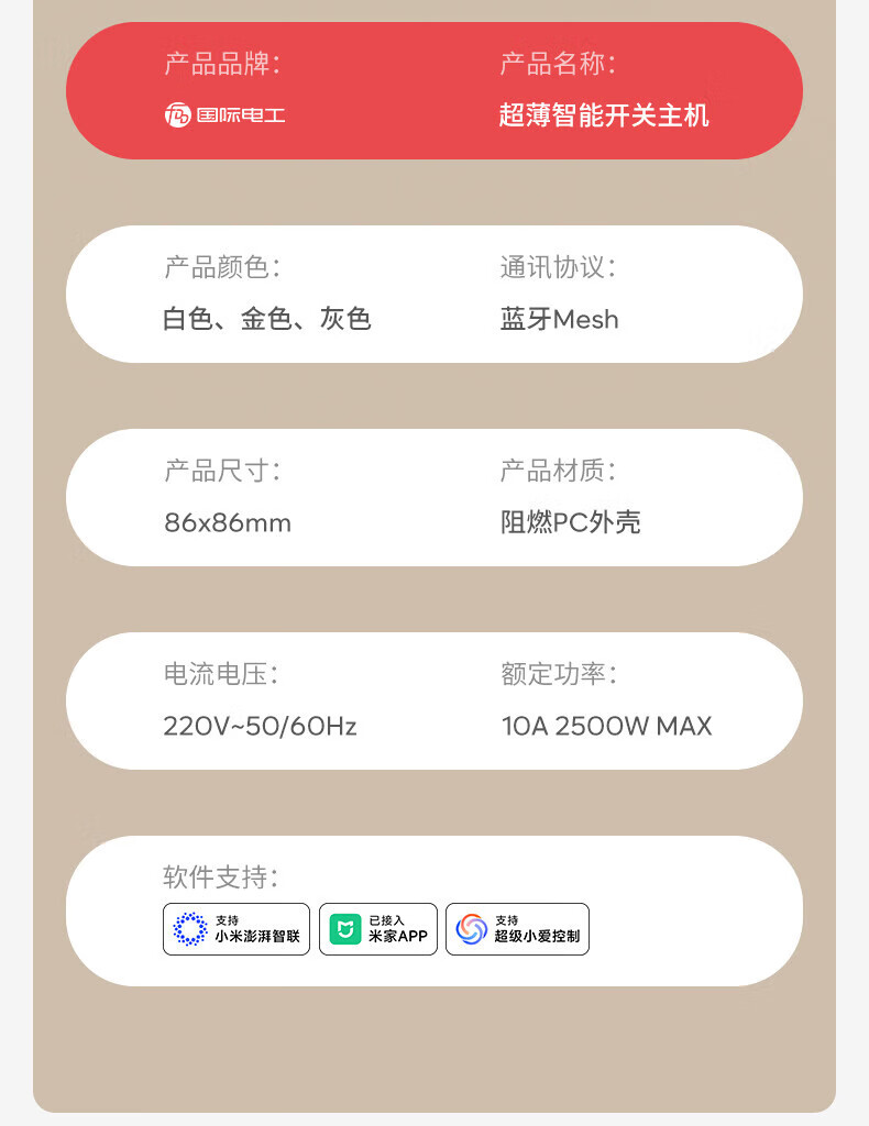 国际电工(FDD)无线智能遥控开关已接入米家app支持小爱同学远程全屋语音控制 奶油白-随意贴一开【需搭配主机】