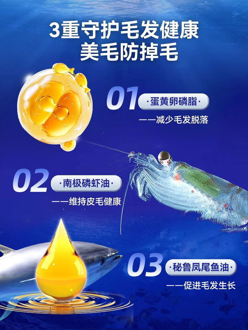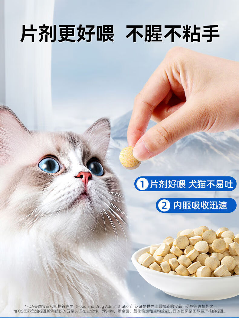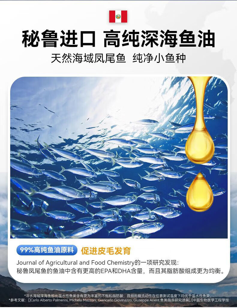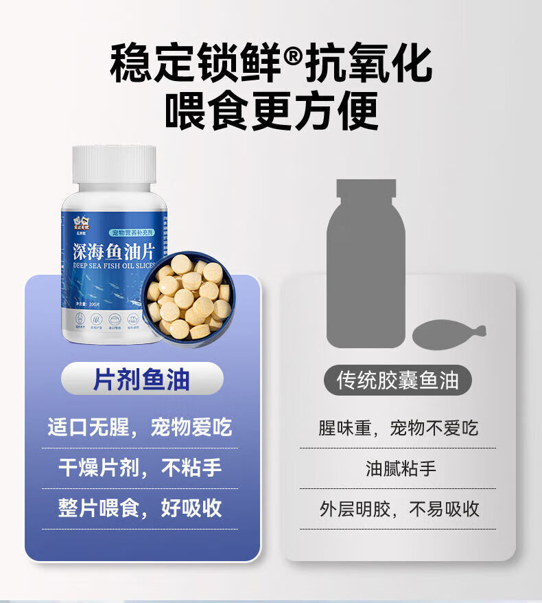 瓜洲牧深海鱼油猫咪狗狗专用宠物营养补充吃鱼油片猫用犬通用 A款一瓶装