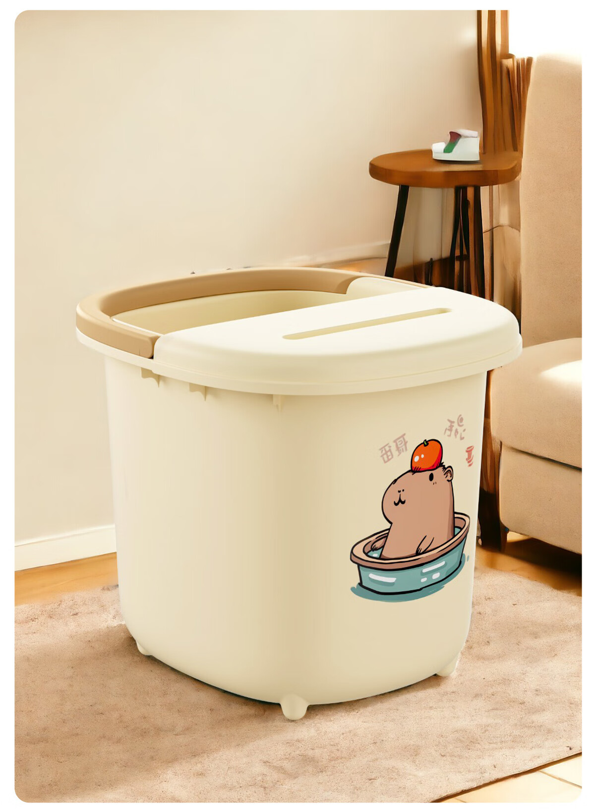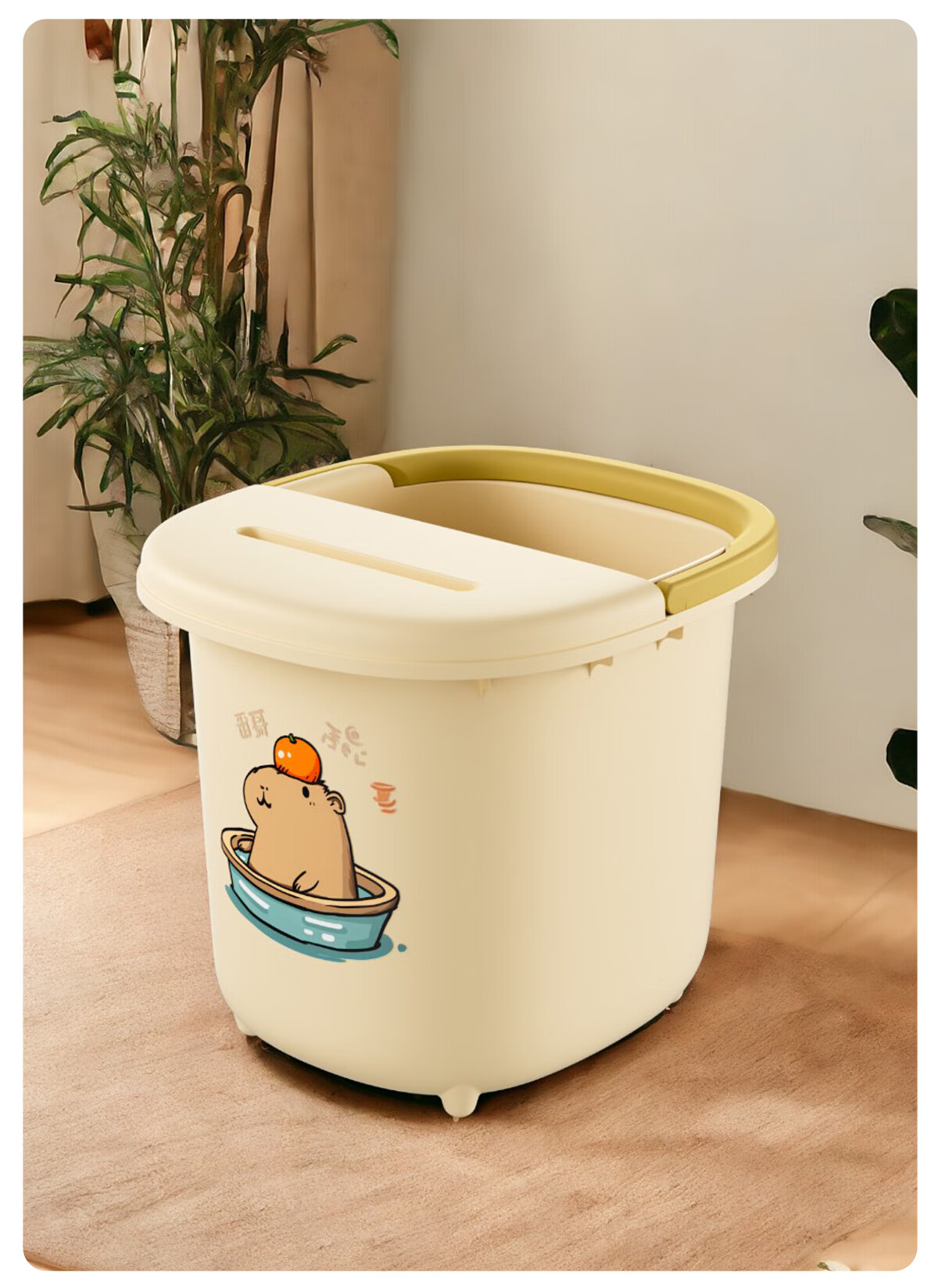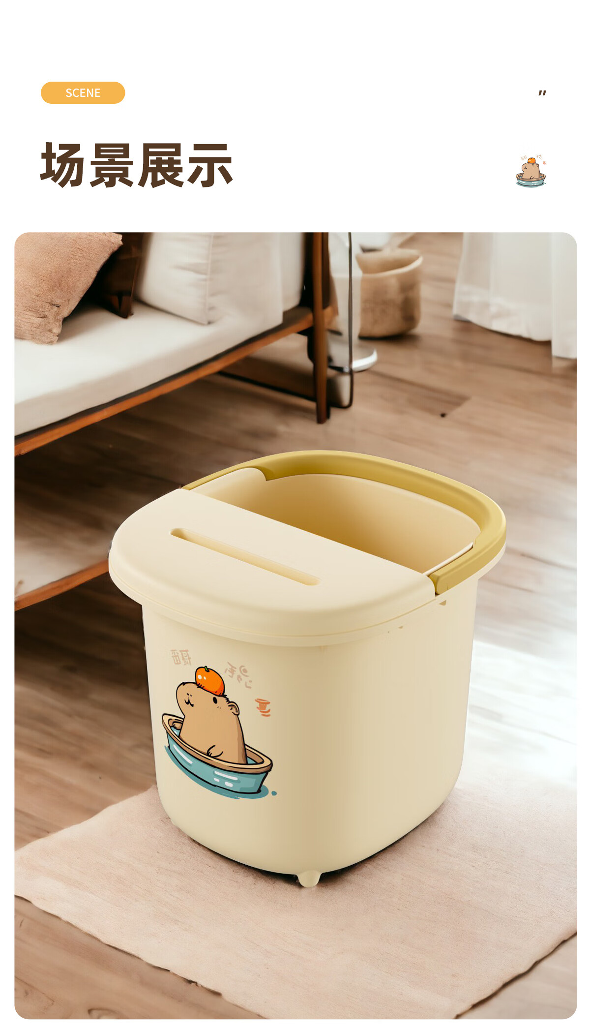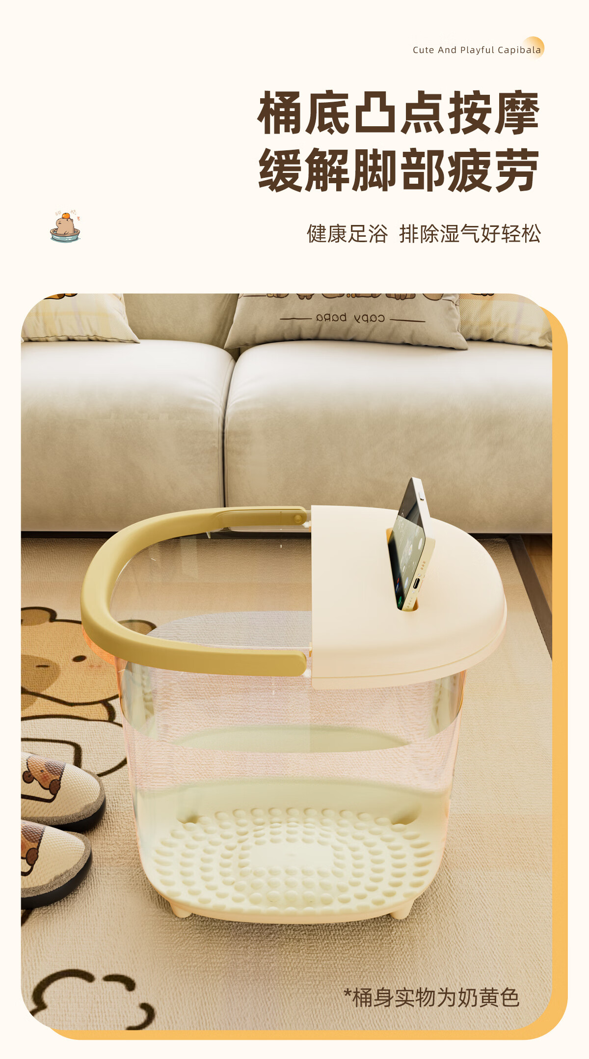 加高可泡脚桶家用高深洗脚盆过小腿保温女士养生神器儿童宿舍专用 奶油黄 萌趣卡皮巴拉