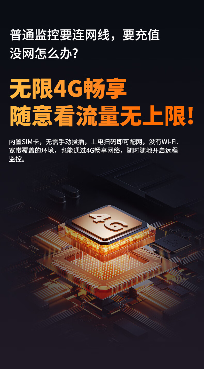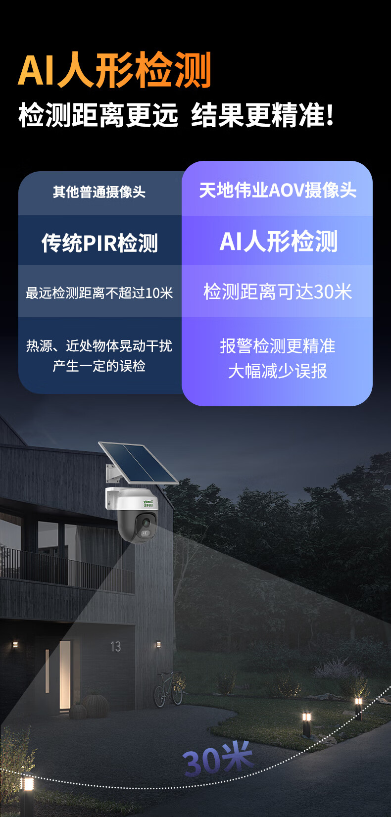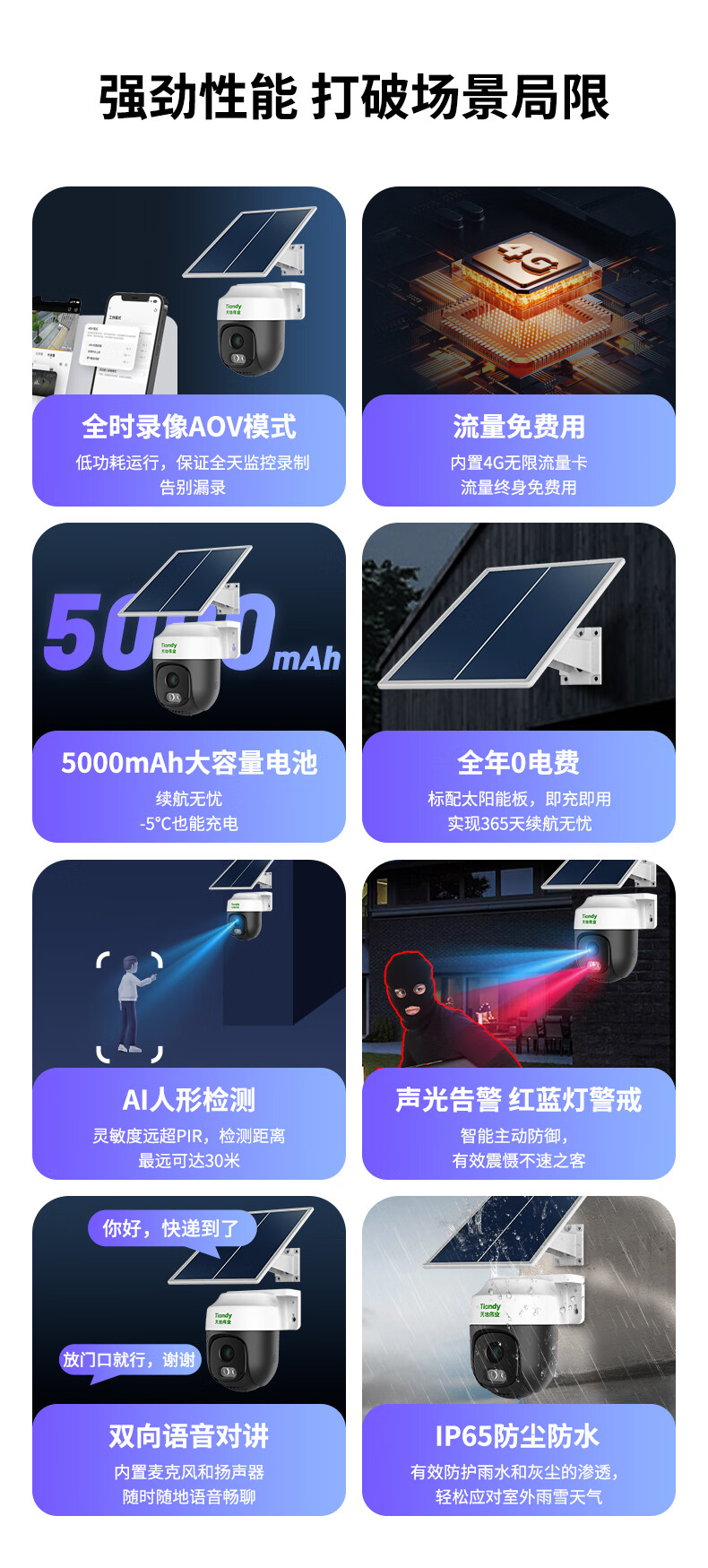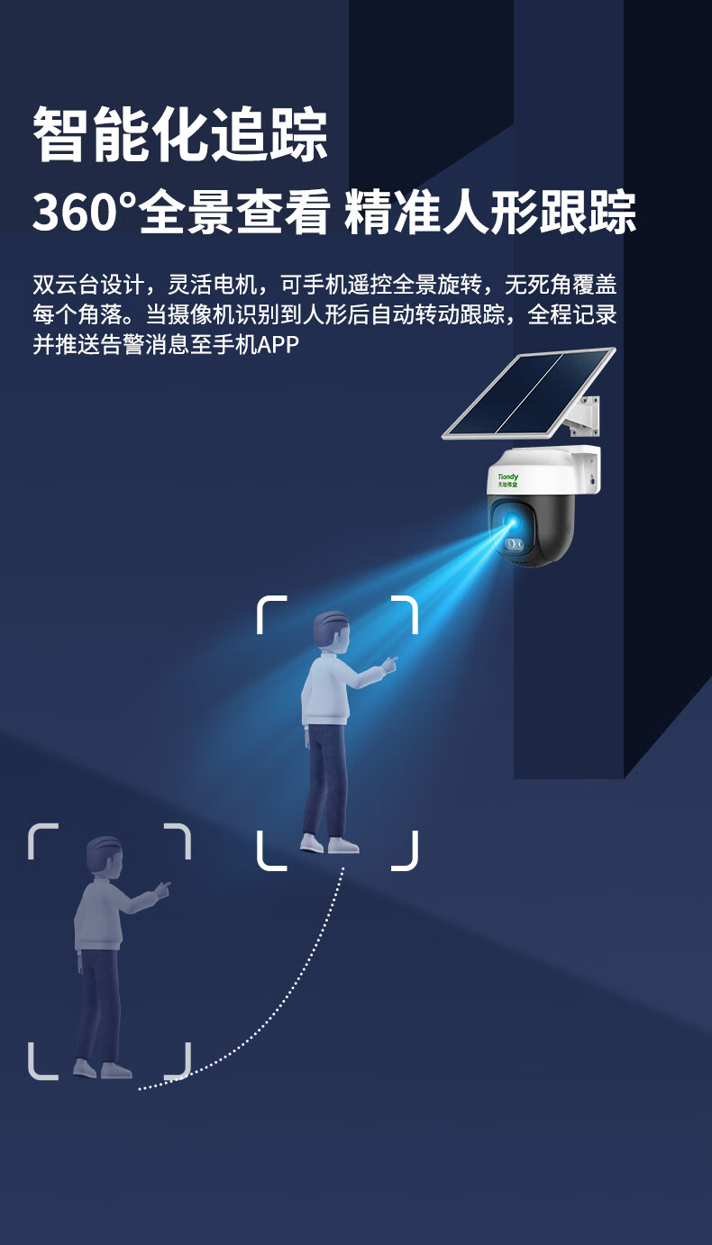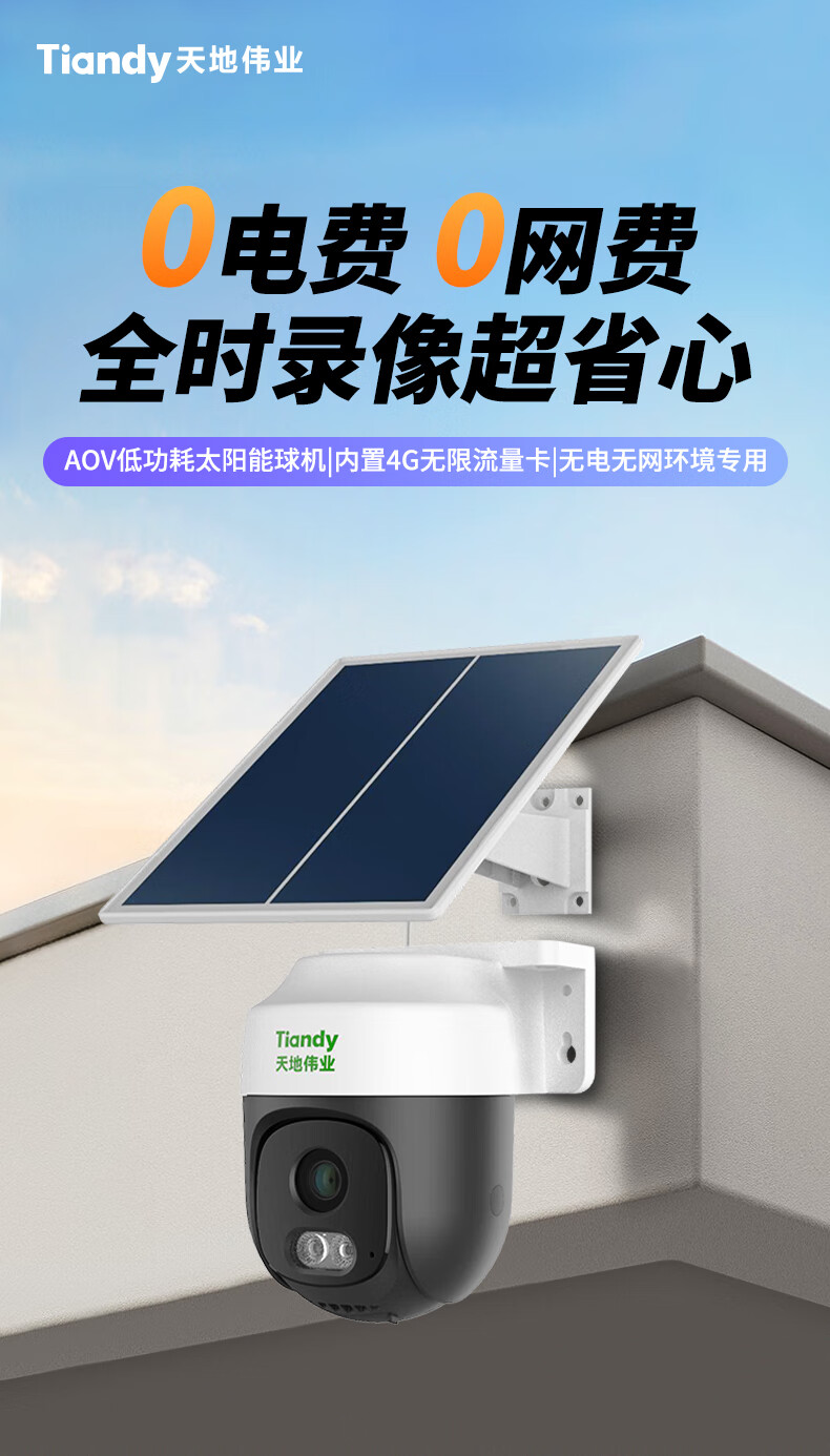 天地伟业太阳能家用监控摄像头400万 4G无限流 室外监控器360度无死角 手机远程全景全彩夜视追踪+64G卡