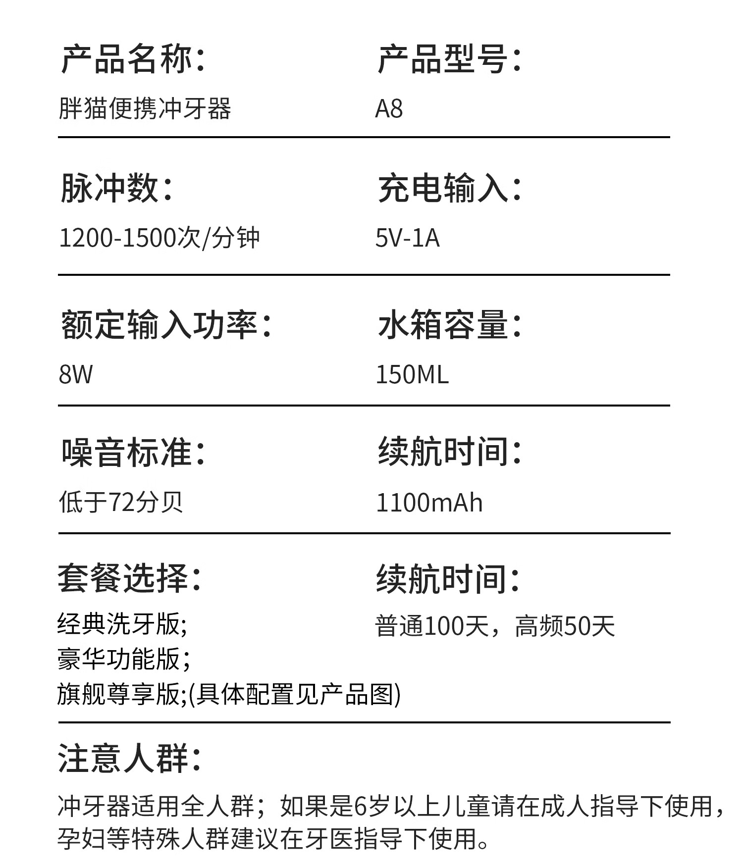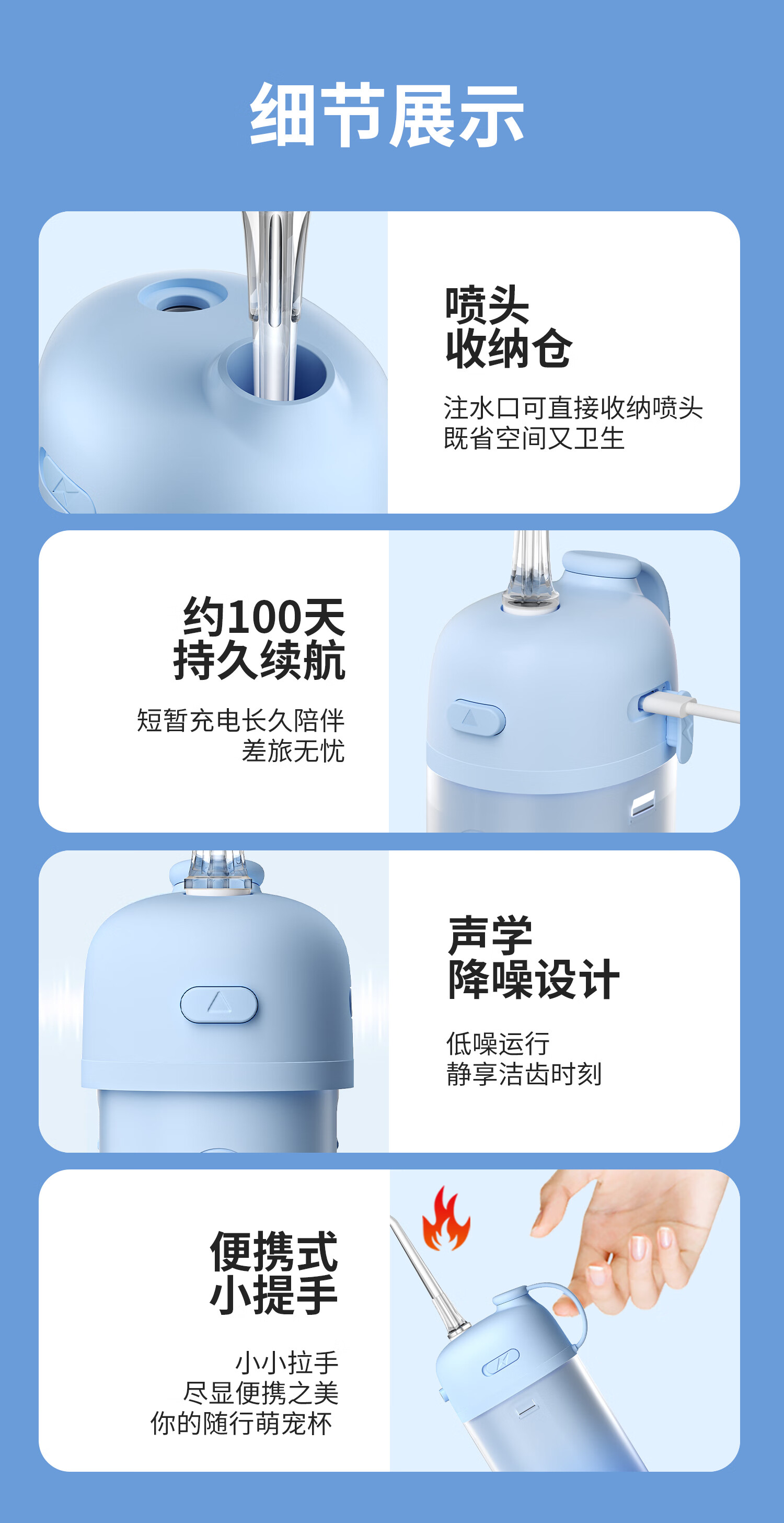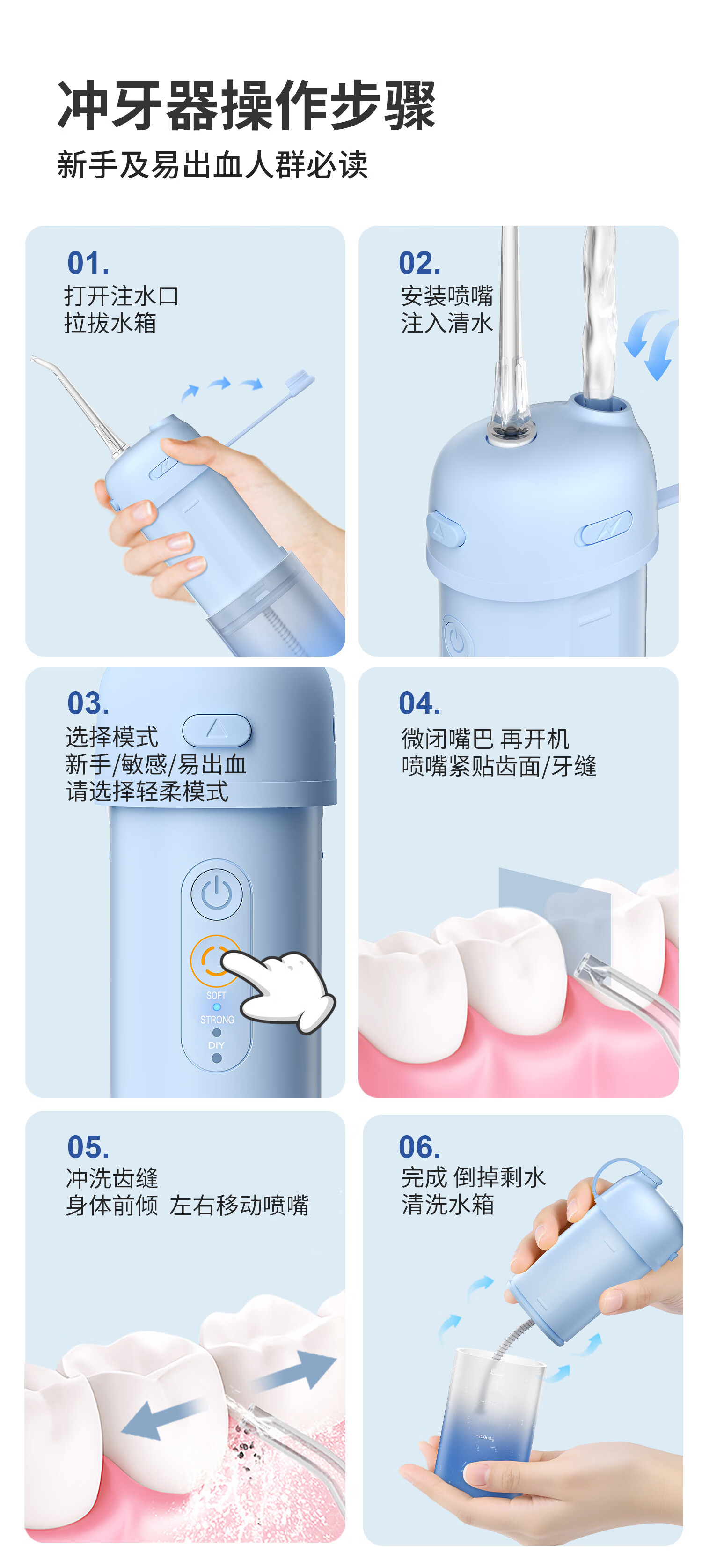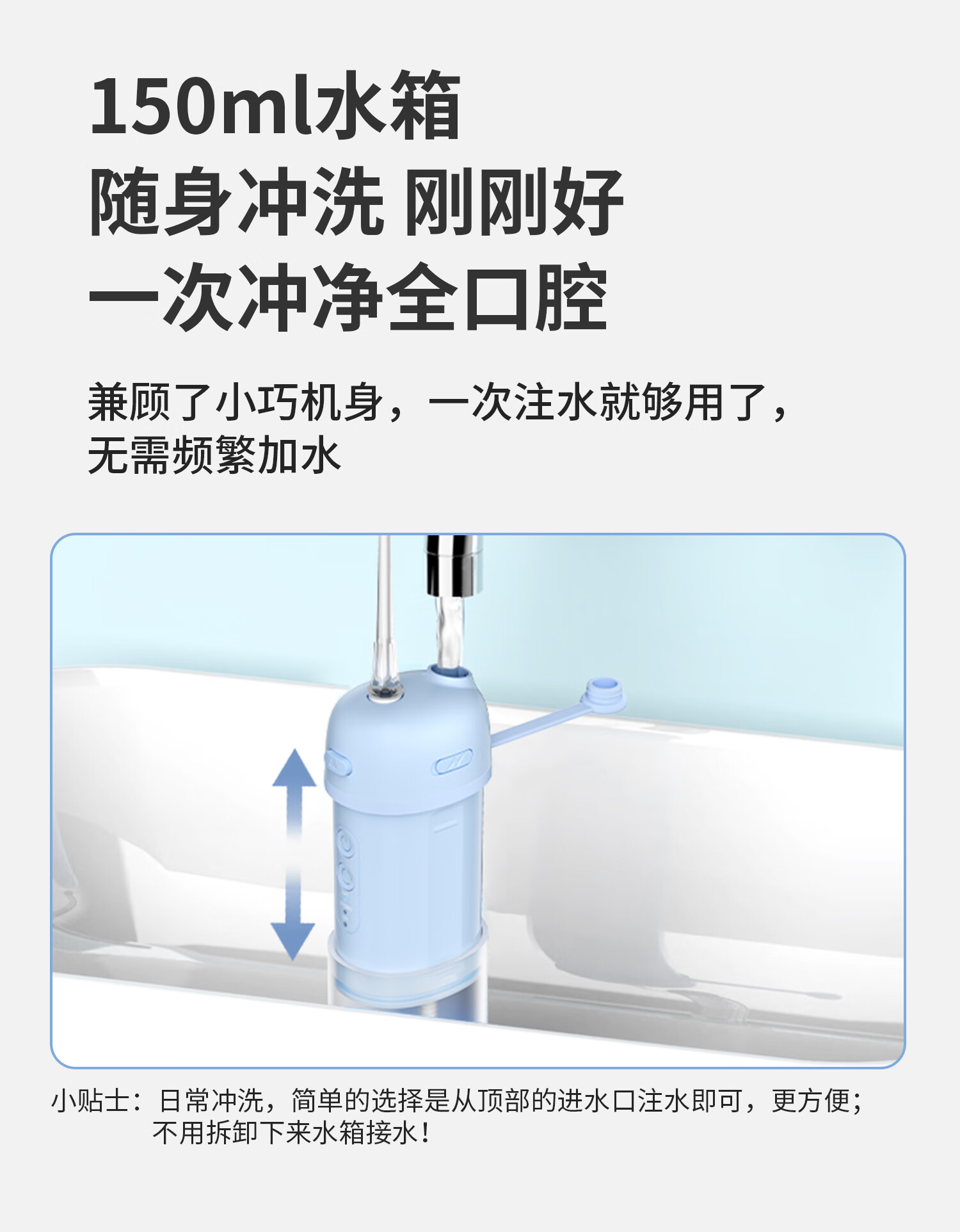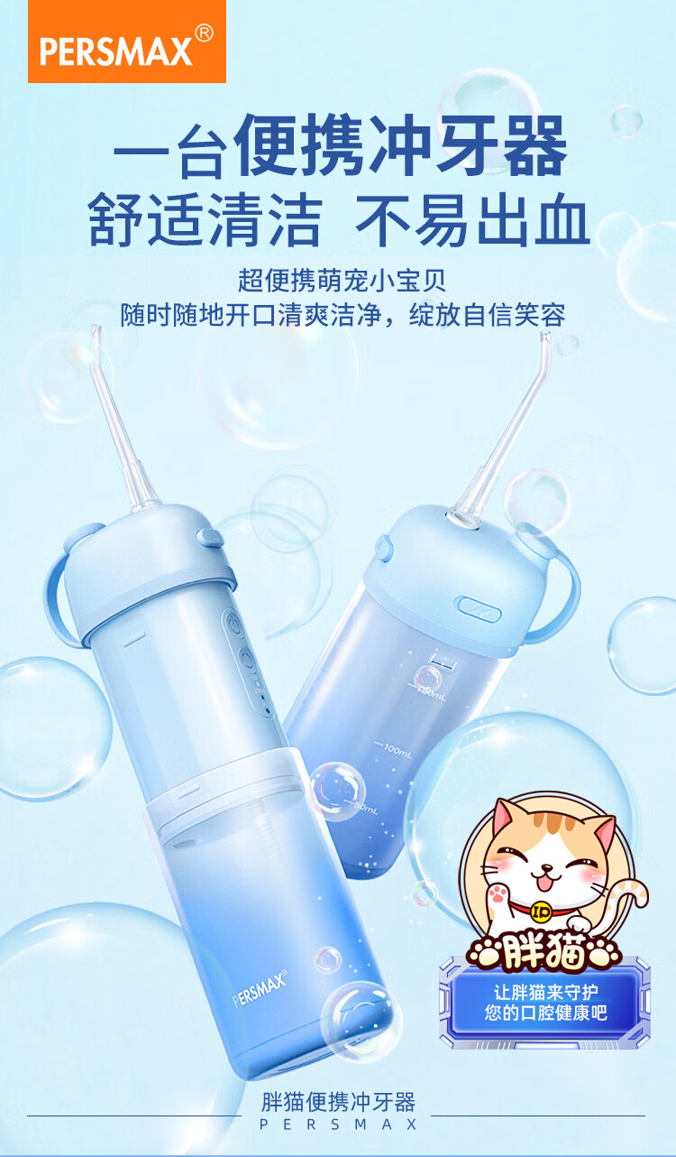胖猫便携式冲牙器迷你洗牙机大人小孩通用3-6-12-18岁儿童正畸牙套水牙线360度口腔清洁矫正牙齿冲洗器 冲牙丨基础款丨共2个喷嘴丨清洁口腔 净澈牙缝
