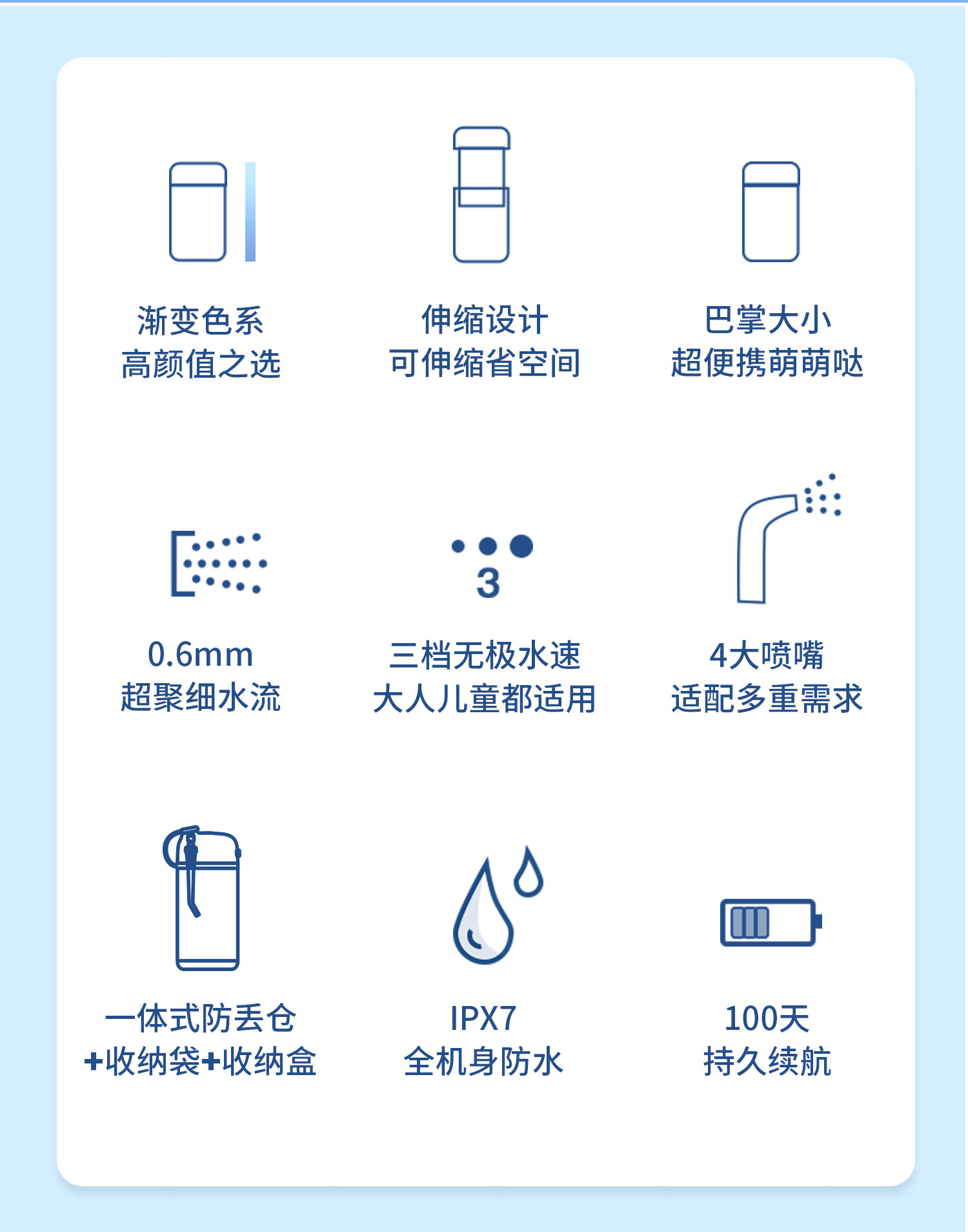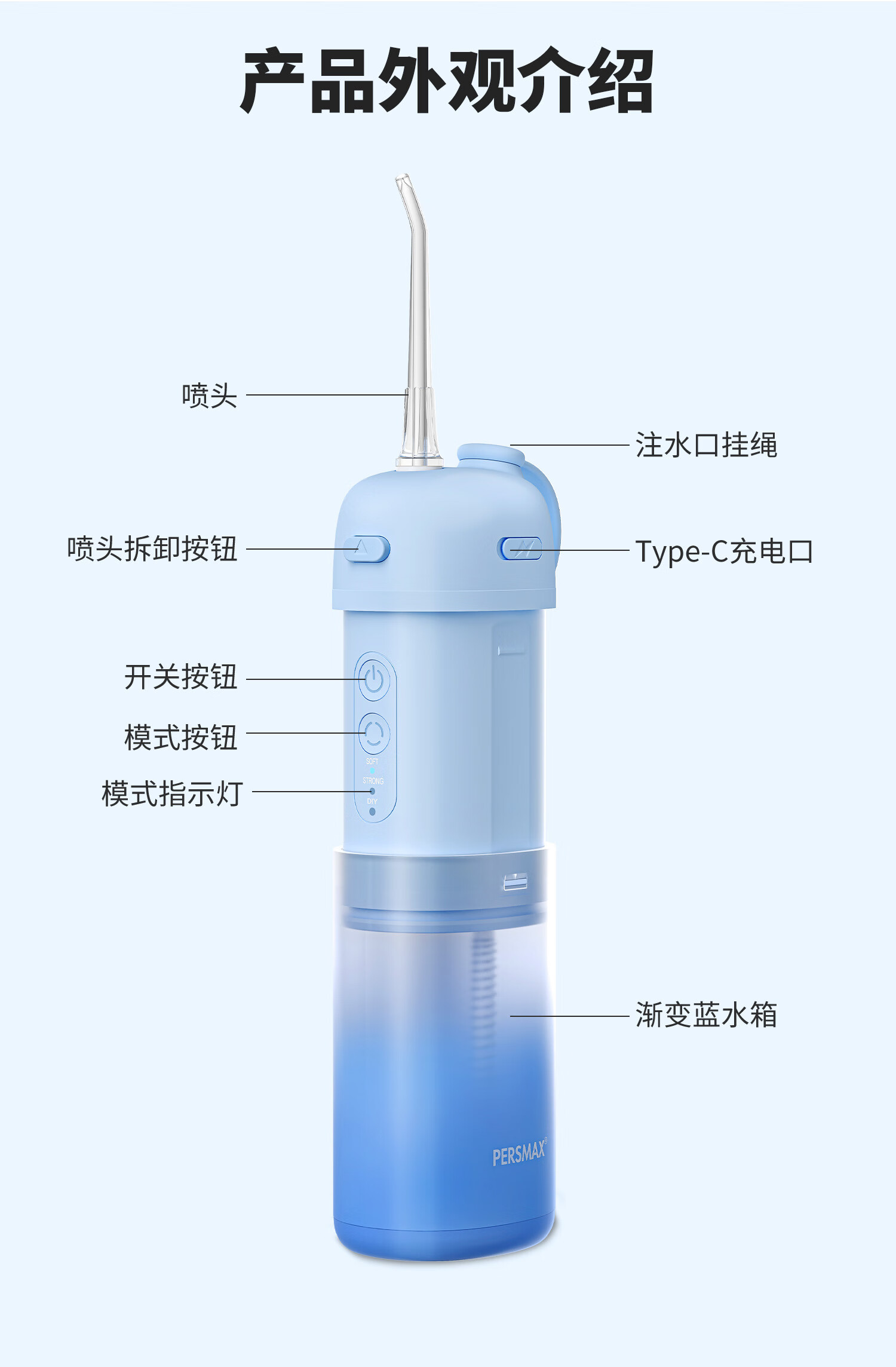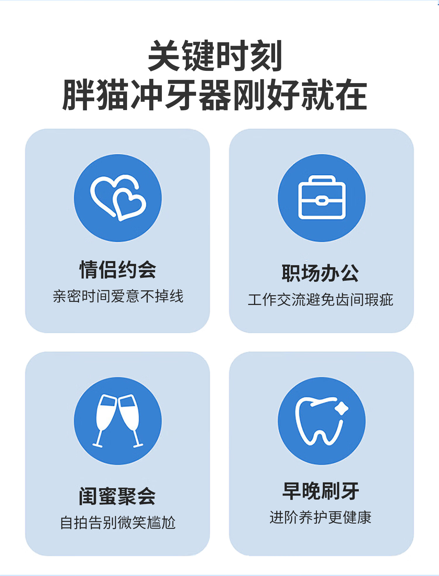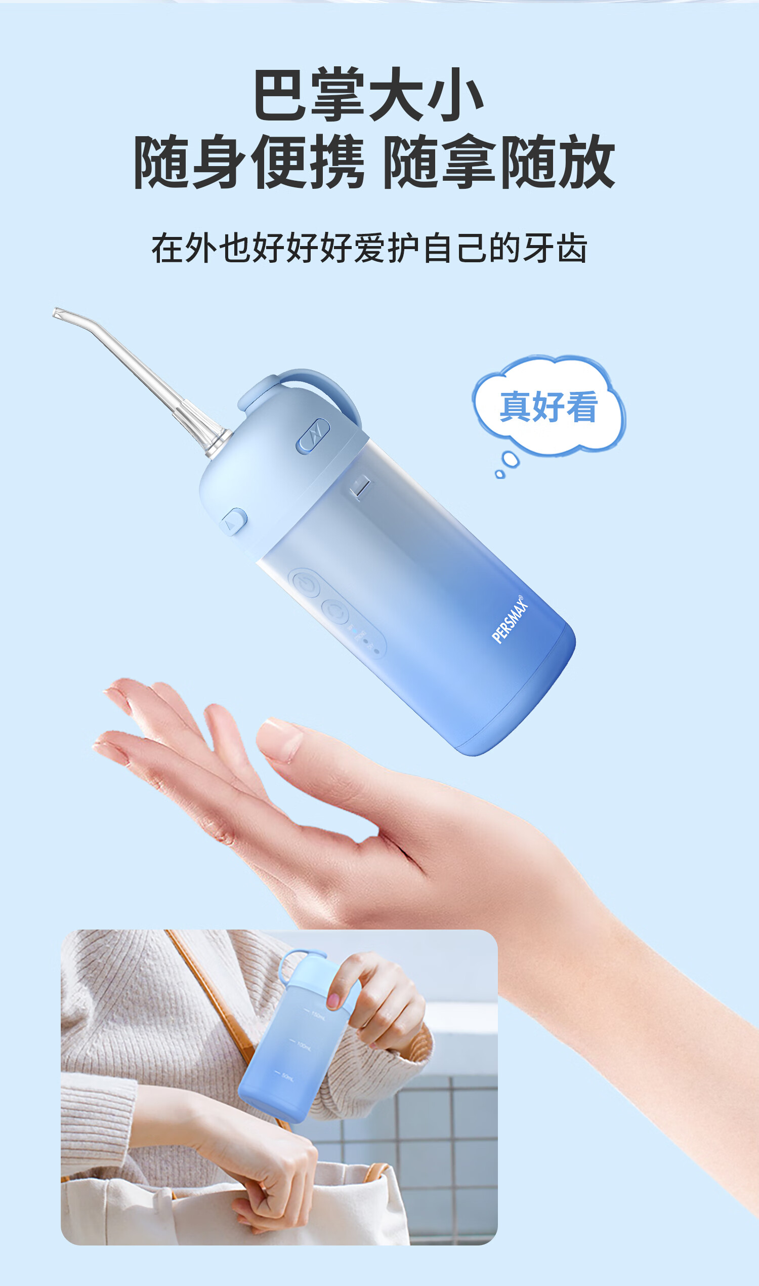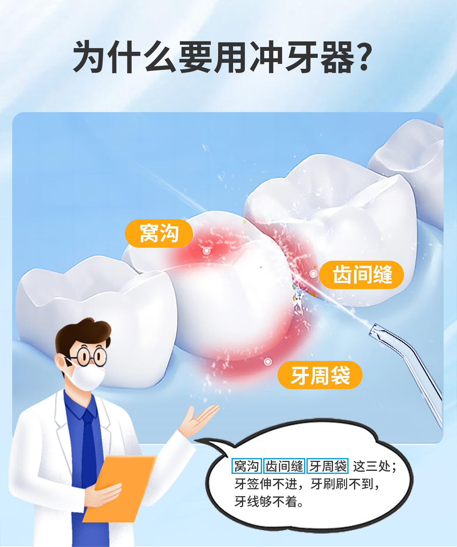 胖猫便携式冲牙器迷你洗牙机大人小孩通用3-6-12-18岁儿童正畸牙套水牙线360度口腔清洁矫正牙齿冲洗器 冲牙丨基础款丨共2个喷嘴丨清洁口腔 净澈牙缝