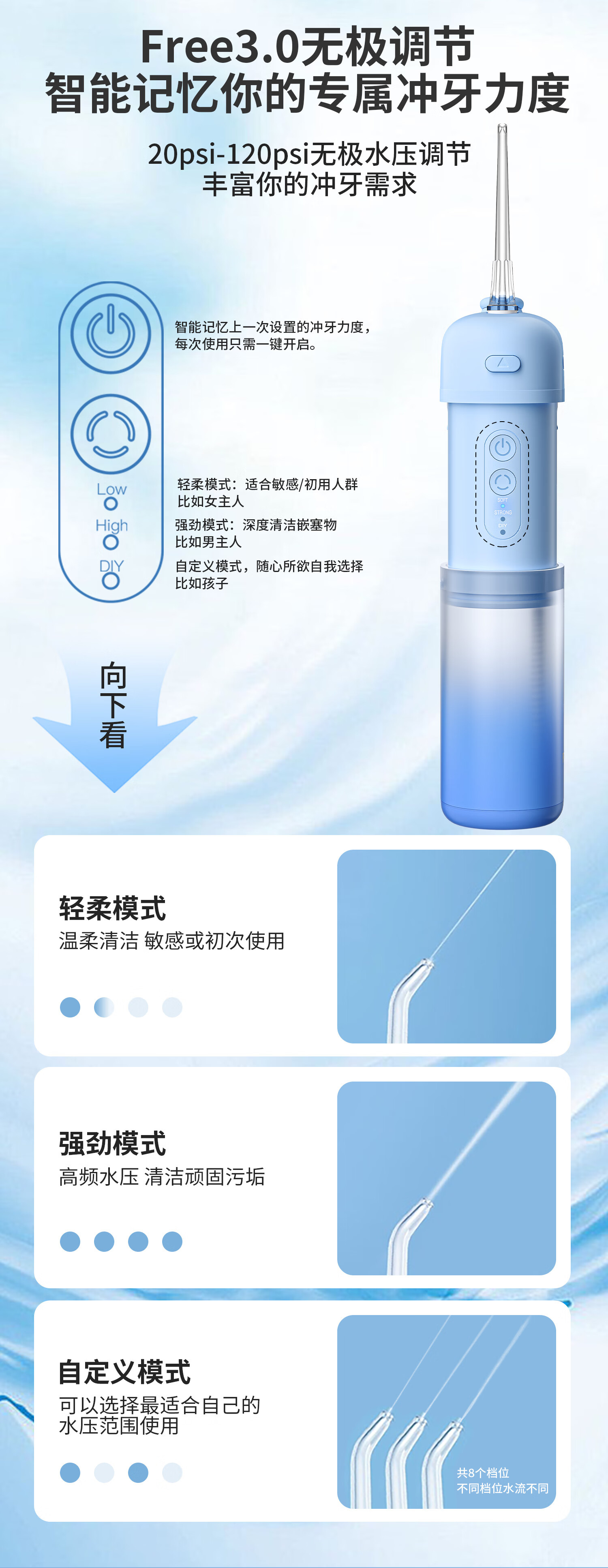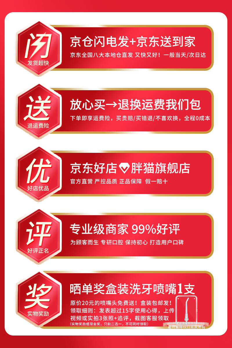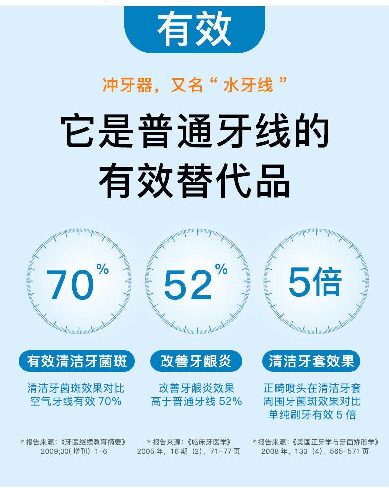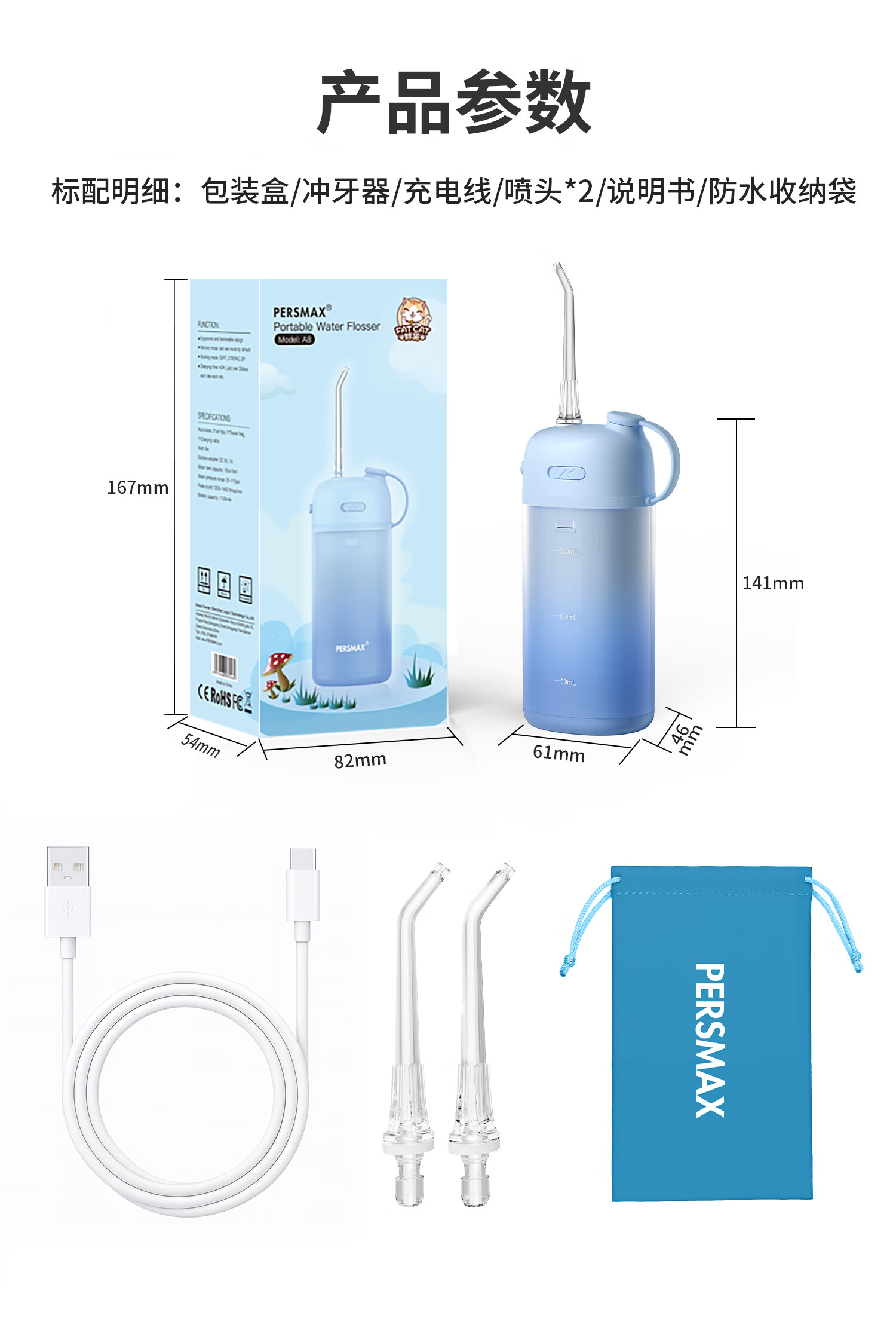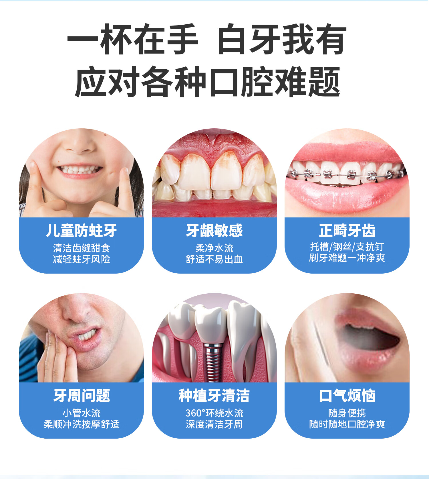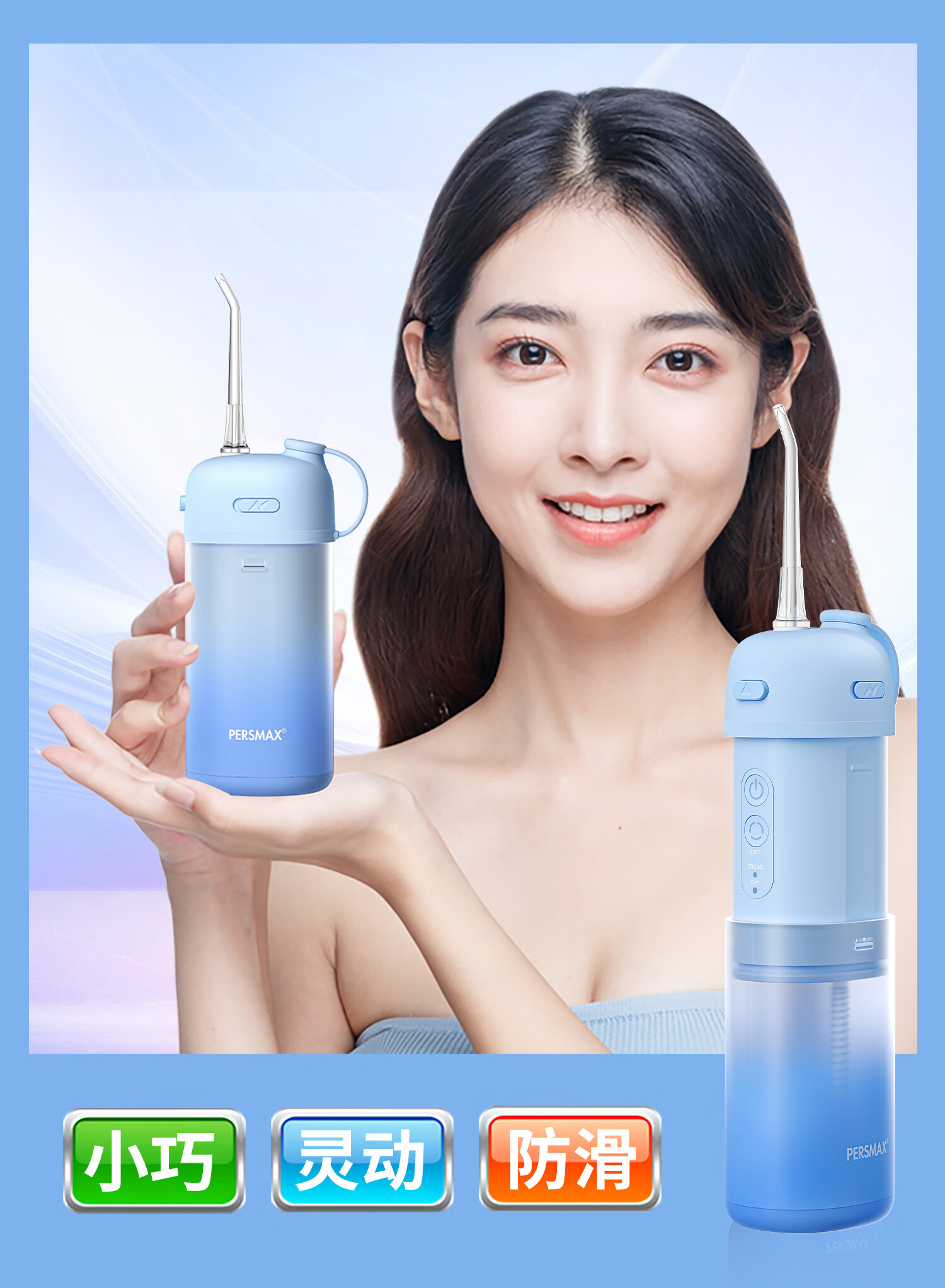 胖猫便携式冲牙器迷你洗牙机大人小孩通用3-6-12-18岁儿童正畸牙套水牙线360度口腔清洁矫正牙齿冲洗器 冲牙丨基础款丨共2个喷嘴丨清洁口腔 净澈牙缝