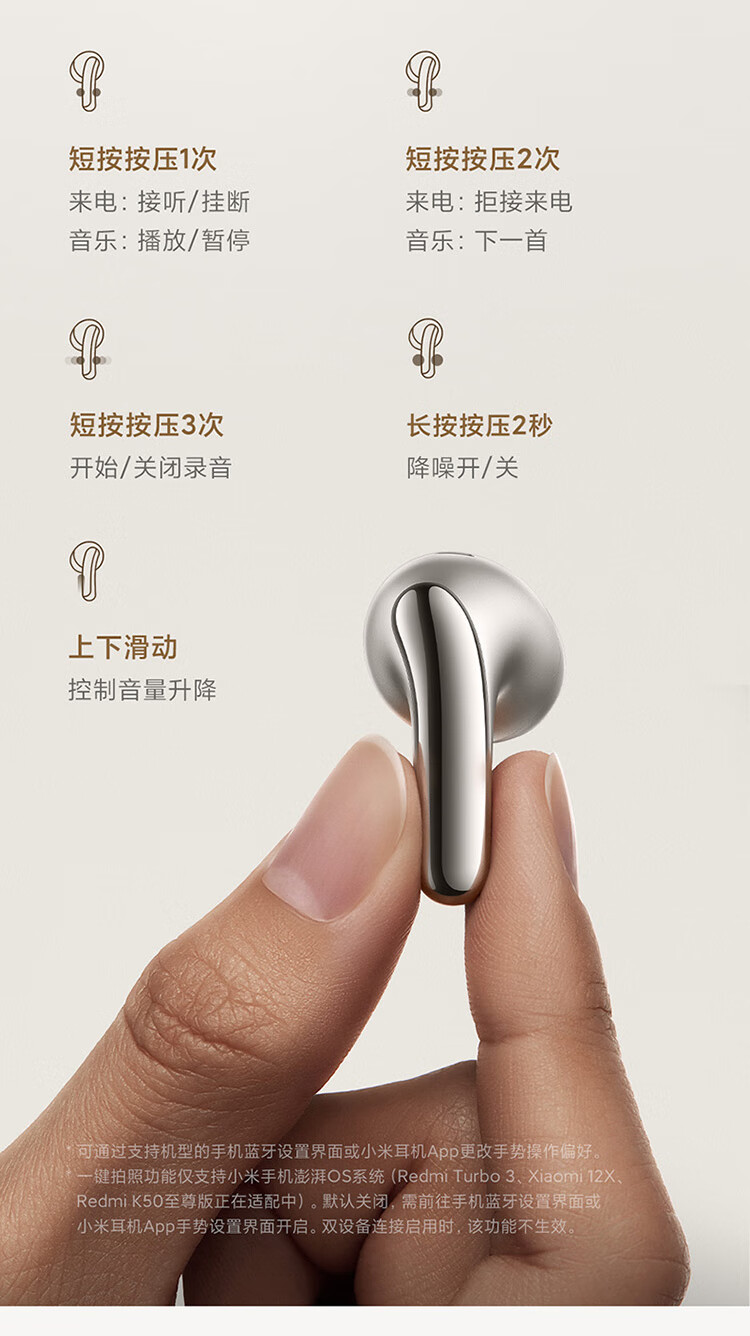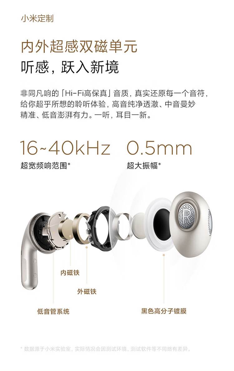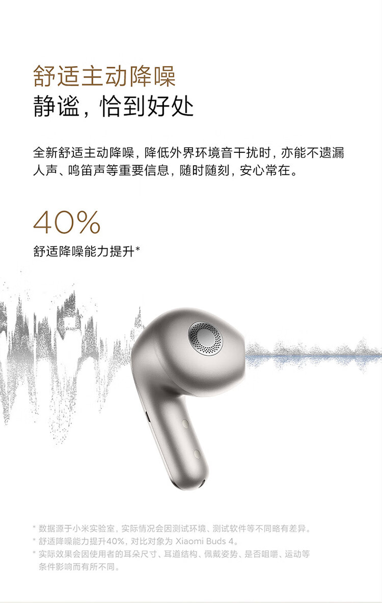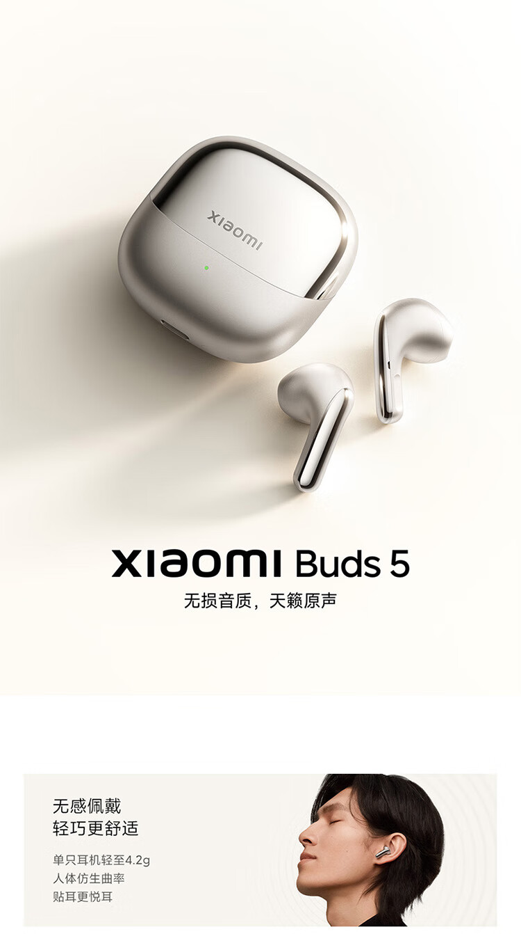 小米Xiaomi Buds5 真无线降噪耳机 半入耳式蓝牙耳机 舒适佩戴 小米华为苹果手机通用 Xiaomi Buds 5 钛光金