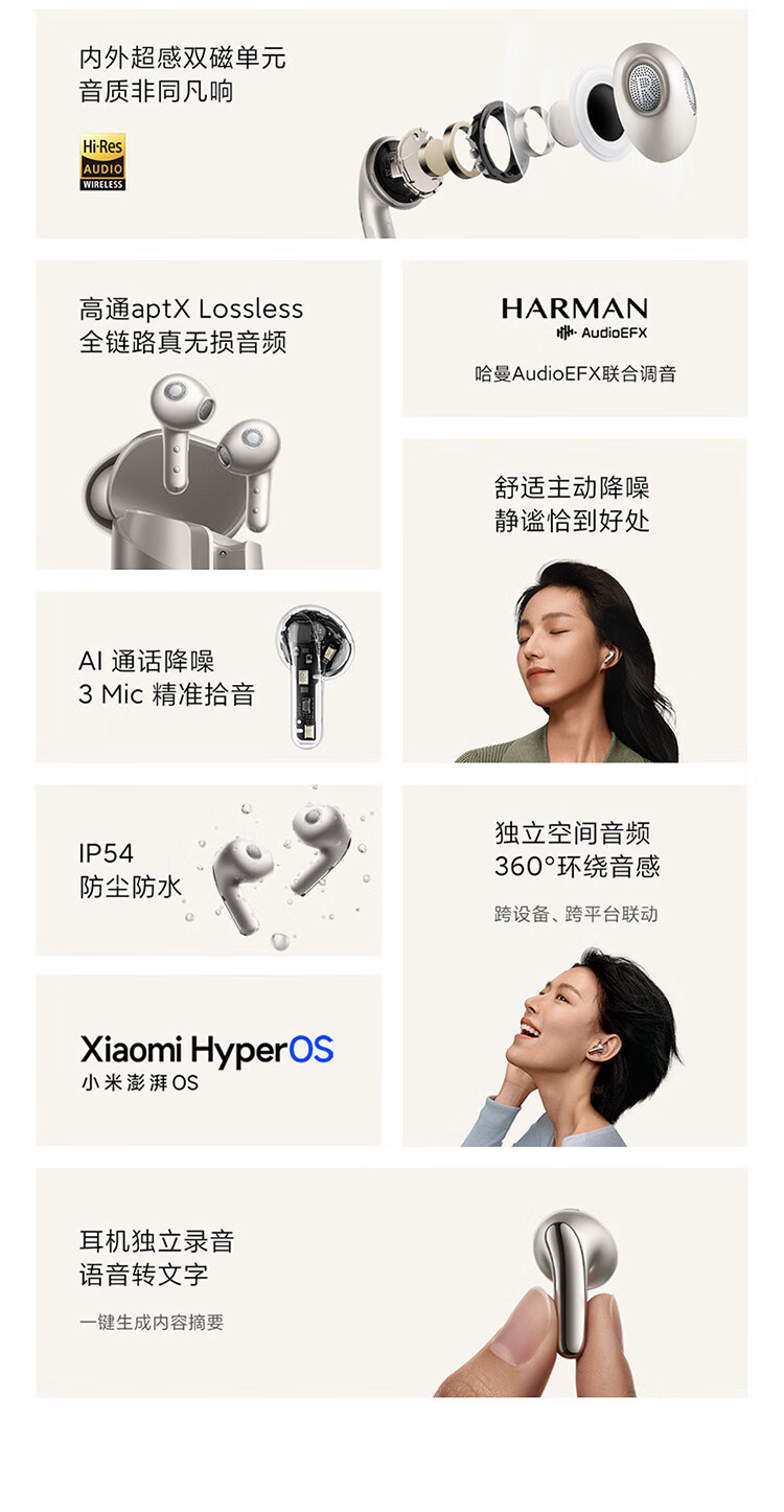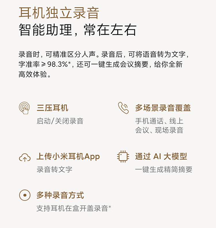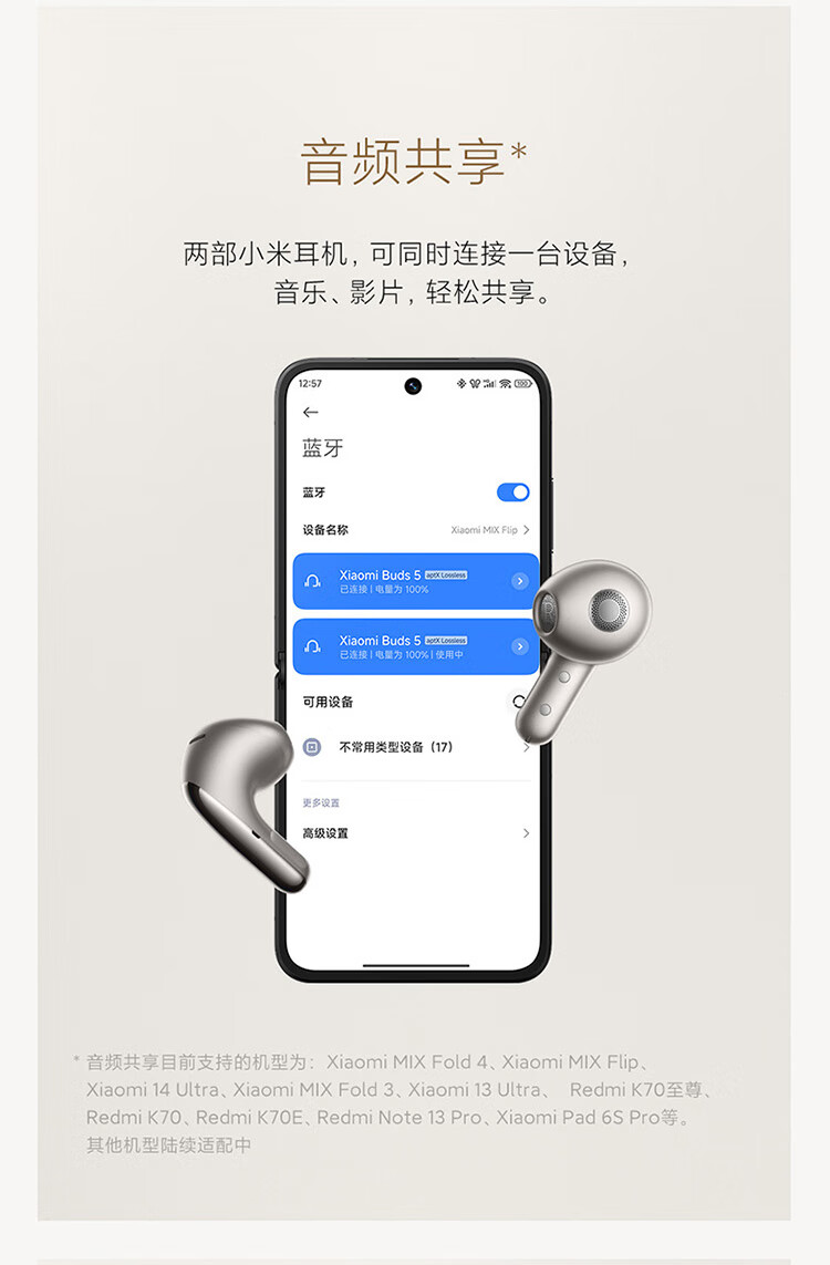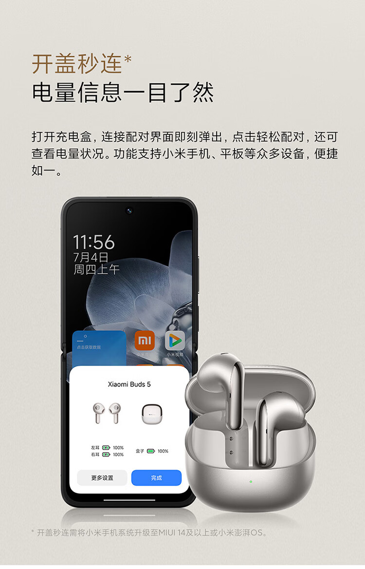 小米Xiaomi Buds5 真无线降噪耳机 半入耳式蓝牙耳机 舒适佩戴 小米华为苹果手机通用 Xiaomi Buds 5 钛光金