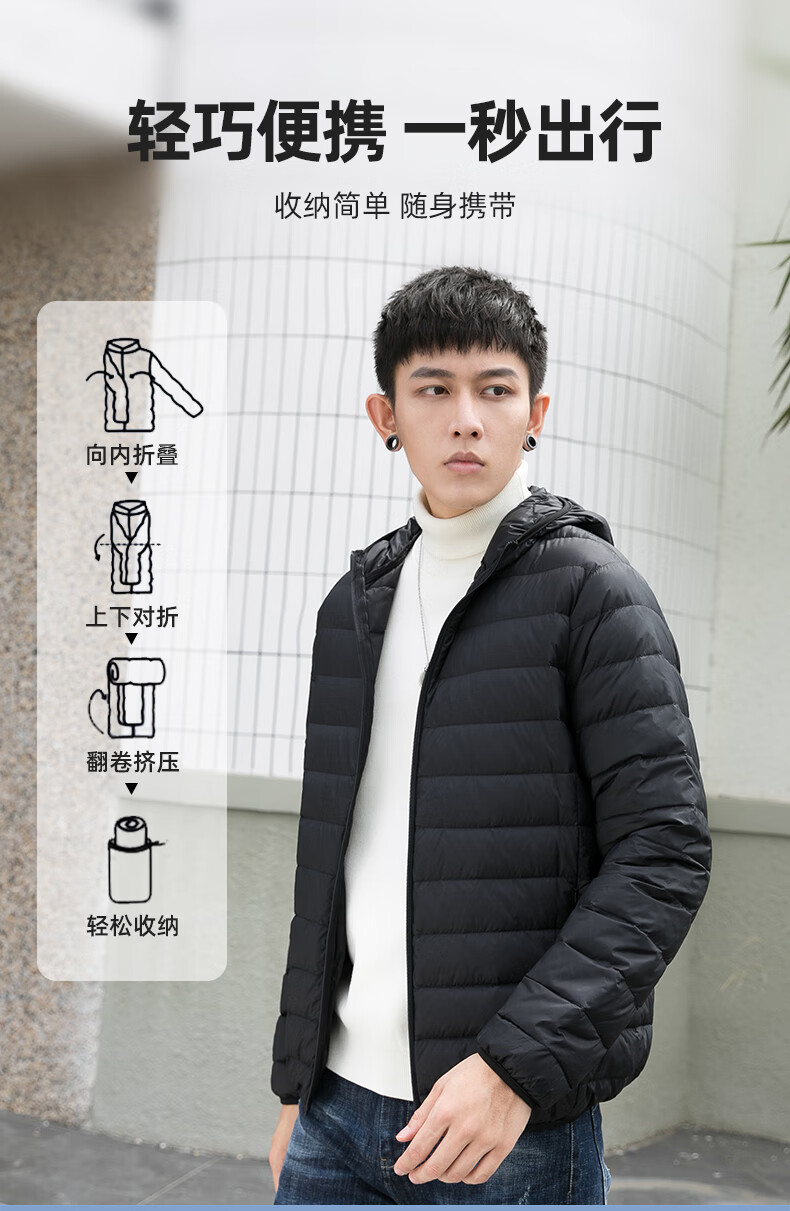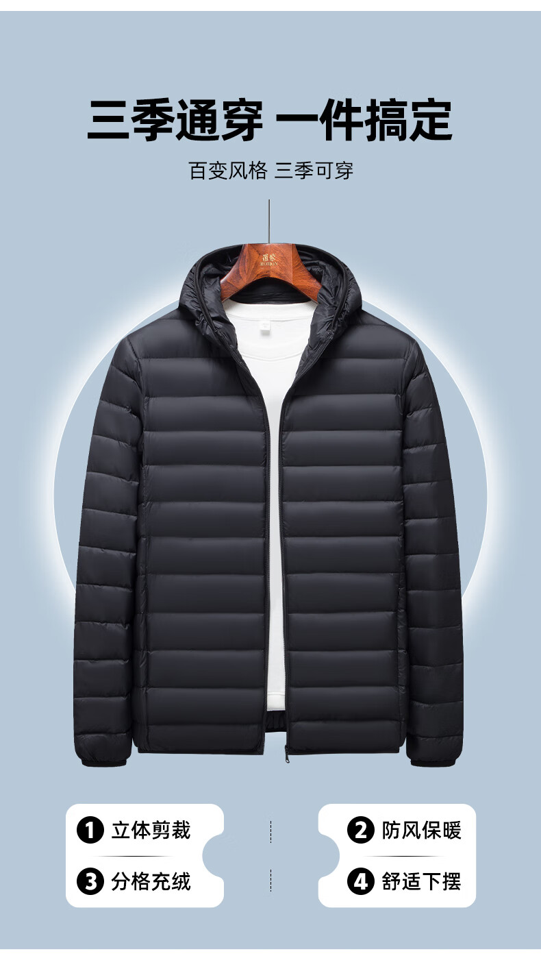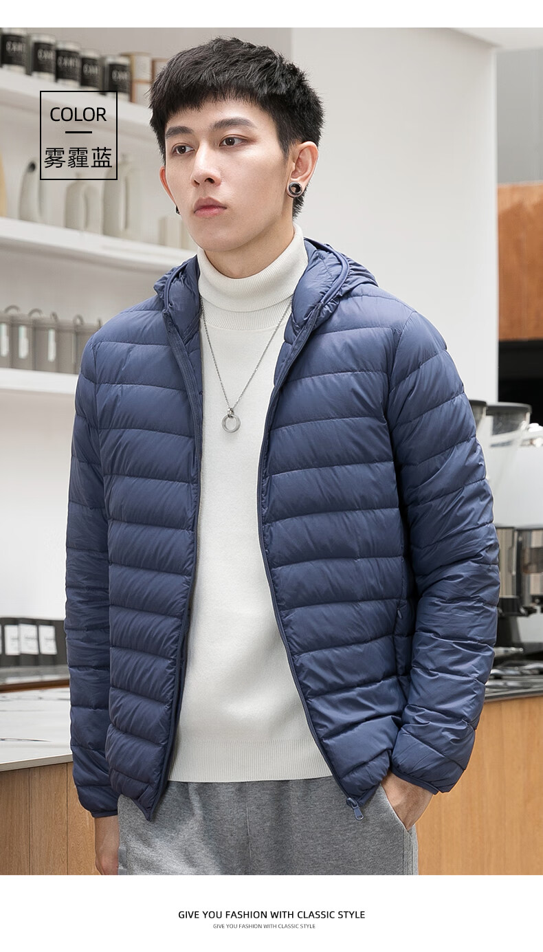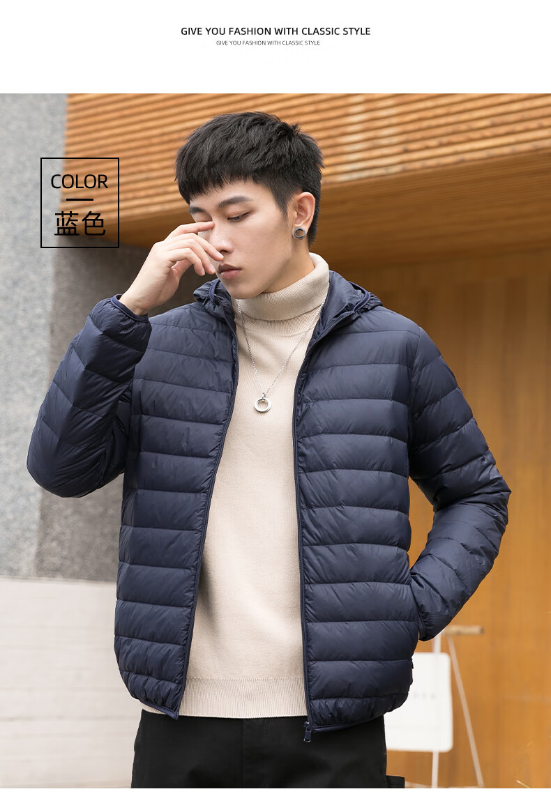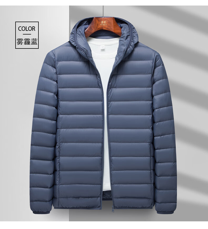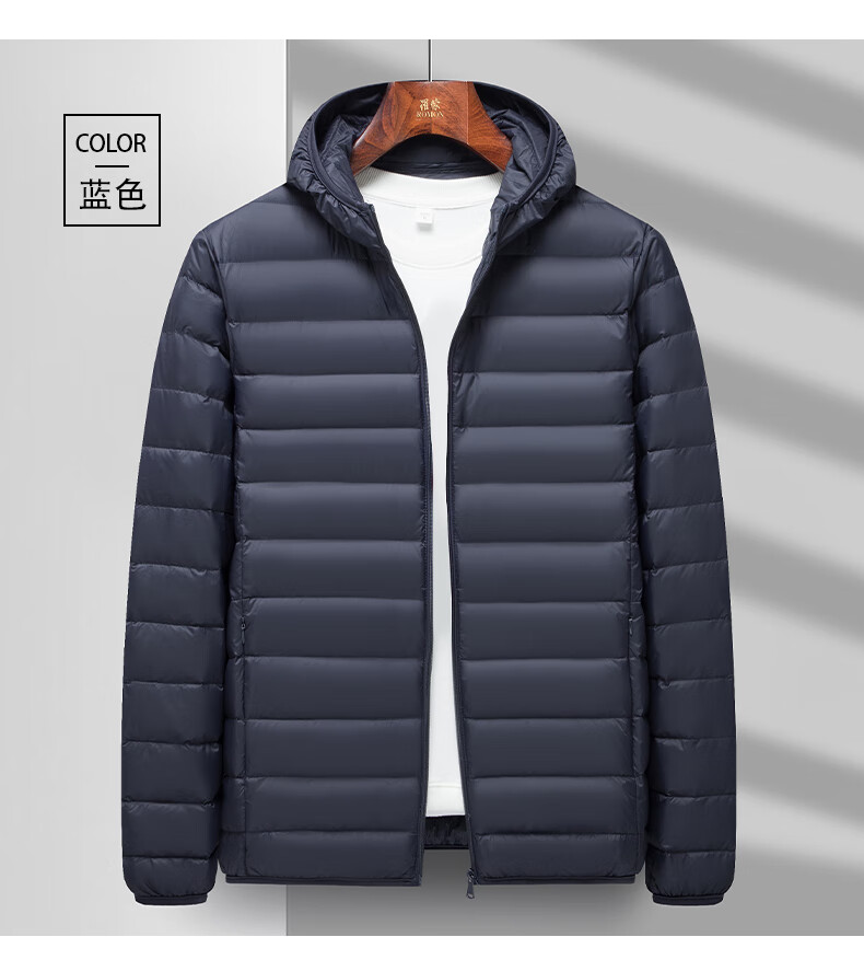 罗蒙轻薄款羽绒服男秋冬新款青年时尚休闲纯色百搭羽绒外套男 蓝色【连帽款】 2XL (185)