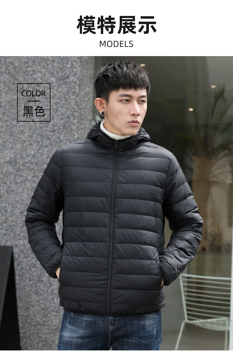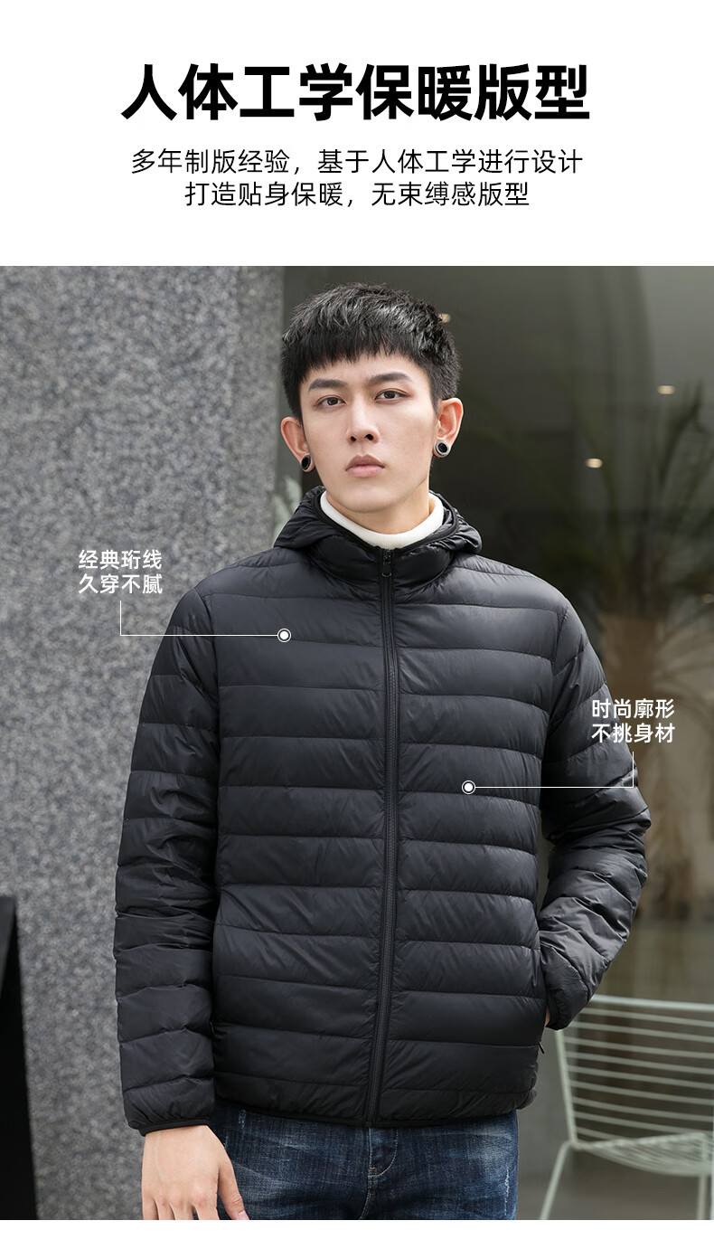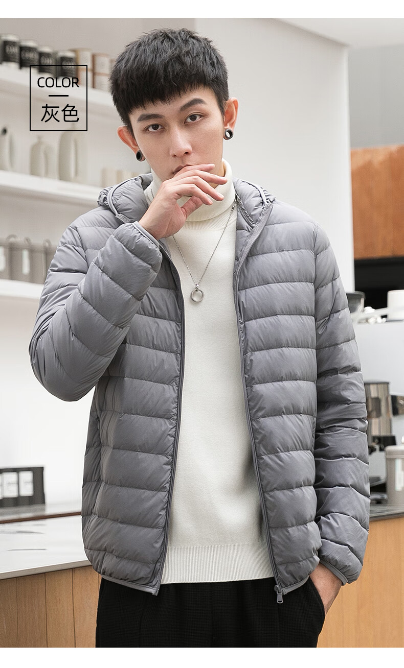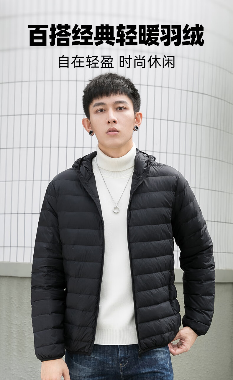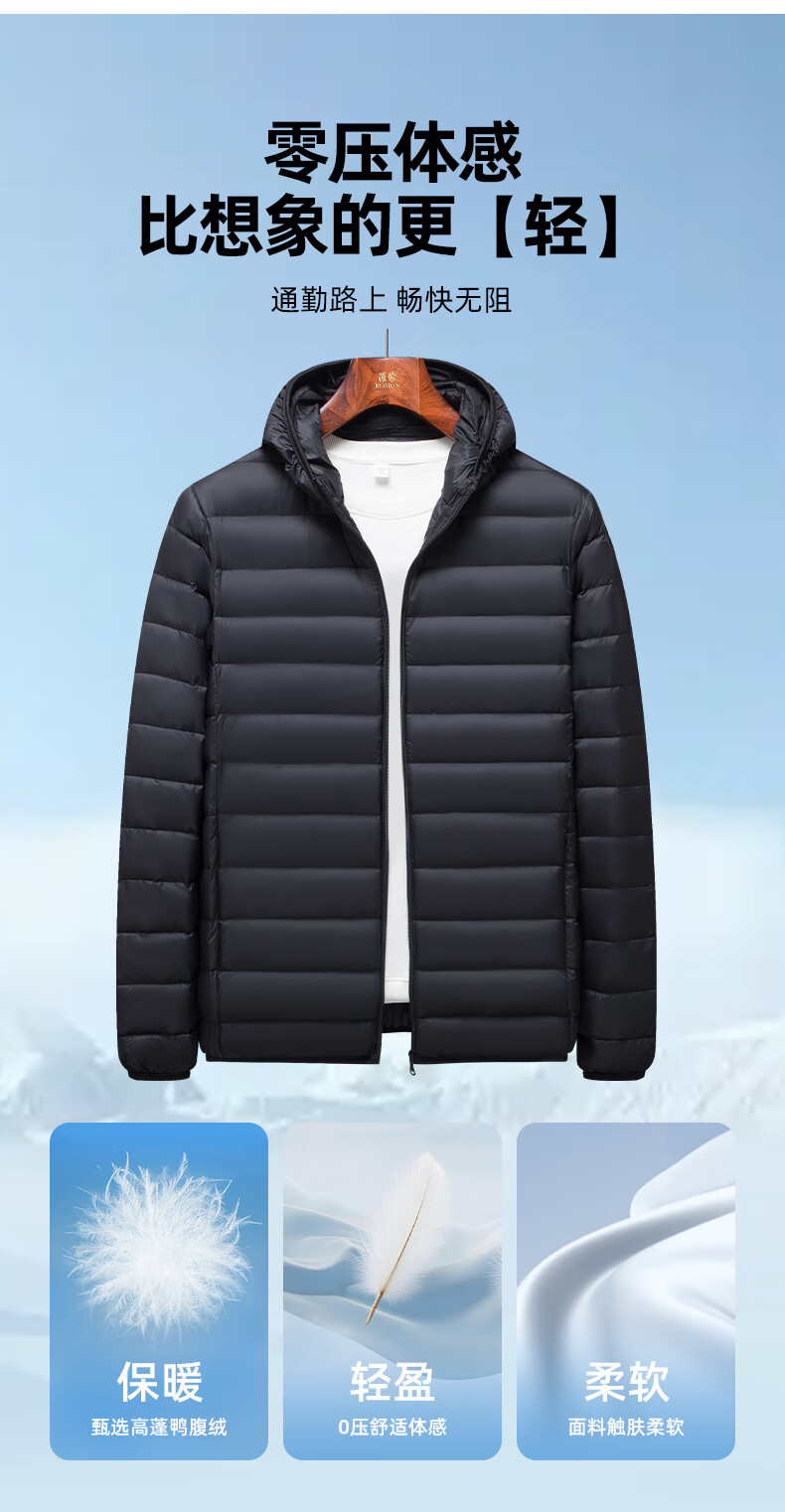 罗蒙轻薄款羽绒服男秋冬新款青年时尚休闲纯色百搭羽绒外套男 蓝色【连帽款】 2XL (185)