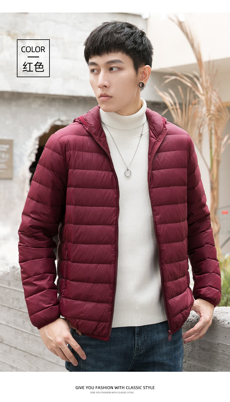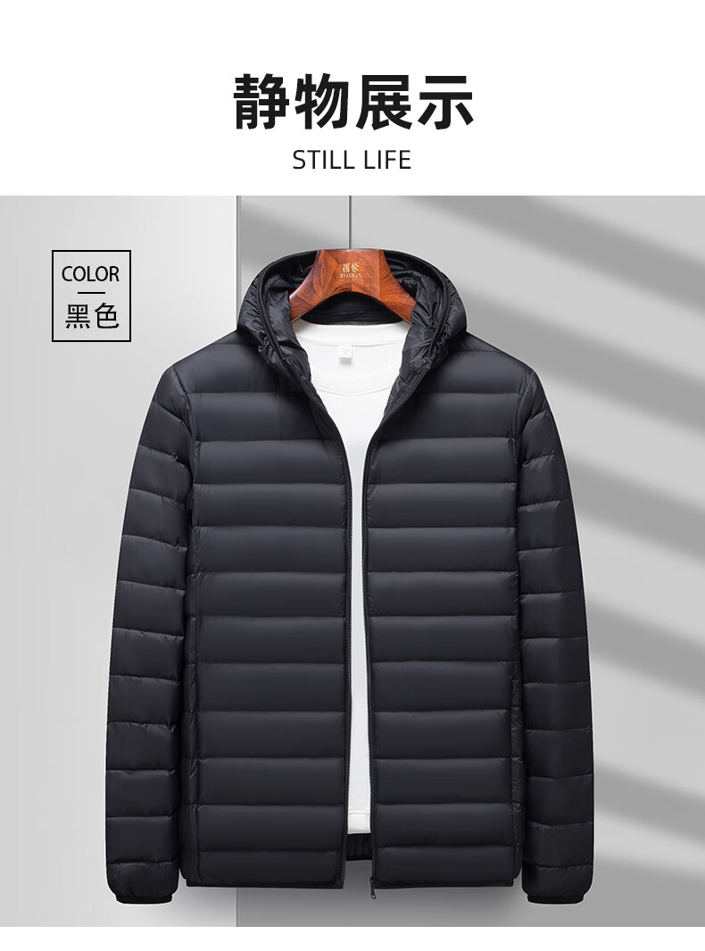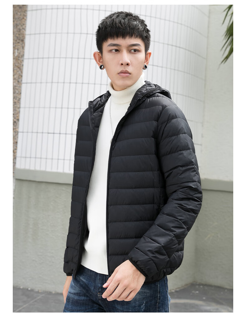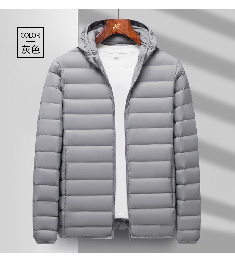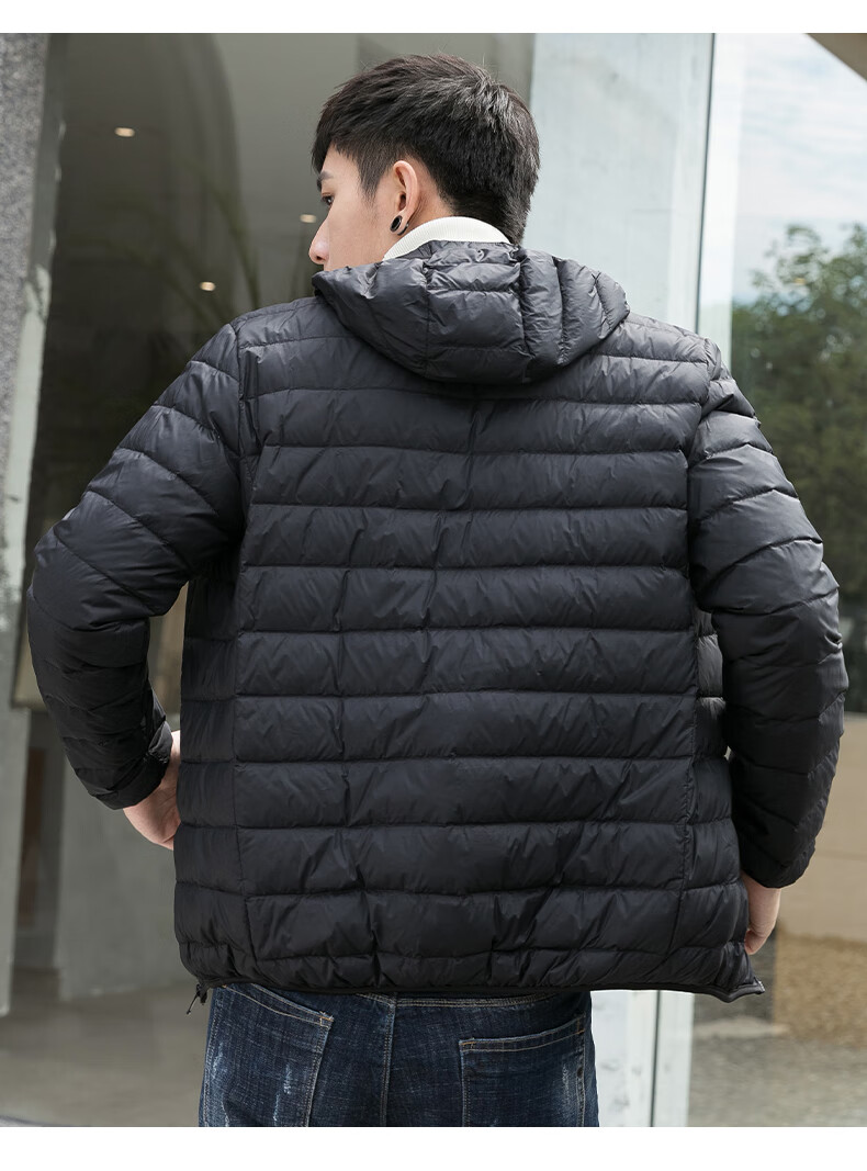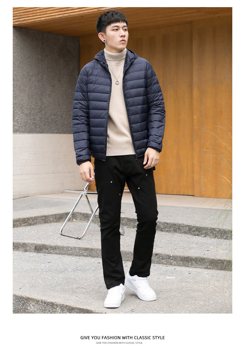 罗蒙轻薄款羽绒服男秋冬新款青年时尚休闲纯色百搭羽绒外套男 蓝色【连帽款】 2XL (185)
