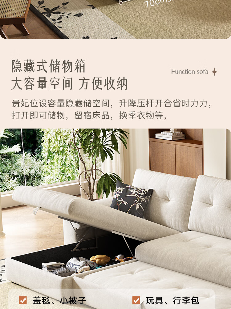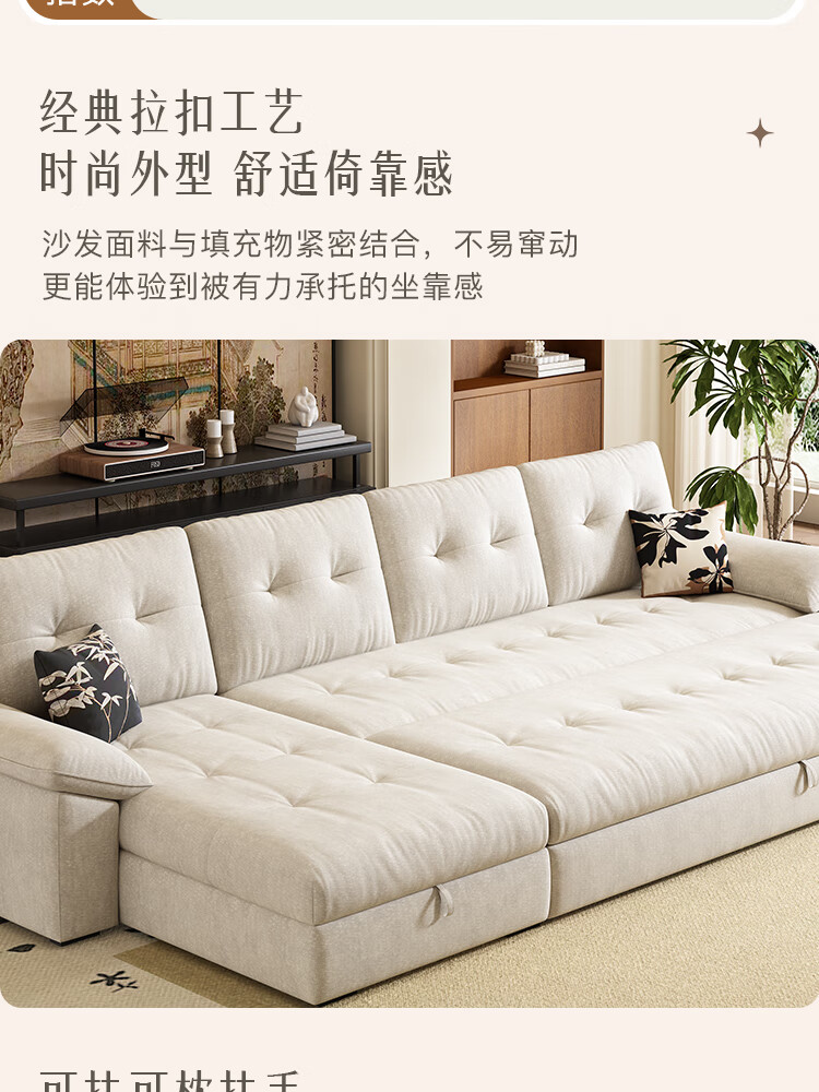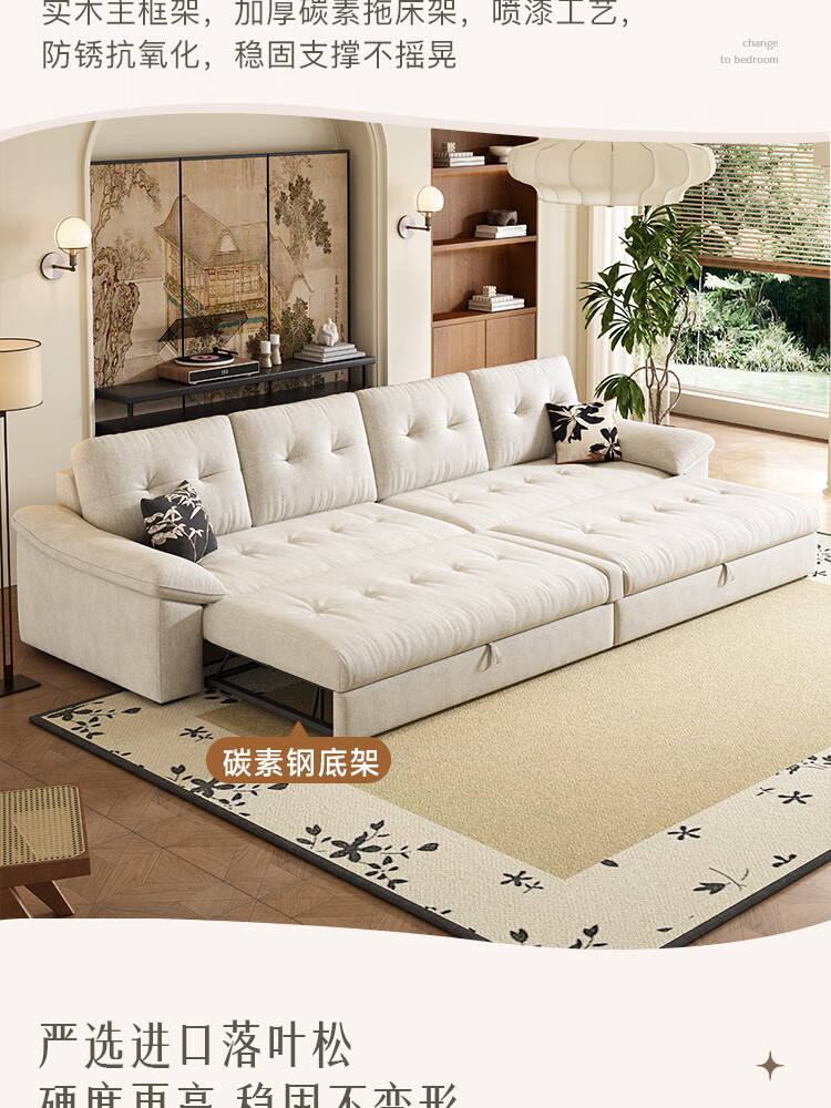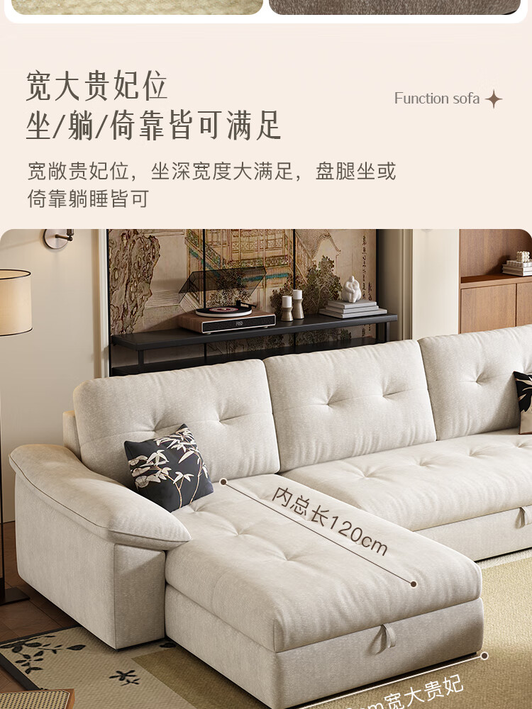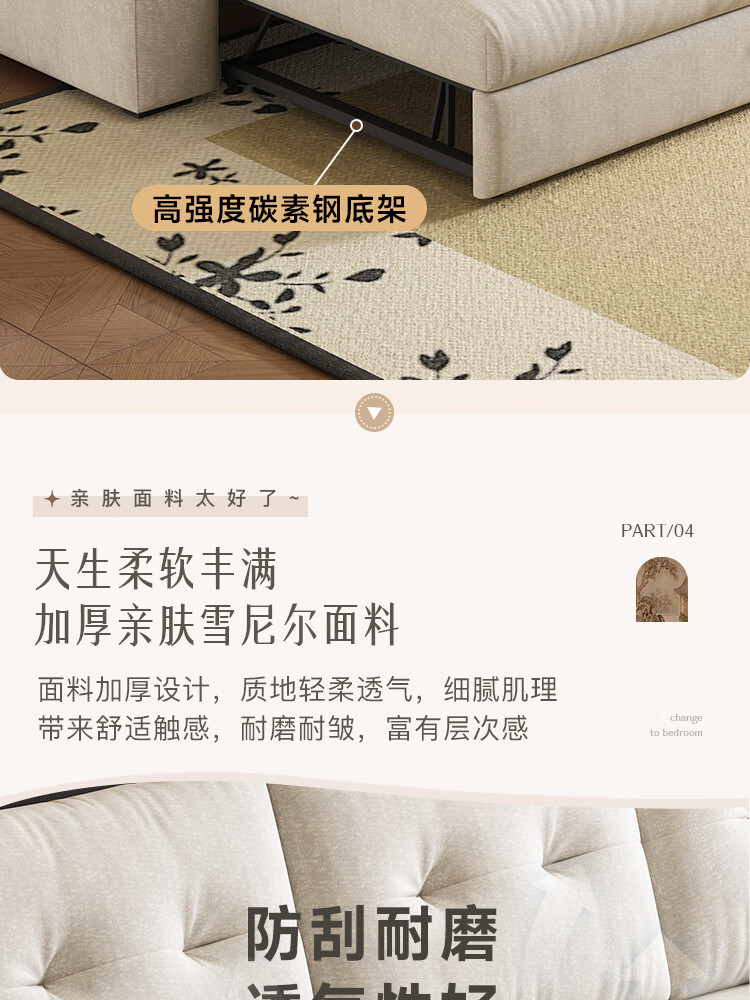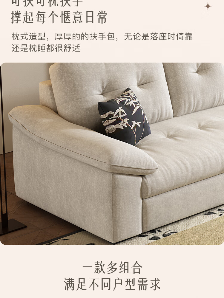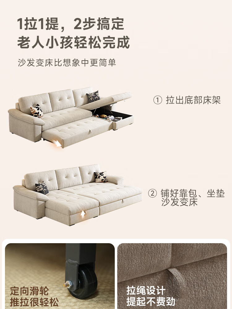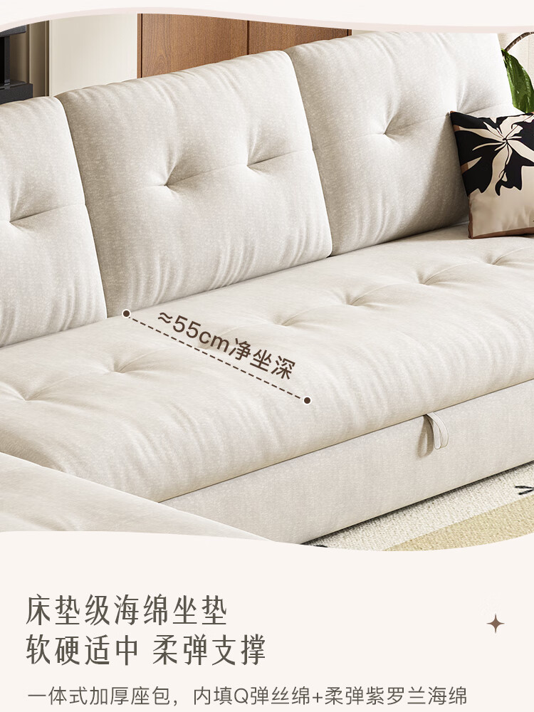 泽贤阁2025新款现代简约多功能折叠沙发一体两用客厅小户型懒人沙发 【新款猫抓皮+实木脚】米黄 【抑菌乳胶款】2*1.2米(2腰枕2扶手)