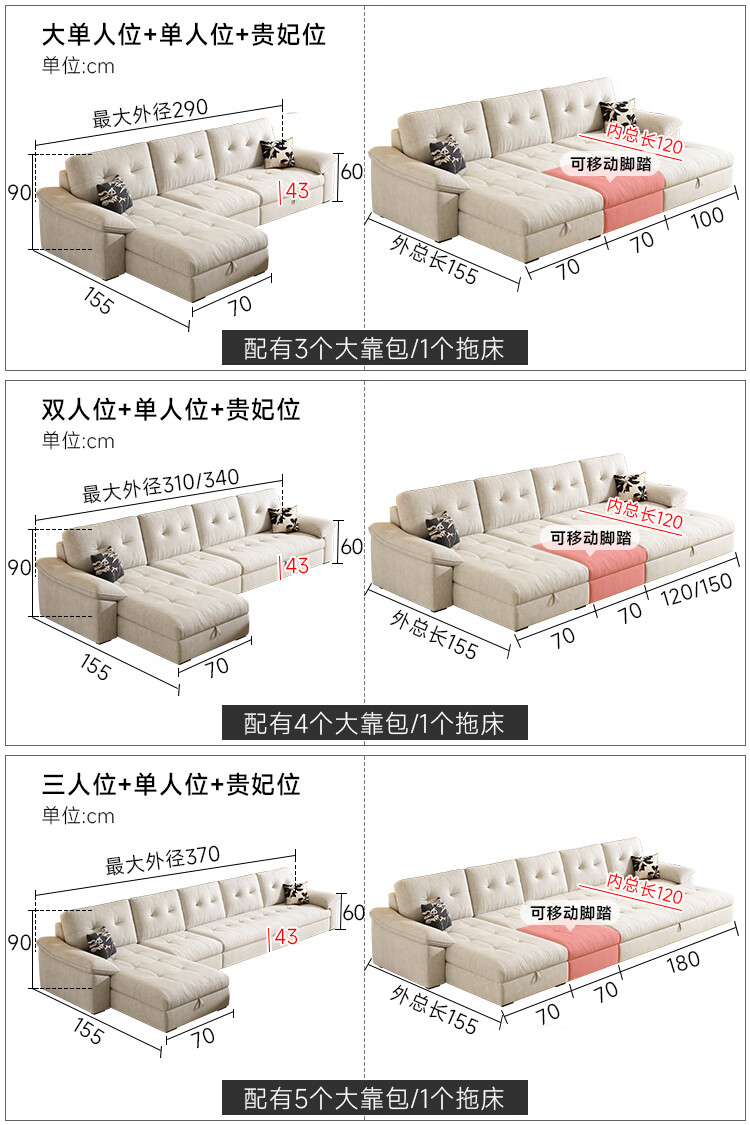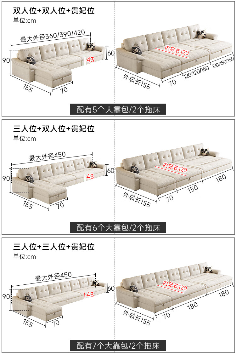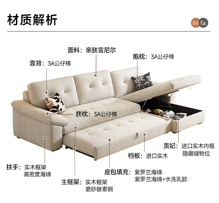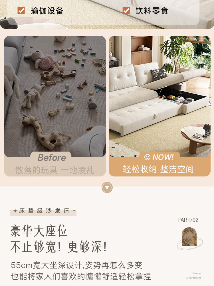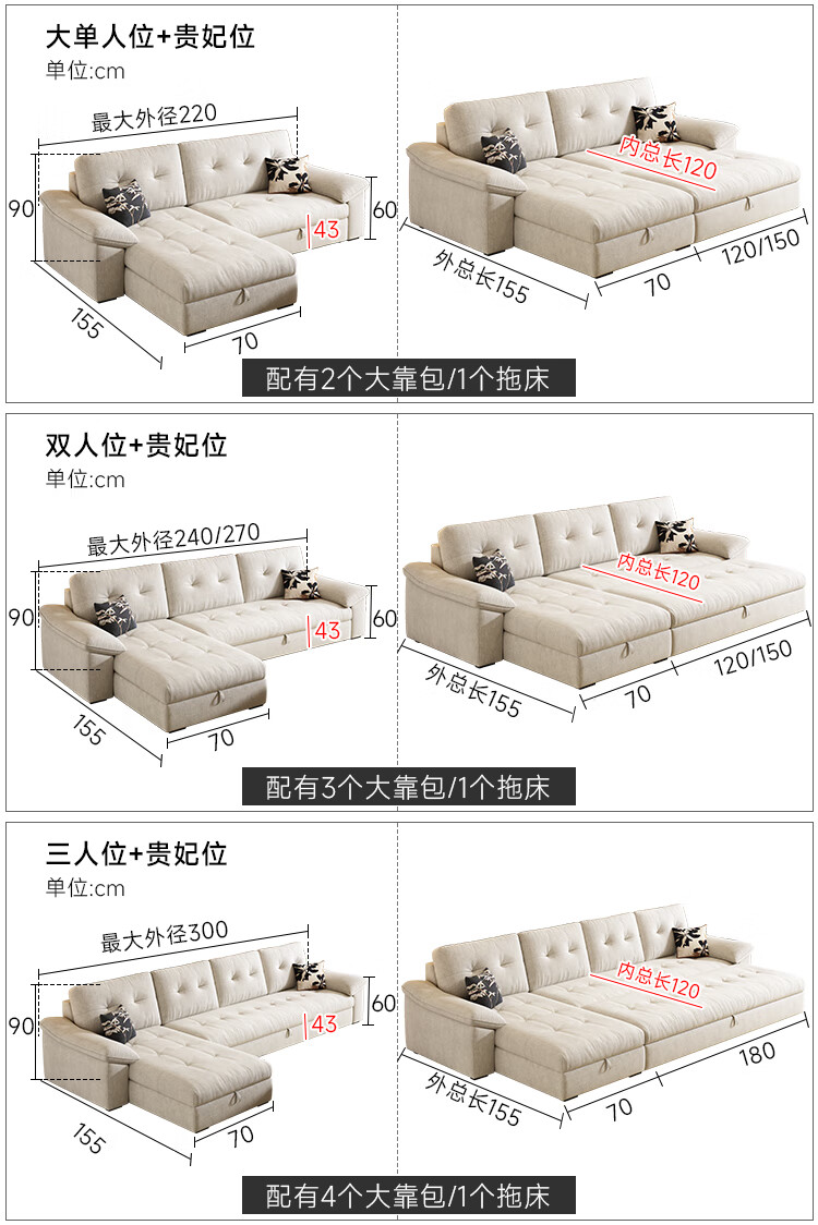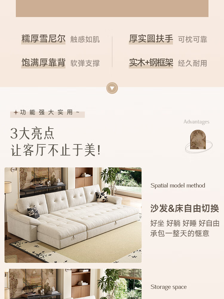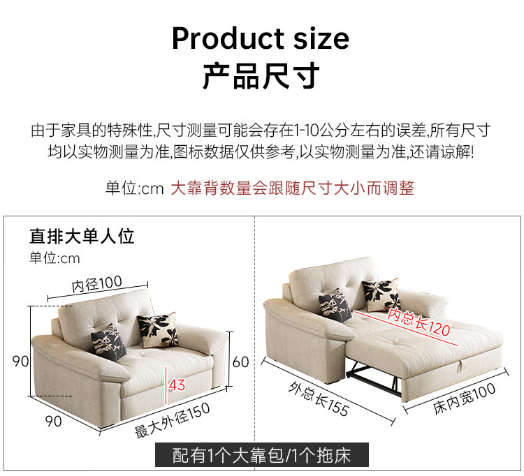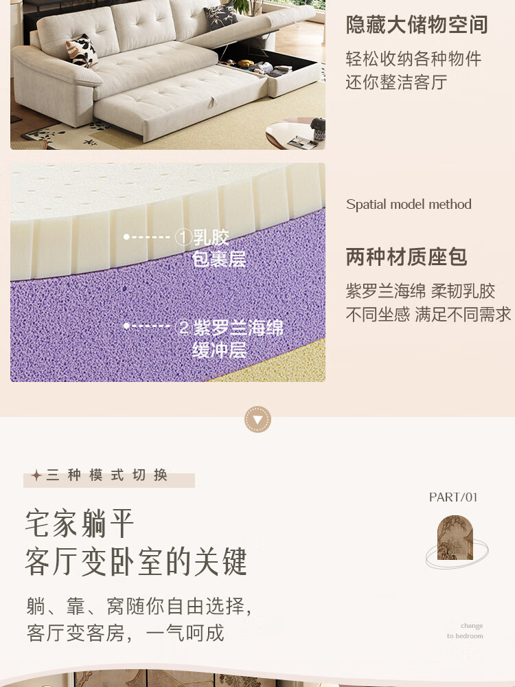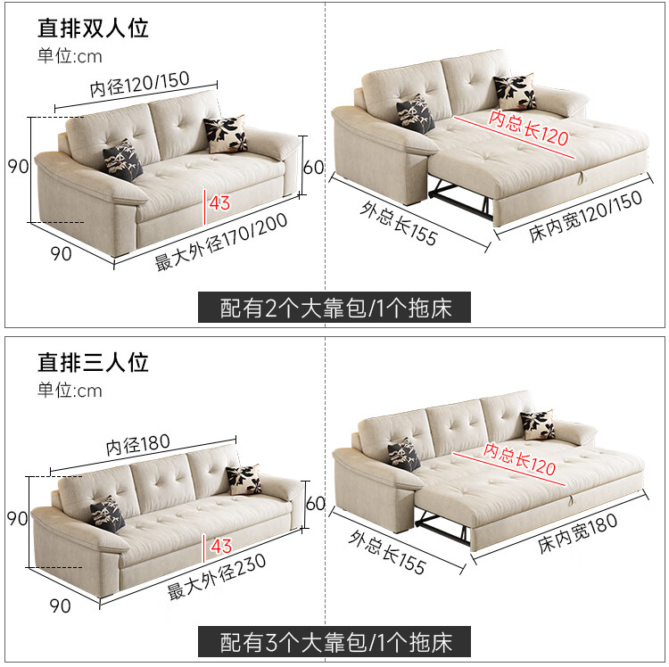 泽贤阁2025新款现代简约多功能折叠沙发一体两用客厅小户型懒人沙发 【新款猫抓皮+实木脚】米黄 【抑菌乳胶款】2*1.2米(2腰枕2扶手)