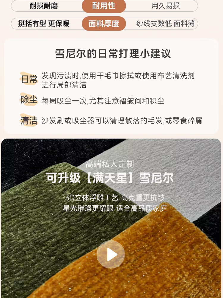 松南高级感法式奶油风可伸缩贵妃沙发床一体两用客厅新款雪尼尔绒沙发 总长1.5m直排:单人位 高弹海绵款(软硬适中)
