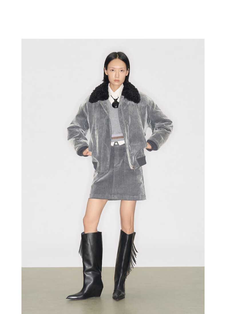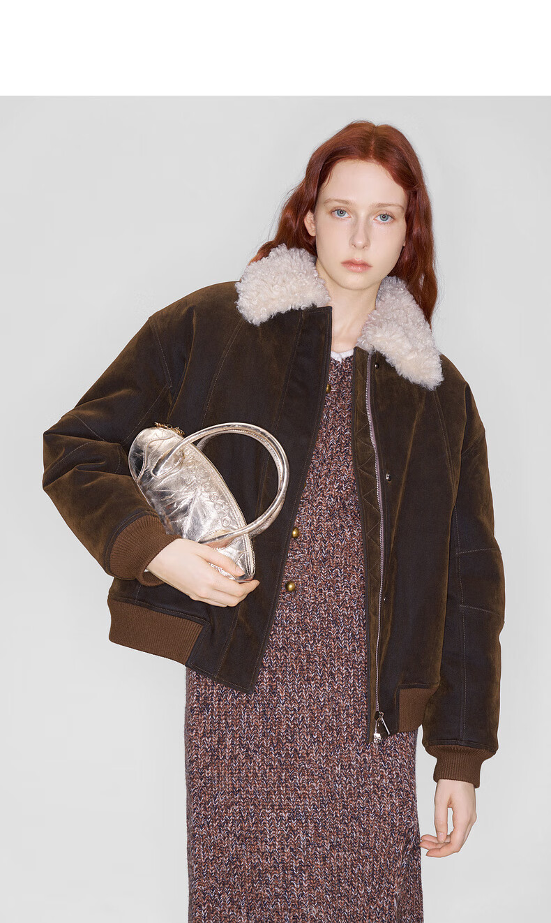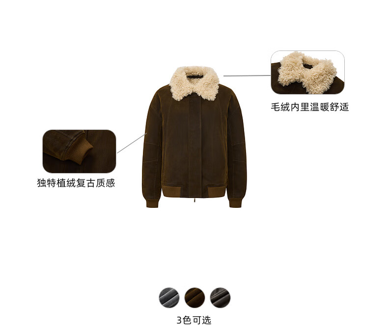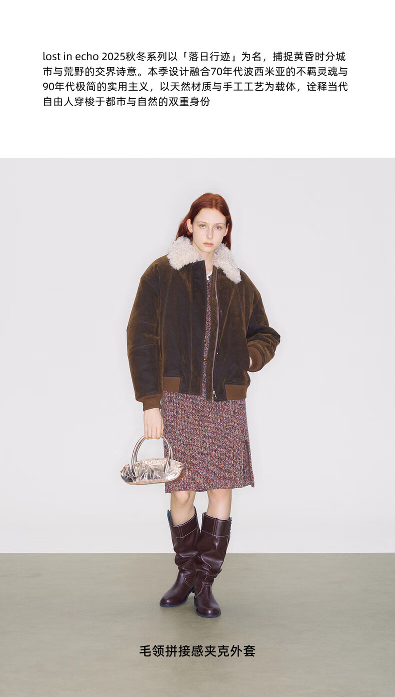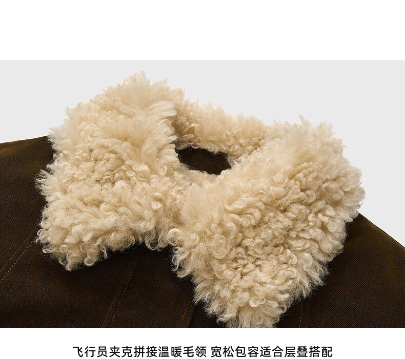 lost in echo2025早秋新款复古毛领保暖加绒宽松飞行员夹克外套女 灰色 S