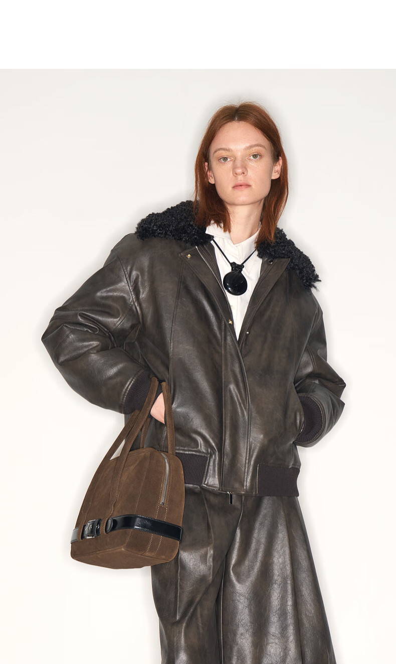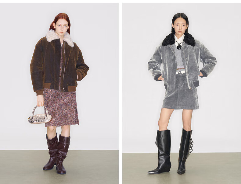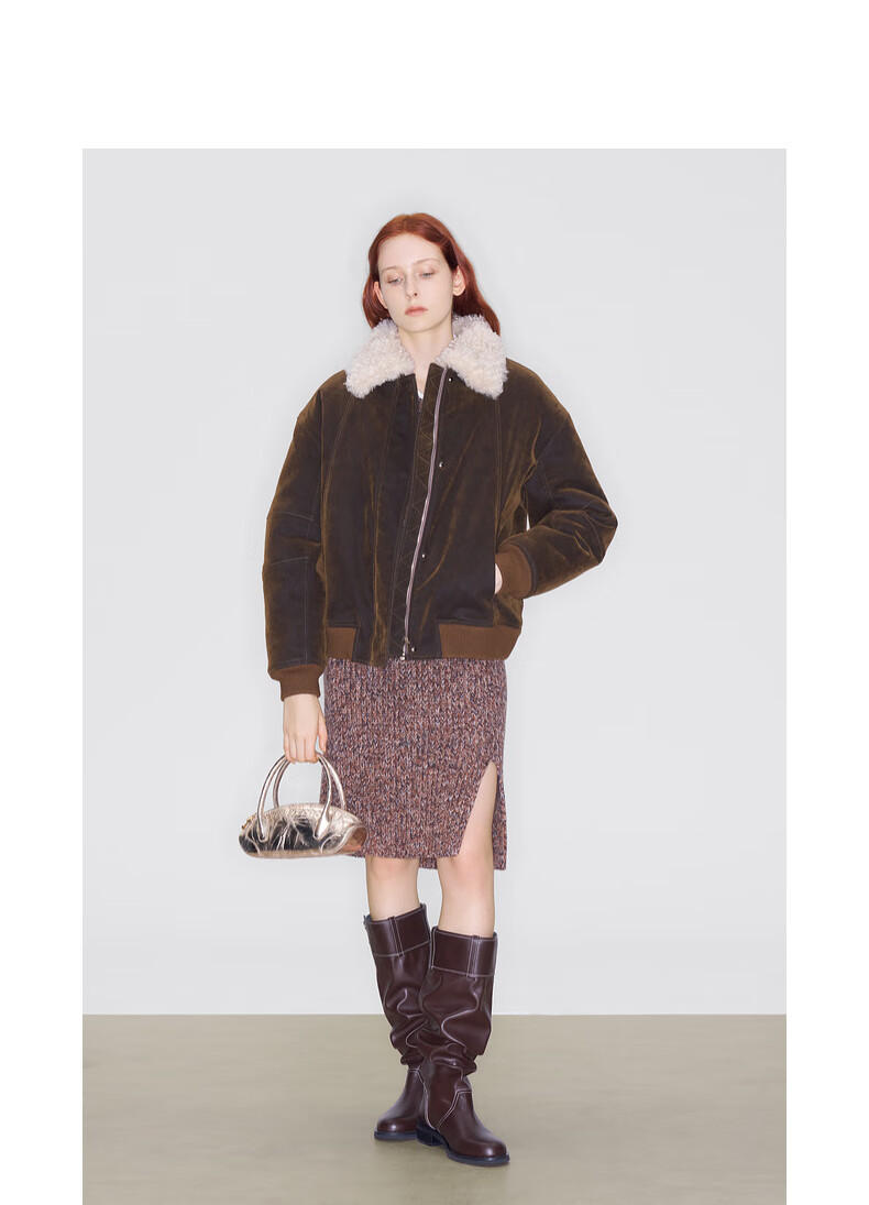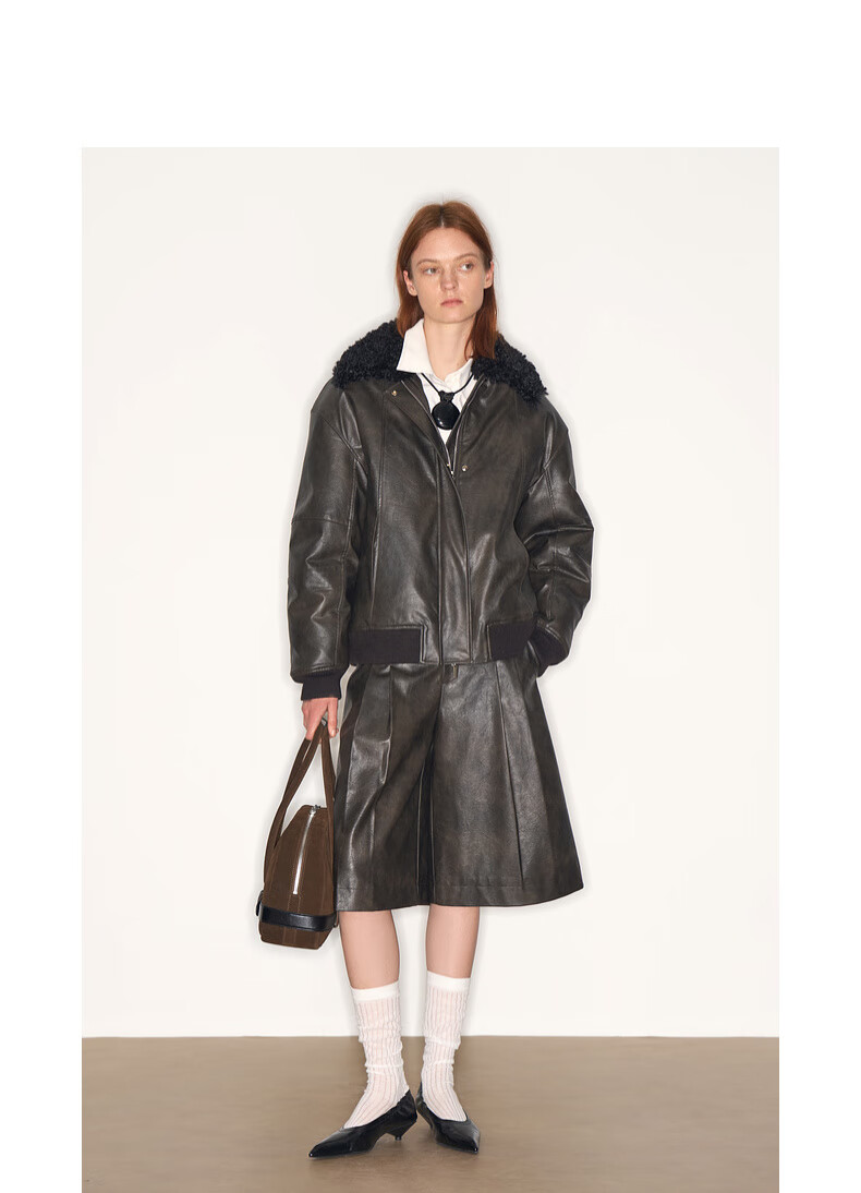 lost in echo2025早秋新款复古毛领保暖加绒宽松飞行员夹克外套女 灰色 S