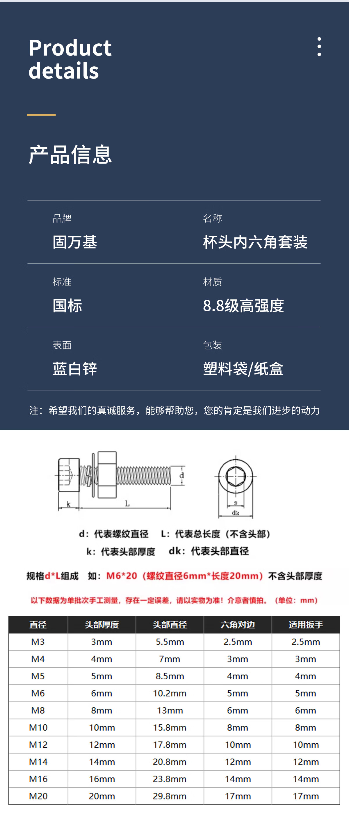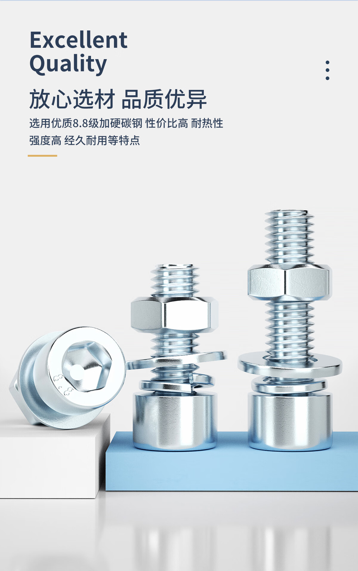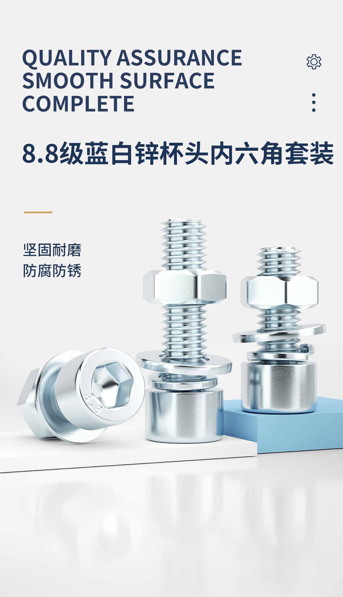 固万基8.8级高强度镀锌内六角螺丝钉螺母平弹垫螺栓组合大全套装M3-M20 M8x35[20套]